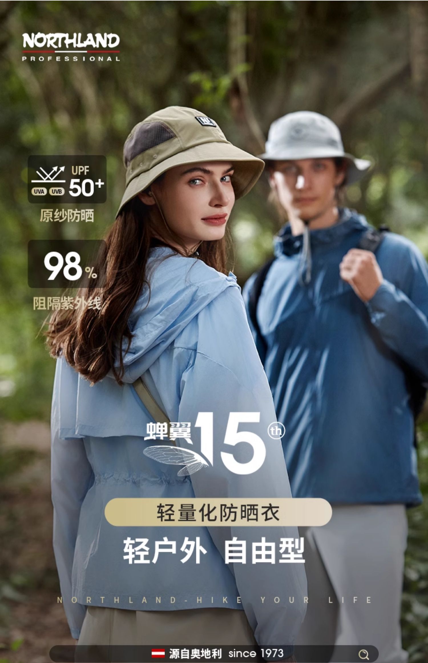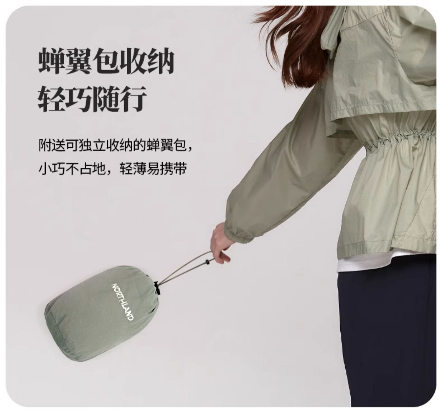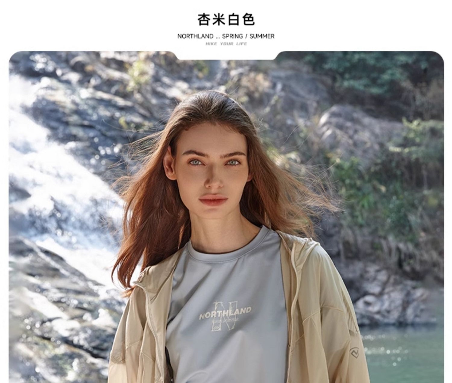 NORTHLAND诺诗兰 NKJET2210E 沙赫女式蝉翼外套 杏米白色 防晒衣UPF50+原纱防晒防泼水皮肤衣外套 舒适不耐汗 耐磨防刮 防泼水科技