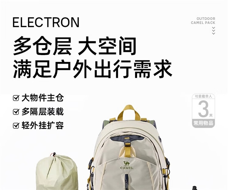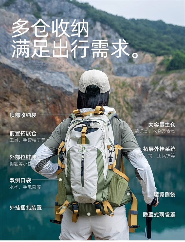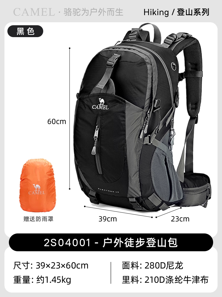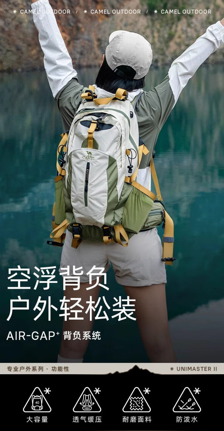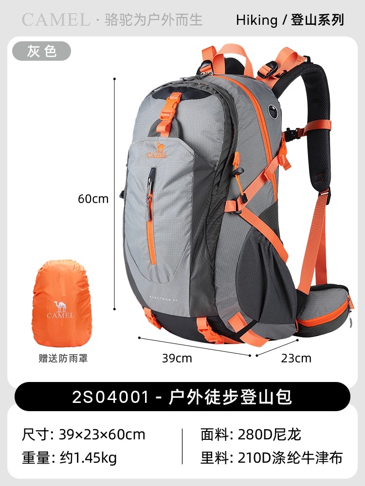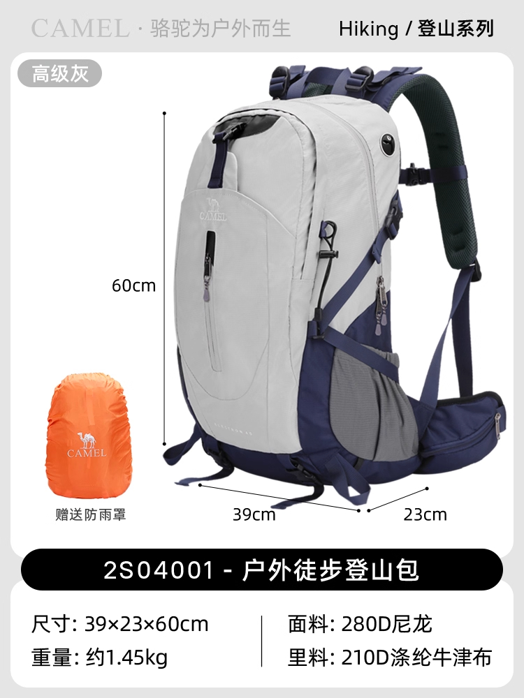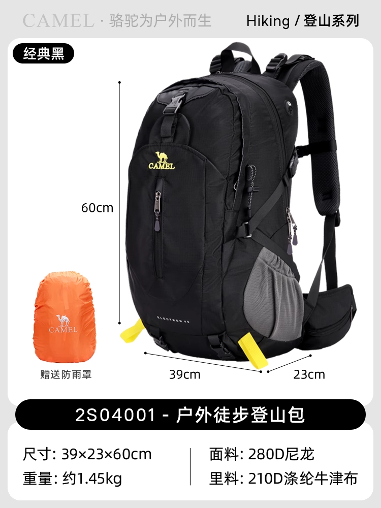 骆驼 背包 2S04001A 50L 登山包户外双肩包 男女大容量越野多功能轻量旅行背包 柔韧面料 抗撕裂 附防雨罩
