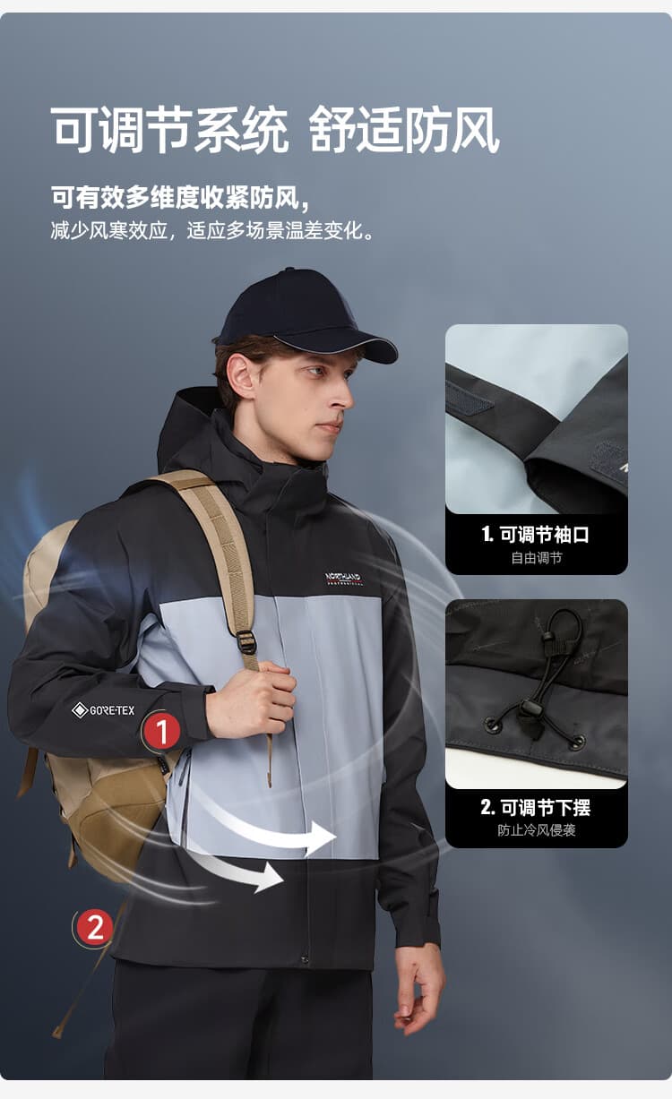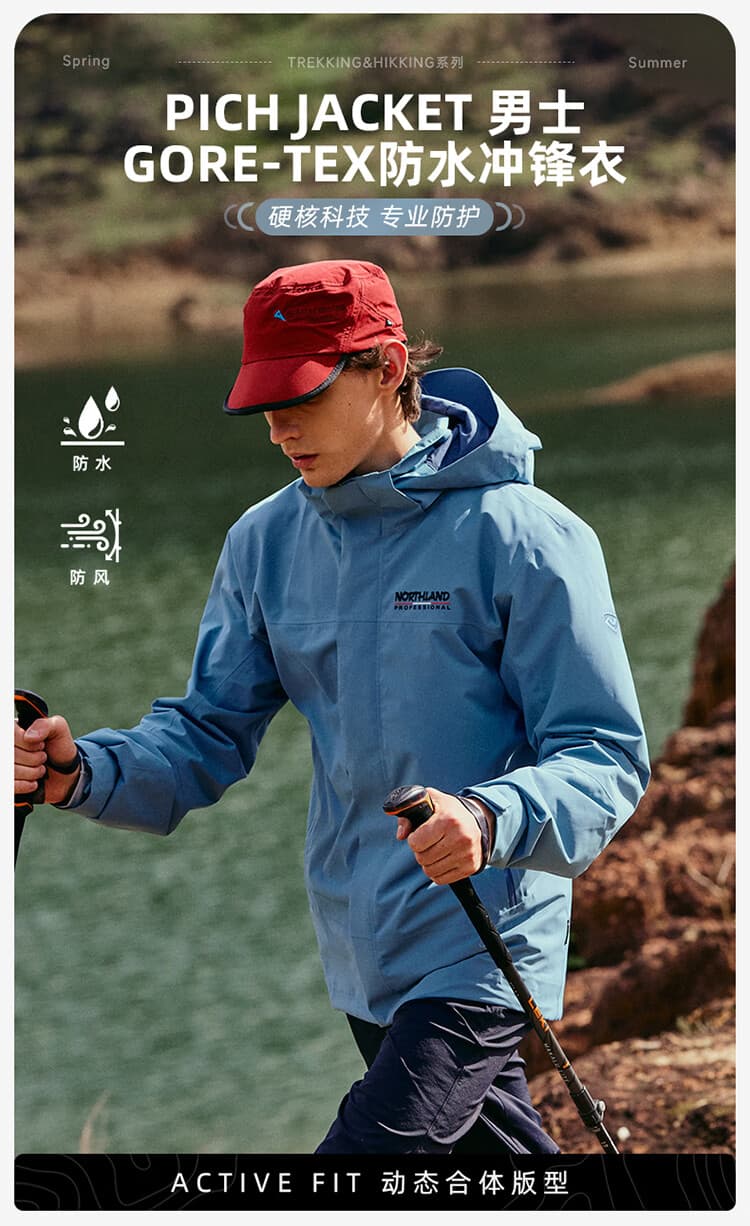 NORTHLAND诺诗兰 冲锋衣 秋冬新款gore-tex男士户外防水防风专业徒步登山外套 NWJEH5110S 云山蓝色 防水面料 高度透气 舒适防风