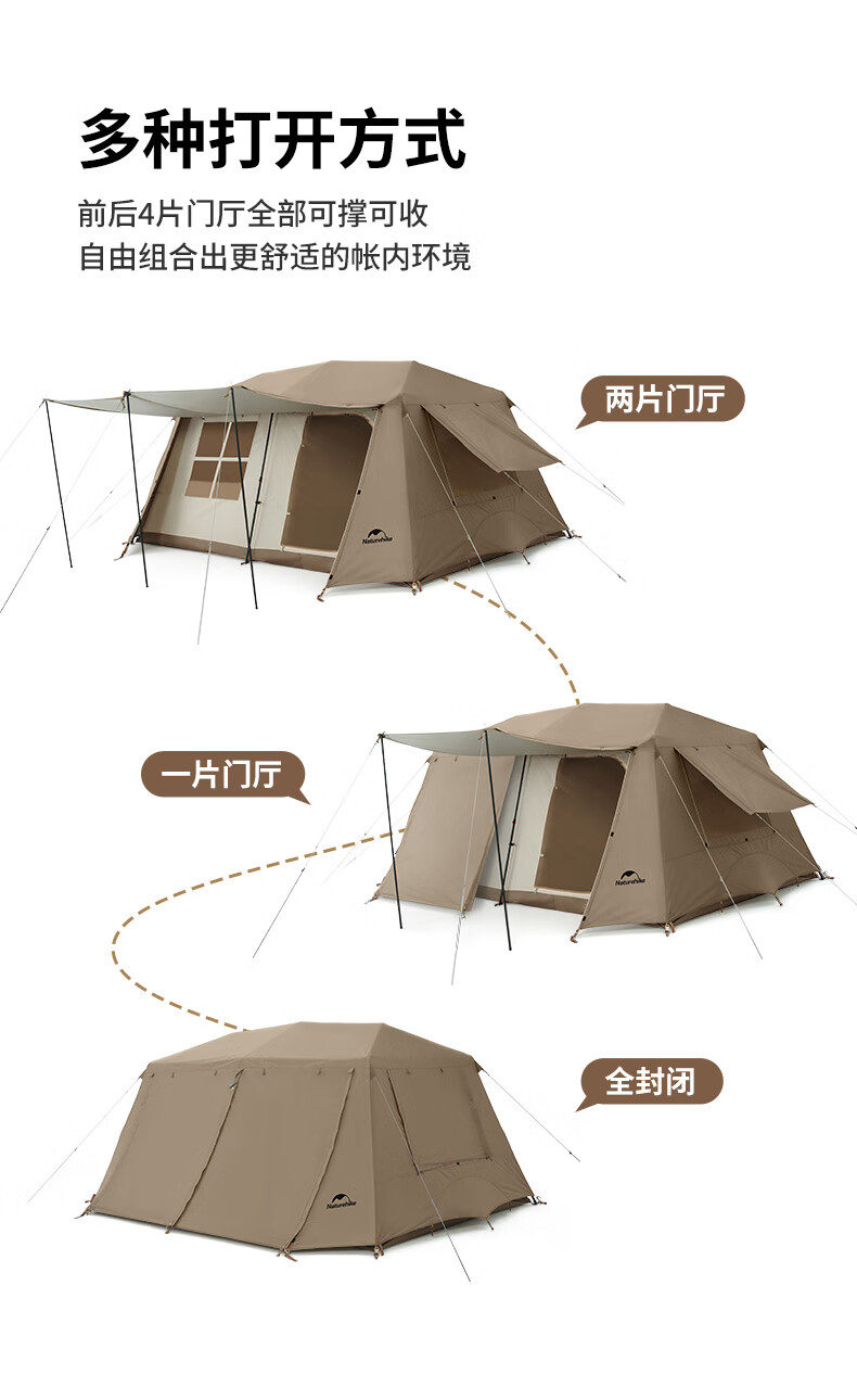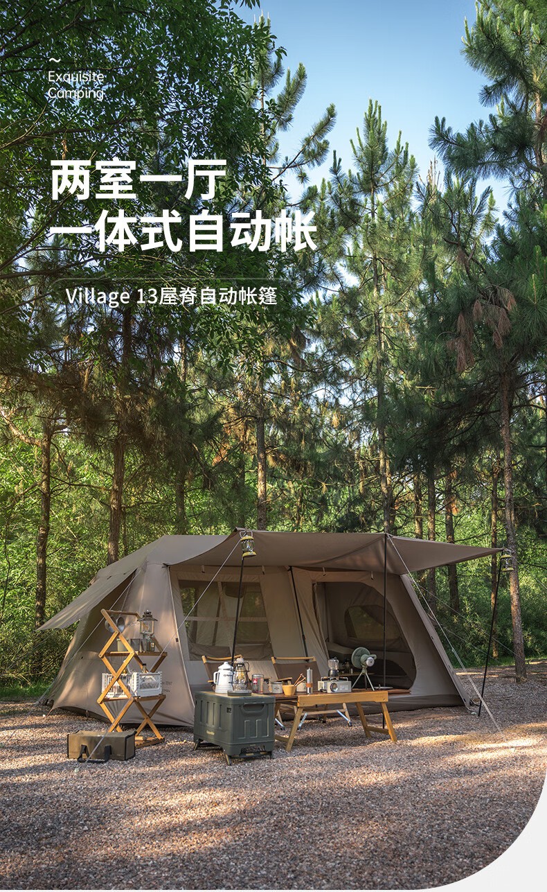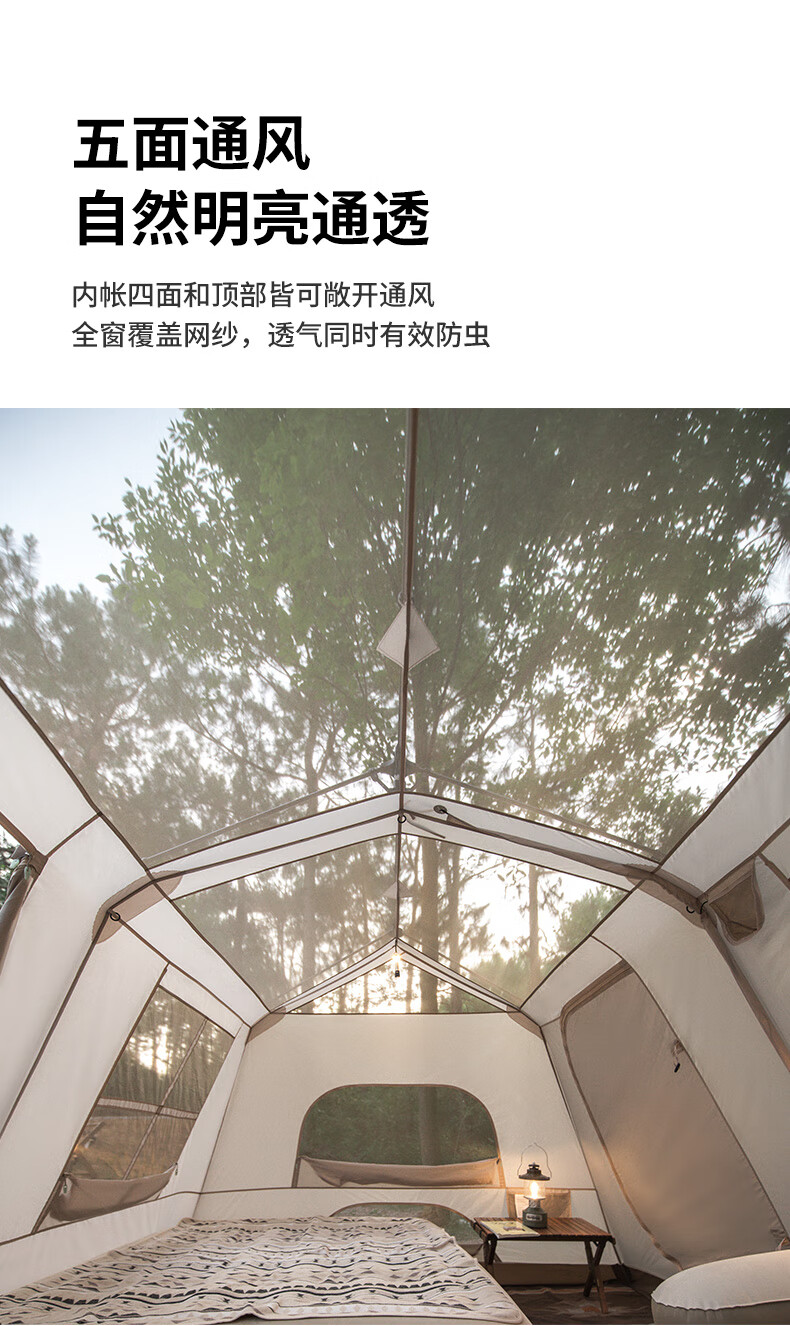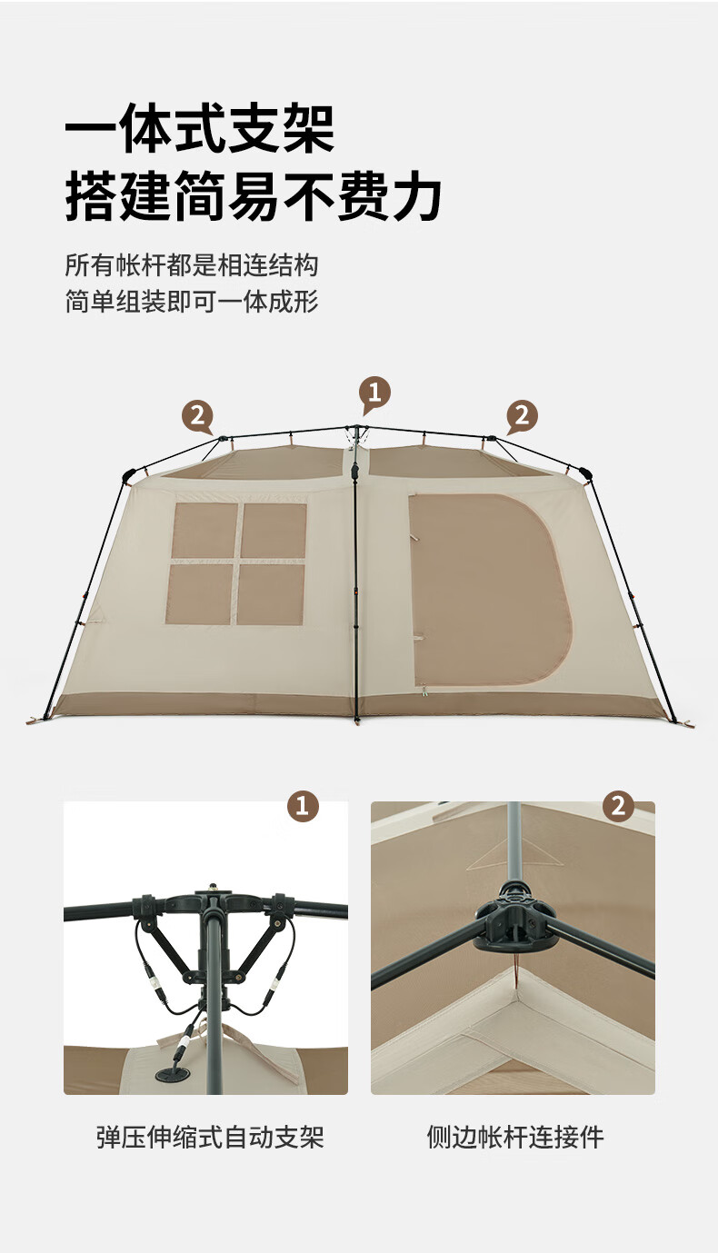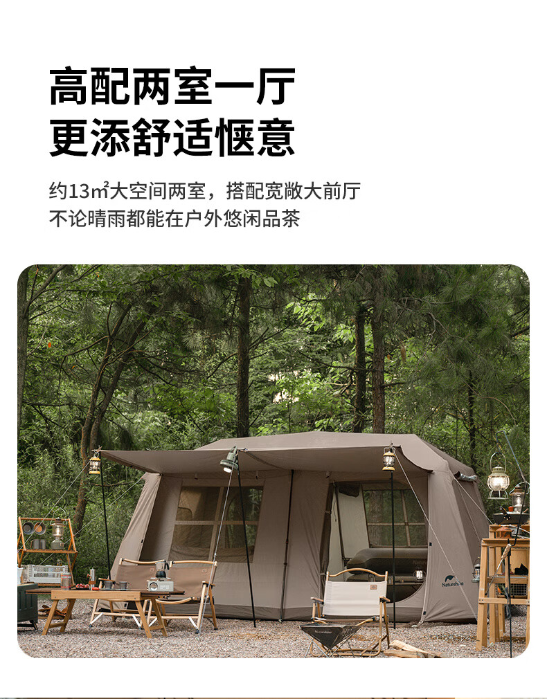 Naturehike挪客 屋脊13自动帐篷 CNH22ZP004 户外露营野营装备过夜两室一厅帐篷 钛黑胶深咖色 一体式支架 搭建简易 防水防晒