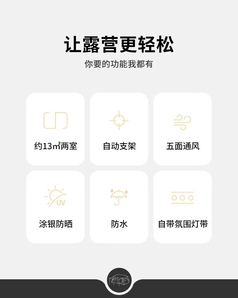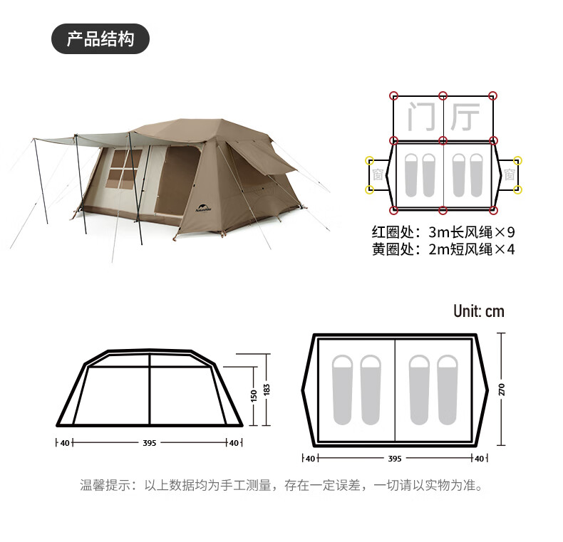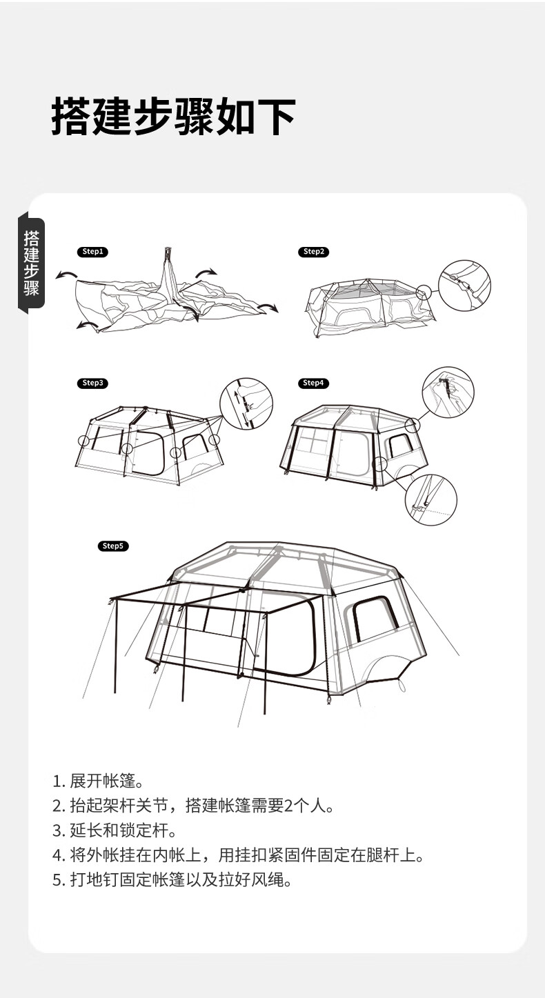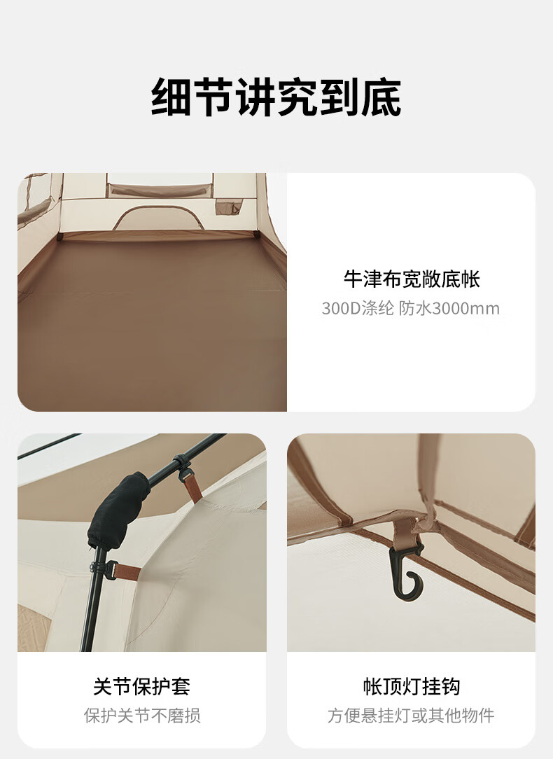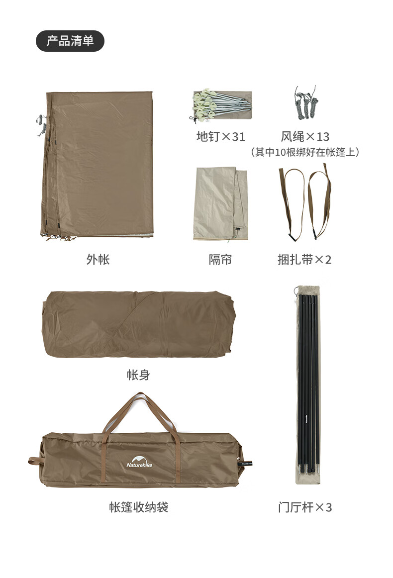 Naturehike挪客 屋脊13自动帐篷 CNH22ZP004 户外露营野营装备过夜两室一厅帐篷 钛黑胶深咖色 一体式支架 搭建简易 防水防晒