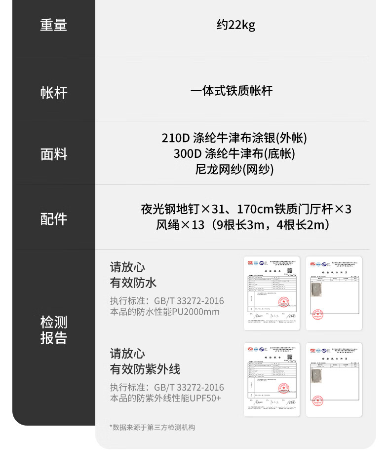 外帐采用210D涤纶牛津布涂银,
