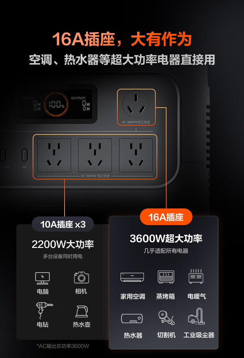 3度电超大容量,3600W更大功率,