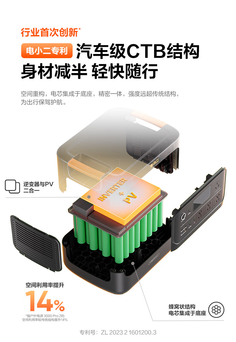 电小二首次将汽车级CTB结构应用于3度电户外电源,