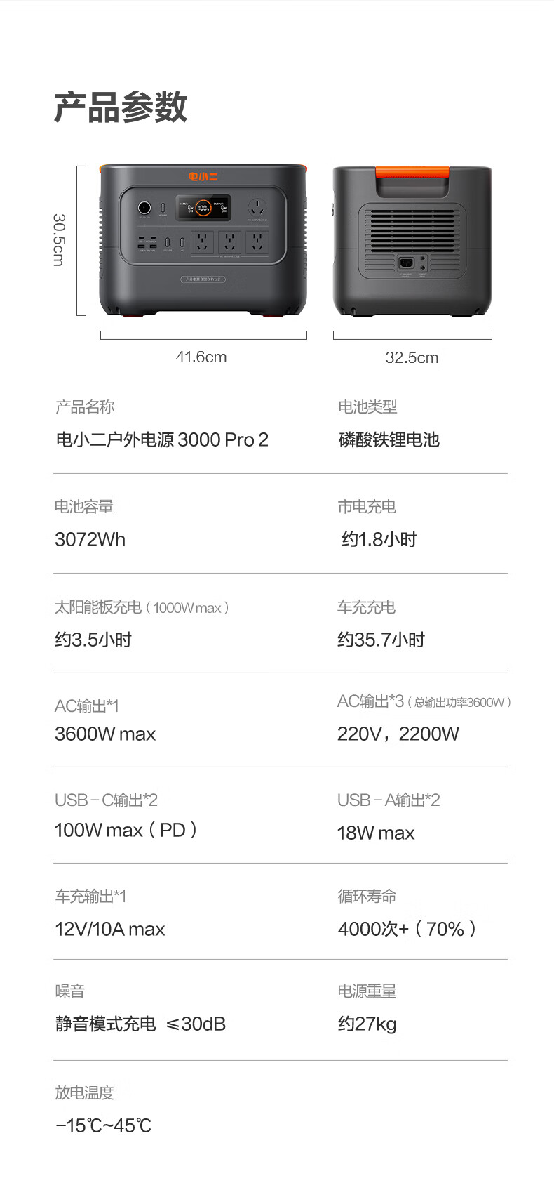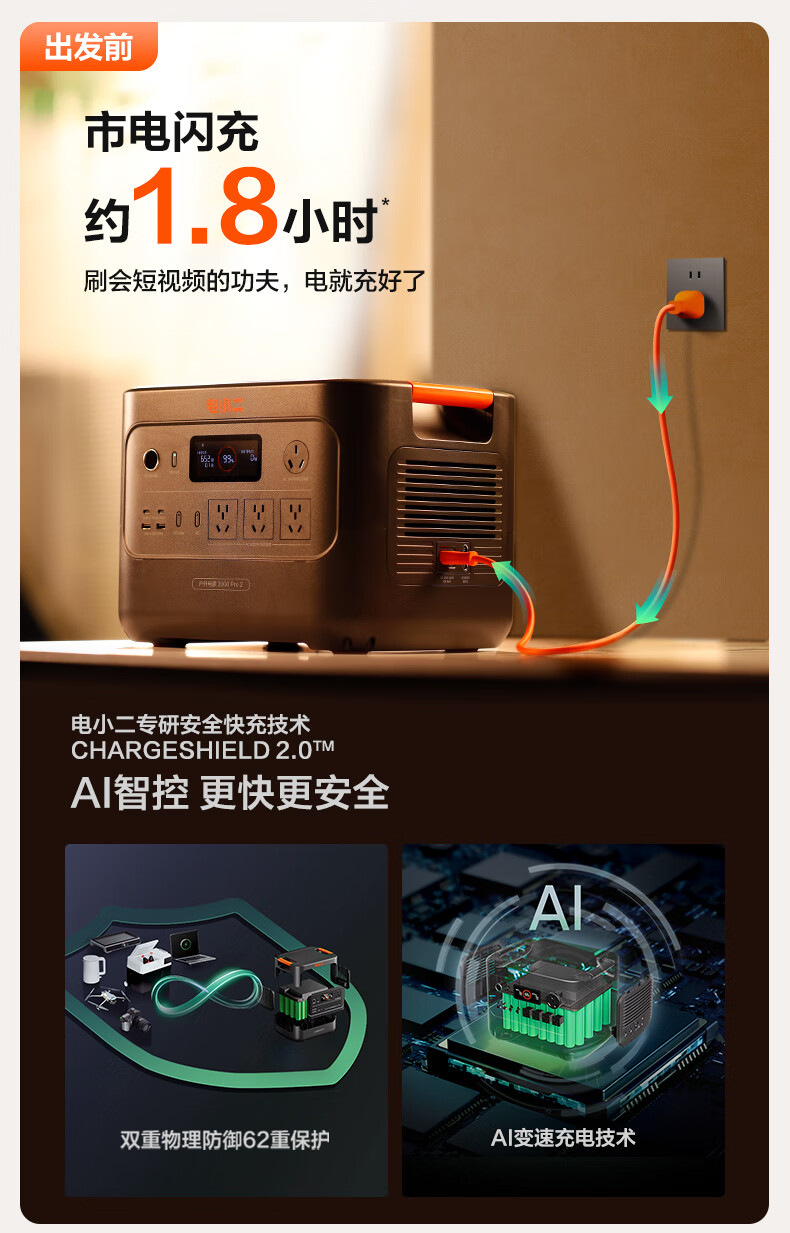 电小二 快充户外电源 三度电 E3000Pro2 大容量移动电源户外作业停电应急备用储能电源