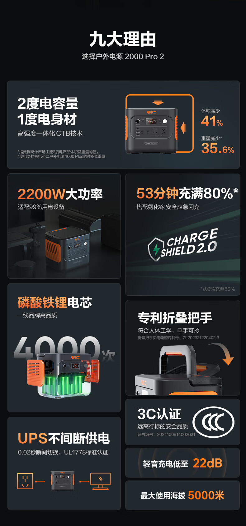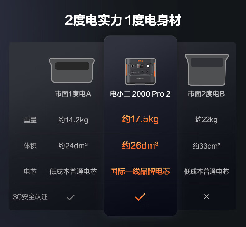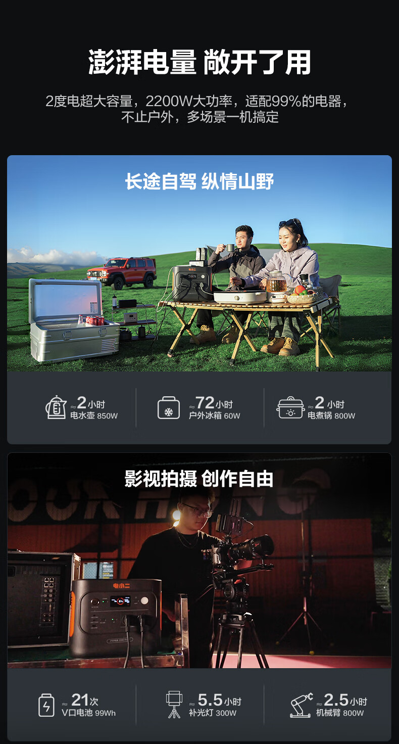 2度电超大容量,2200W大功率,