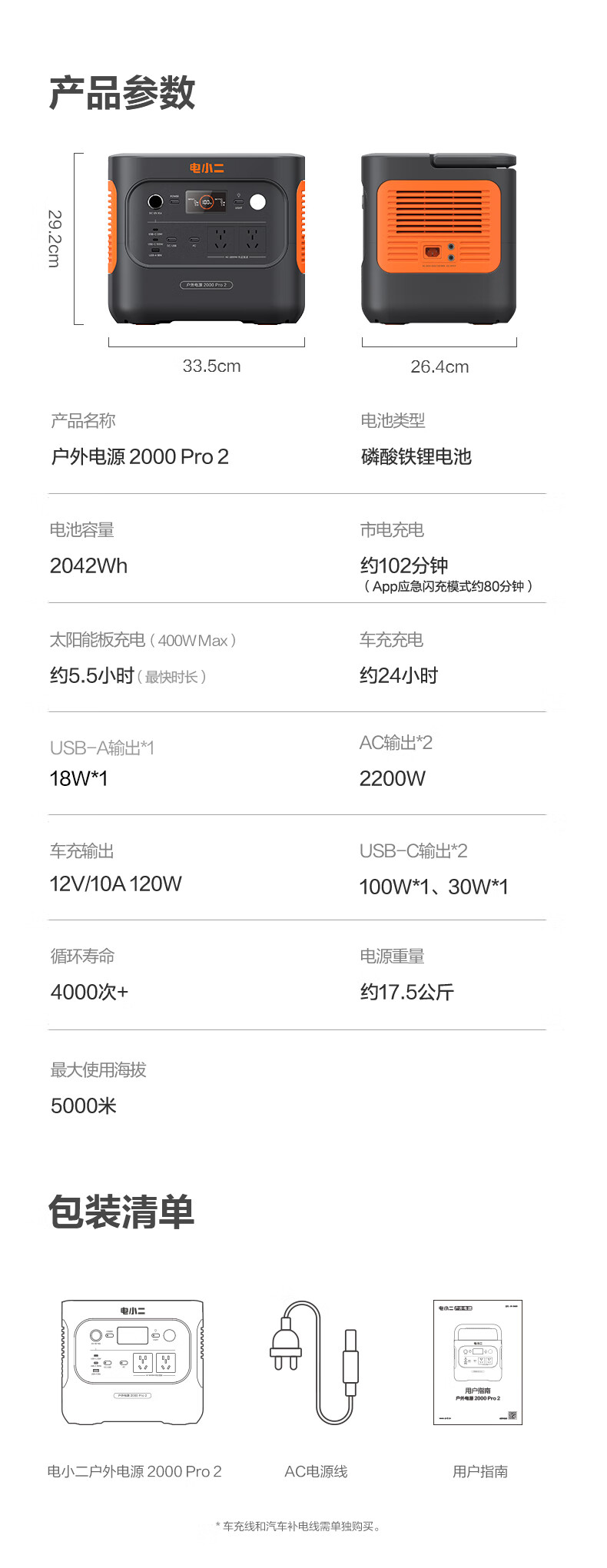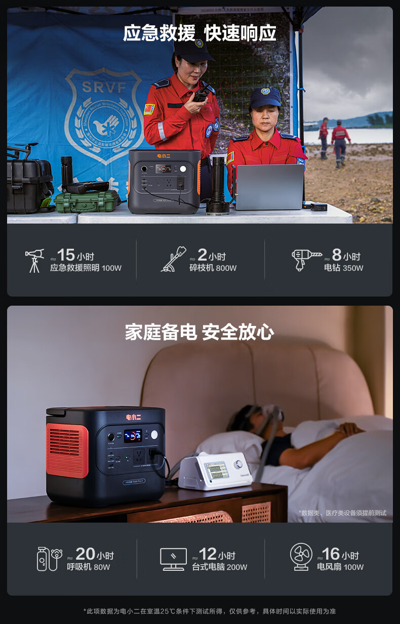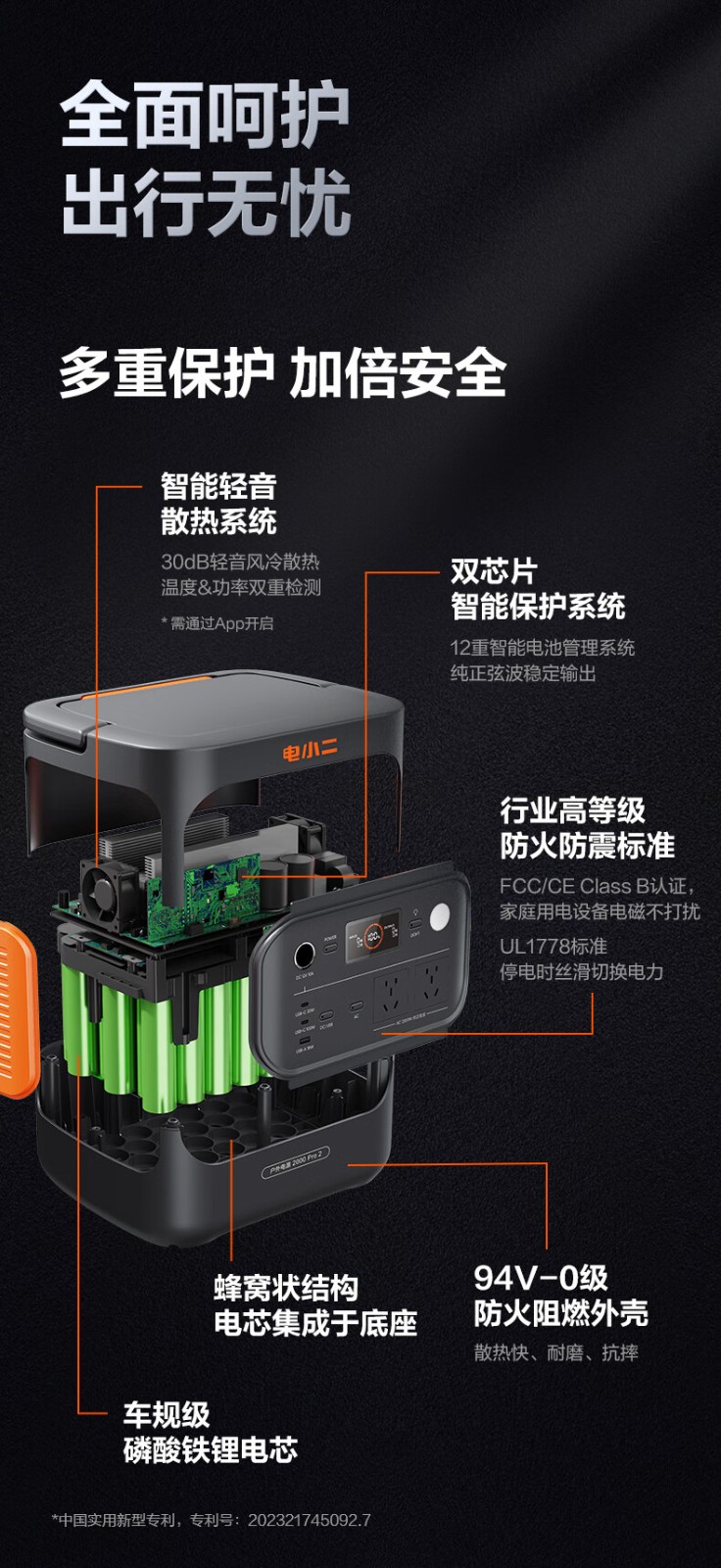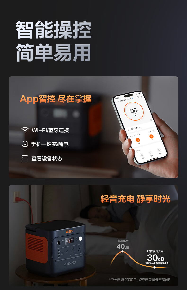 电小二 二度电 E2000Pro2 快充户外电源 2200W大功率大容量220V移动电源 车载露营应急户外作业蓄电池 磷酸铁锂电芯 UPS不间断供电