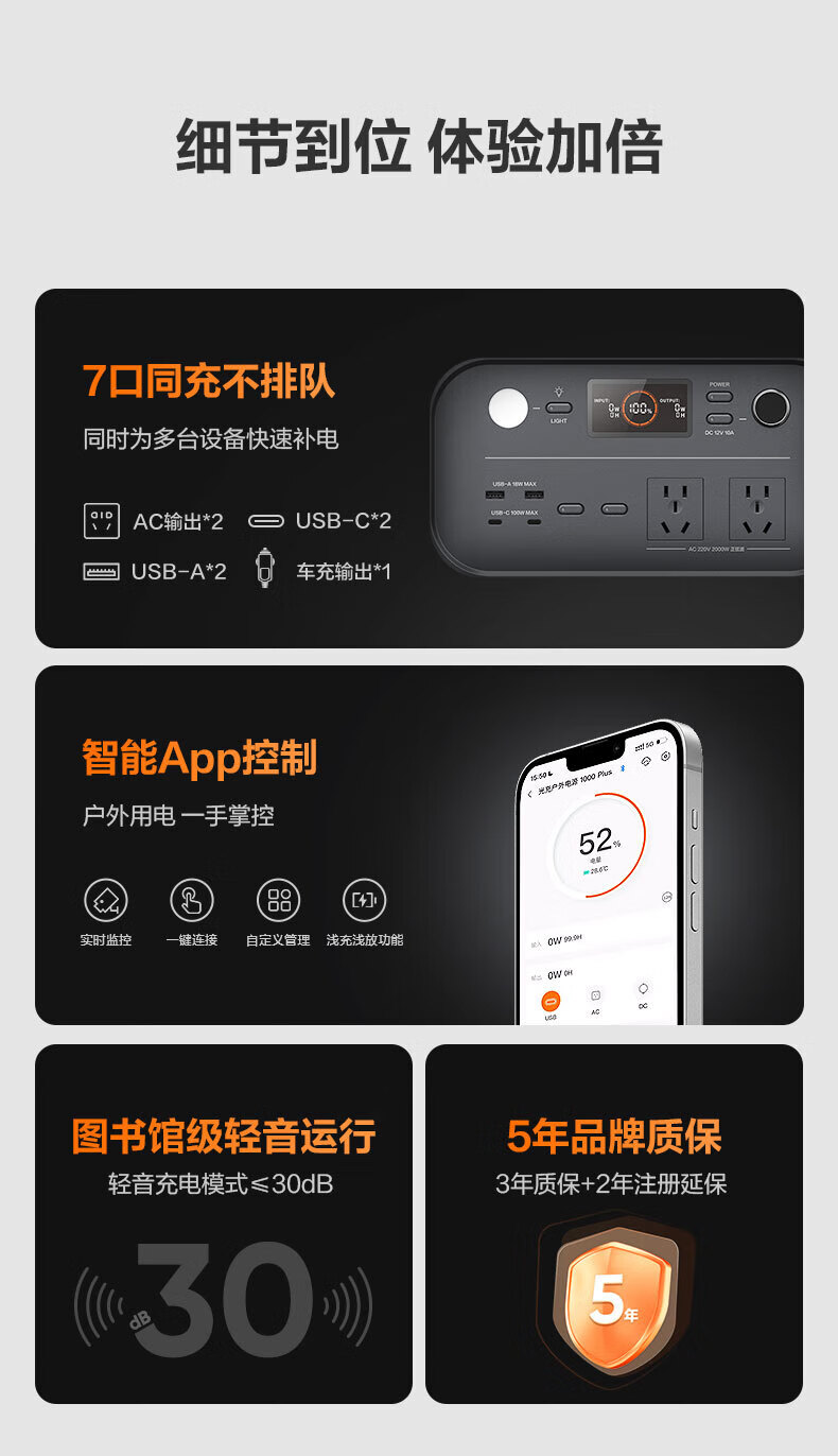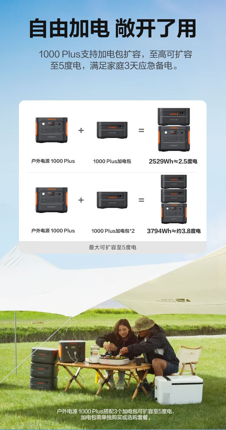 电小二 1度电E1000Plus加电包 户外电源 大功率露营自驾游家用应急蓄电储能电池 220V移动电源 (不可独立使用) 防火 防震 安全耐用
