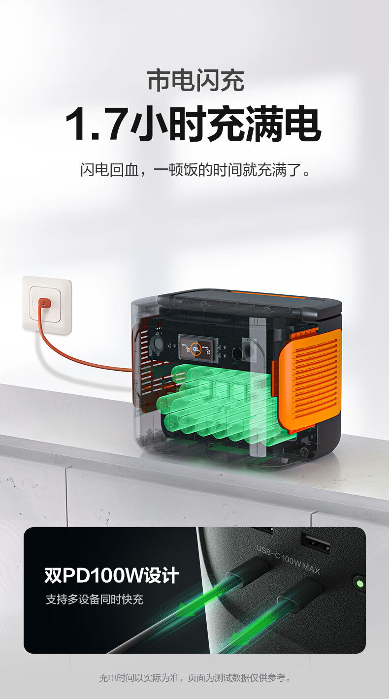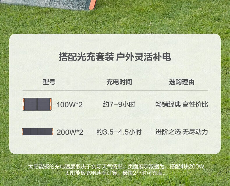 最快2小时充满,离网快速补电。