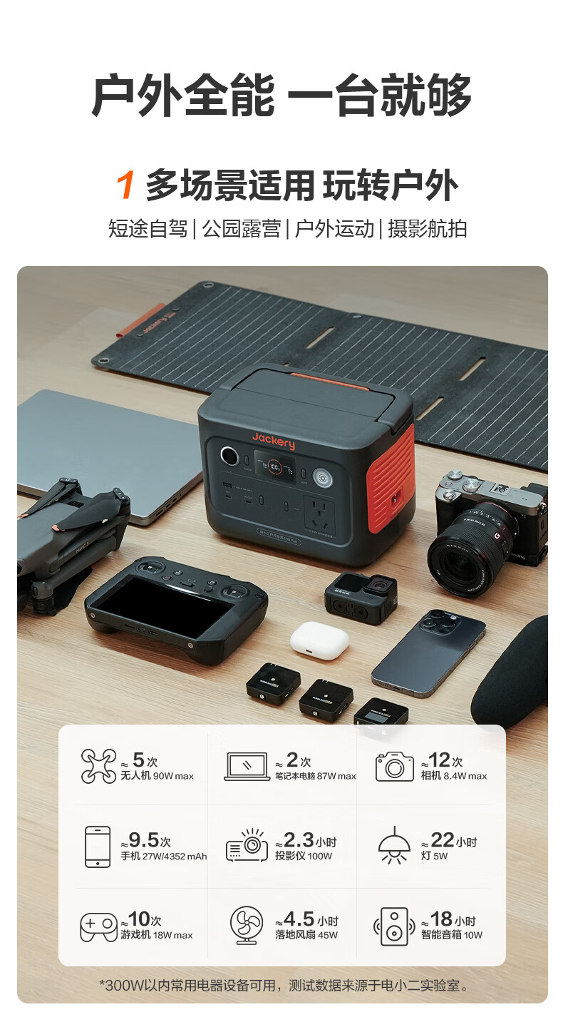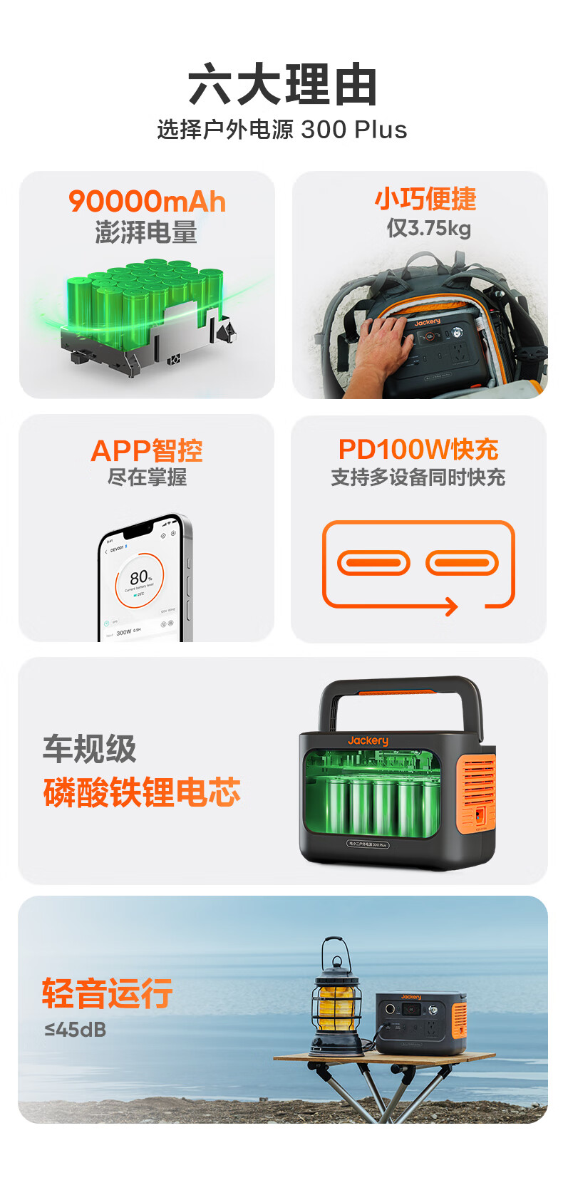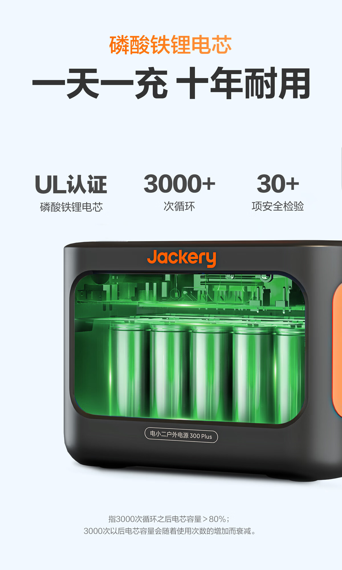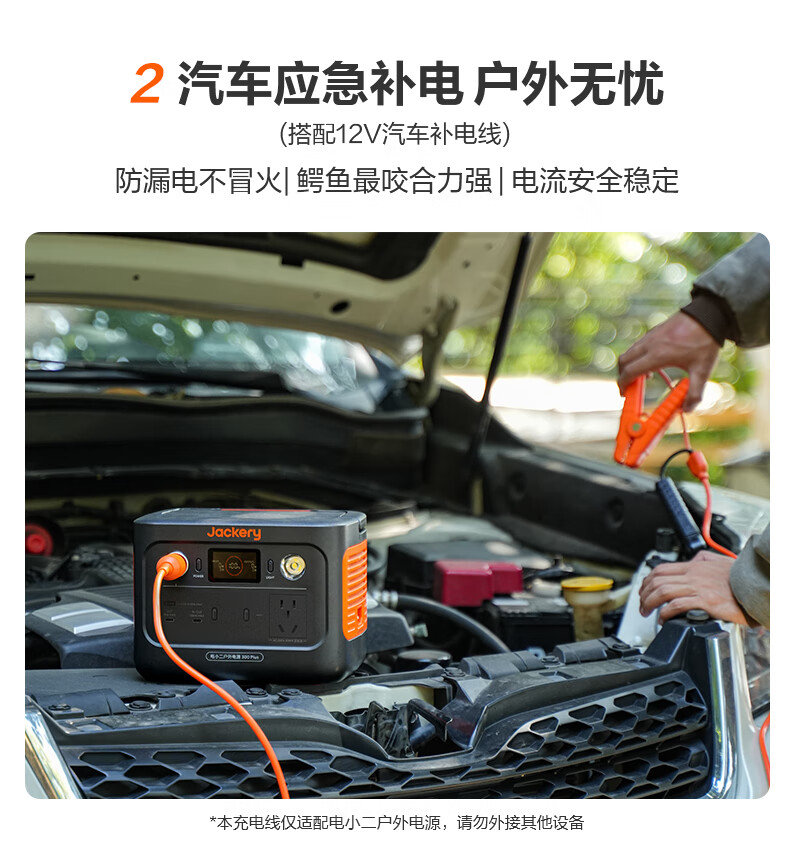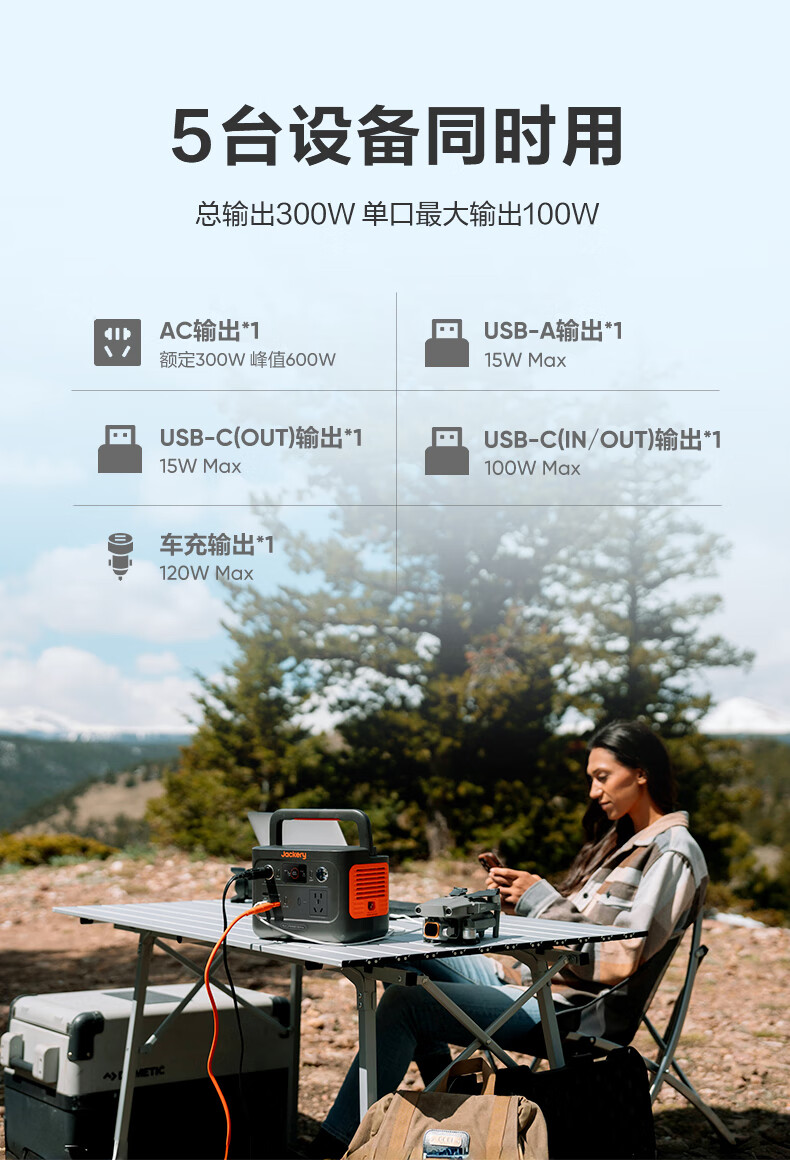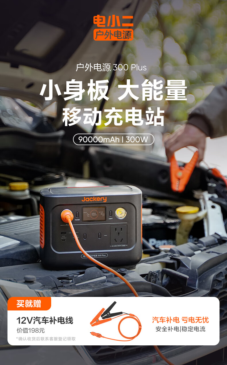 电小二 0.3度电E300Plus 户外电源 汽车90000mAh应急启动补电300W磷酸铁锂快充220V移动便携露营充电宝 EPS紧急备电 轻音运行 多设备同时充