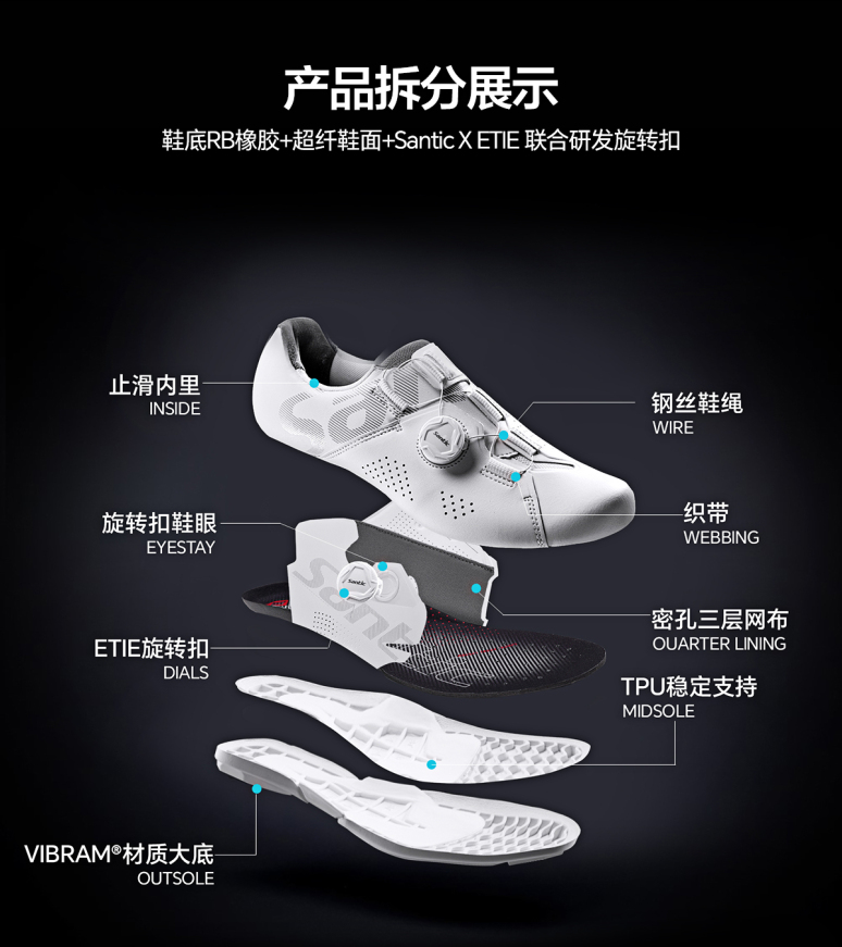 Santic森地客 全地形无锁骑行鞋 非锁助力骑行鞋 男女自行车休闲公路山地车骑行鞋 无锁鞋子 苍穹 TZS25058G 灰色 苍穹非锁助力骑行鞋,无锁胜有锁,一脚定乾坤