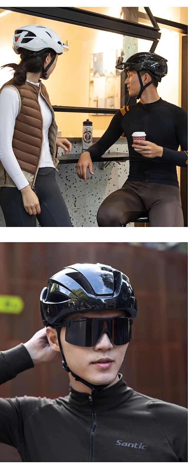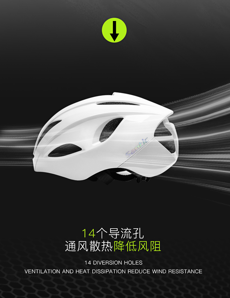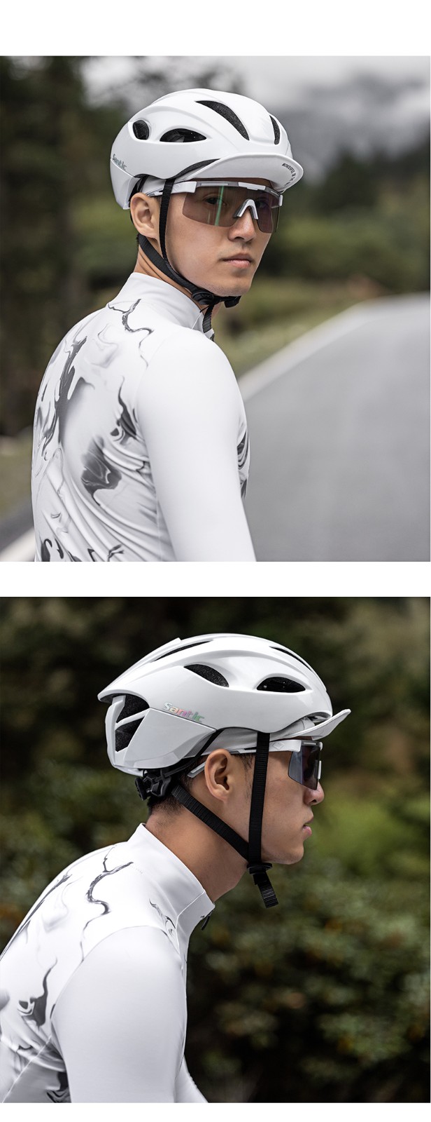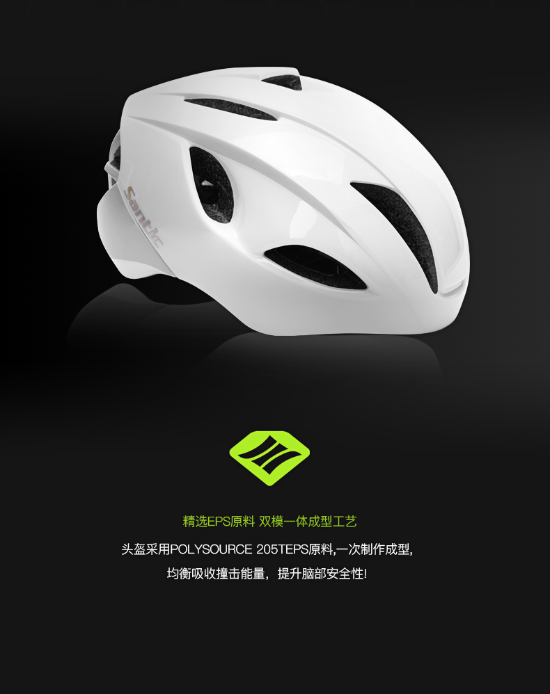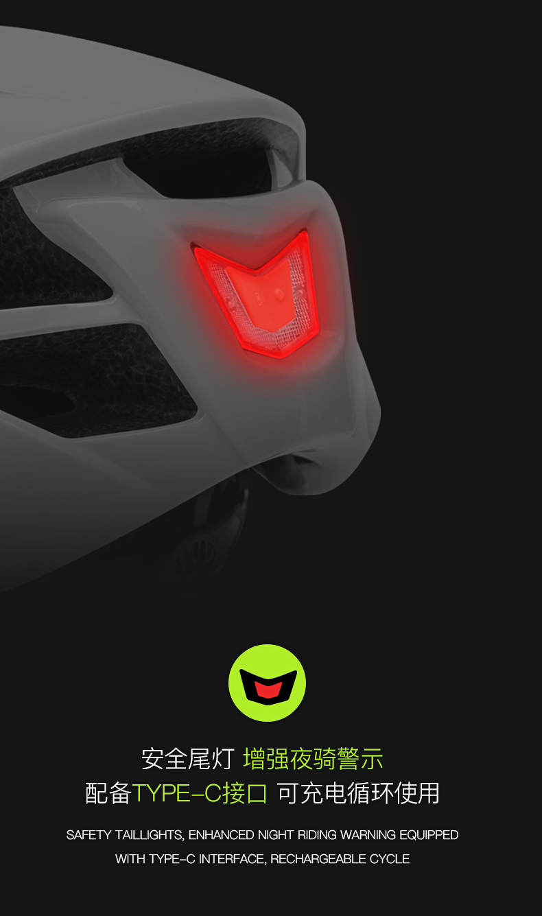 Santic森地客自行车骑行头盔 一体成型尾灯款公路车气动安全帽 云盏 W3P155W 白色 双标认证 警示尾灯 可拆洗内衬