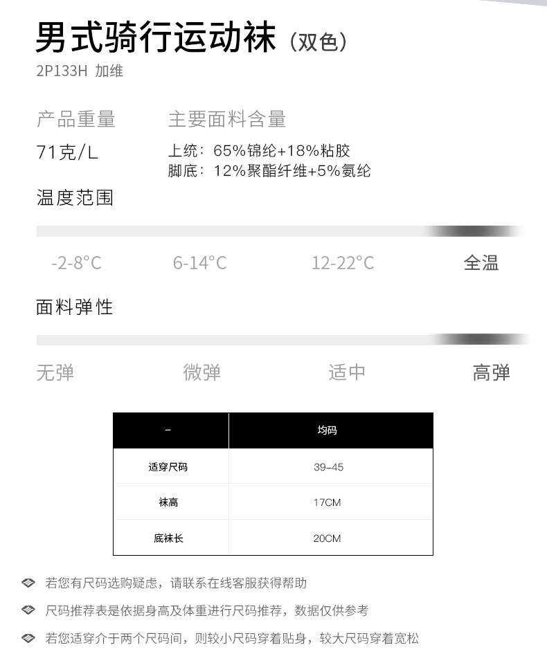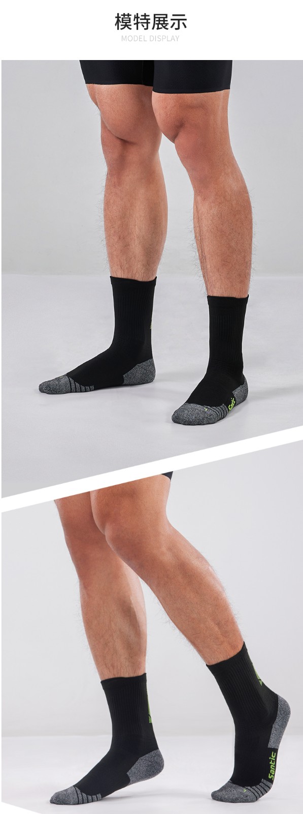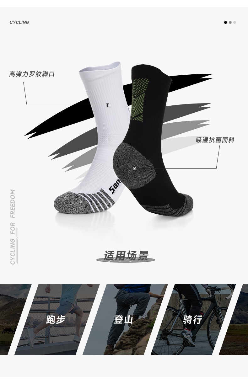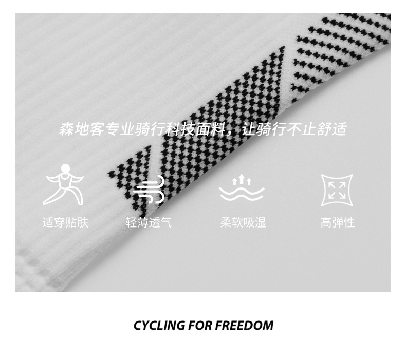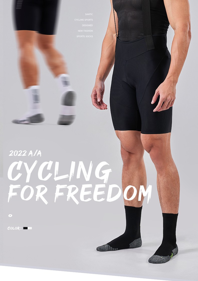 Santic森地客男式骑行运动袜 中长筒透气自行车袜子 骑行装备 2P133 白色 黑色 均码 专业骑行科技面料 轻薄透气 柔软吸湿