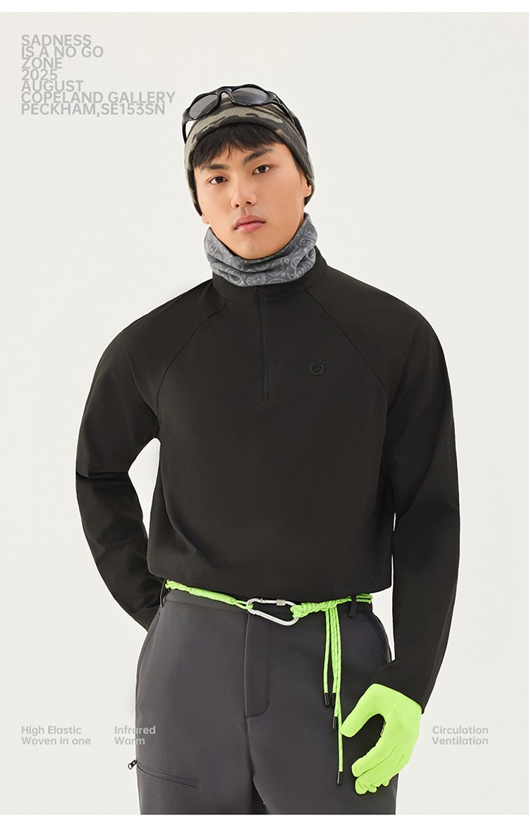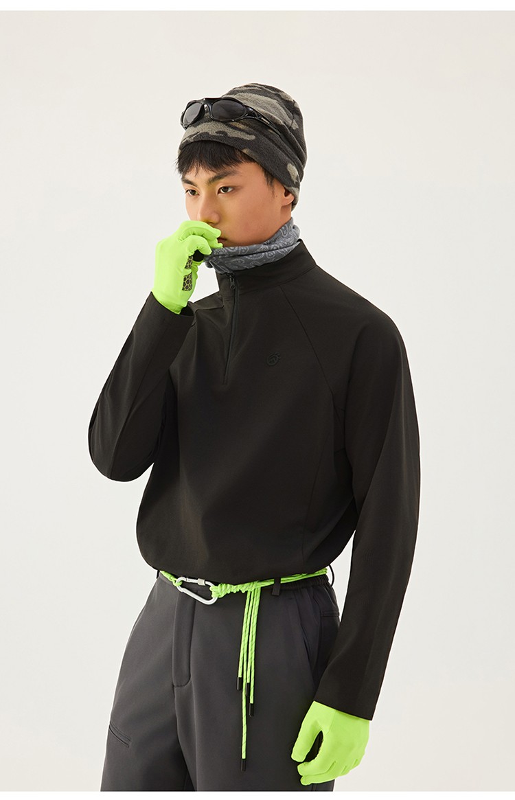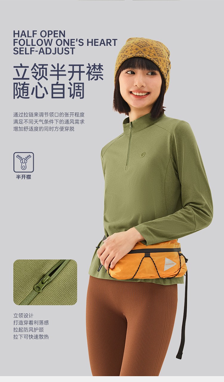 立领半开衫设计,既可以防住脖颈不受寒,也可以快速散热风,方便穿脱:侧缝拼接工艺丰富视觉设计感,展现体型柔感:正常合身版型,宽松不紧绷,适应多种身材穿搭。