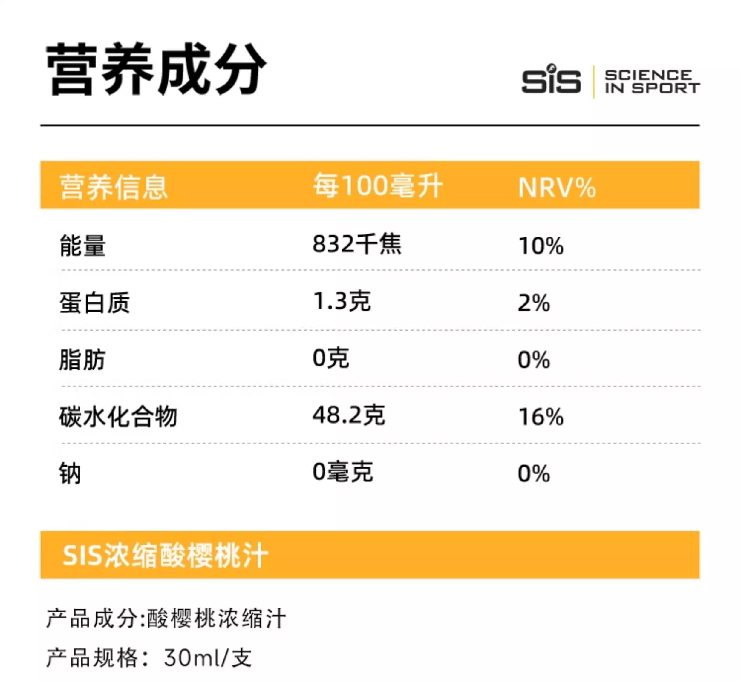 英国进口SIS 浓缩酸樱桃汁饮料马拉松骑行跑步训练比赛运动后补充 30ml*30支装 天然水果成分,便携设计,多种运动适用!