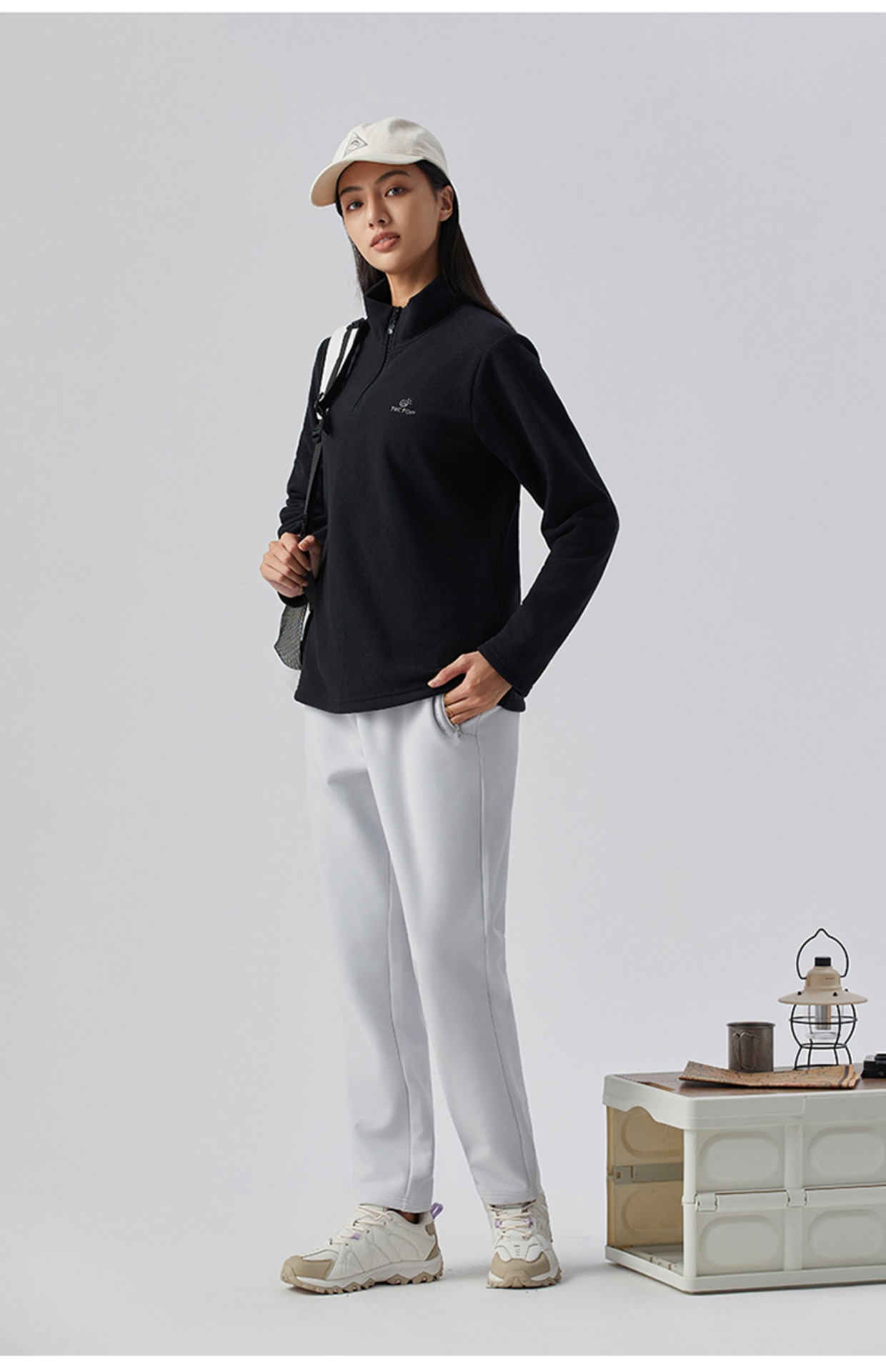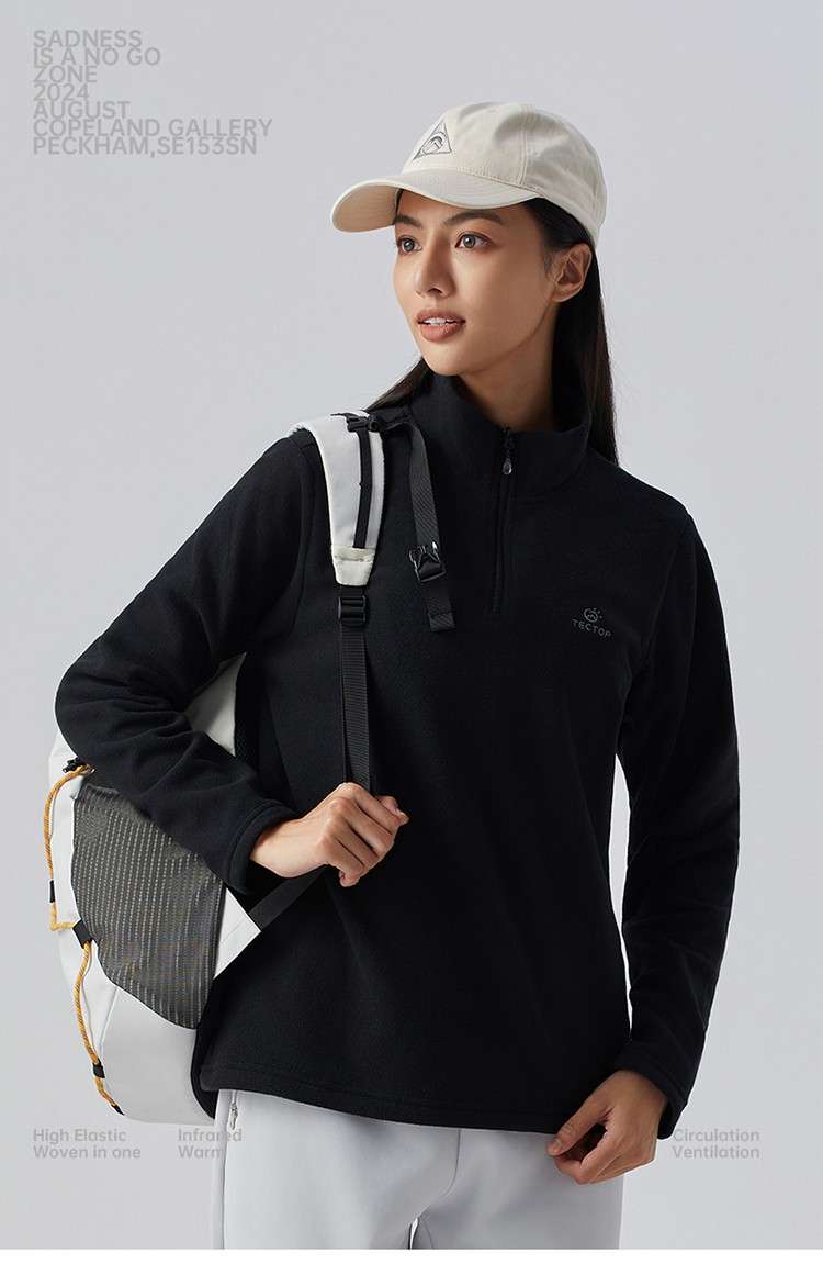 TECTOP探拓 秋冬户外女款抓绒衣 半开衫运动加绒休闲保暖情侣套头抓绒衣 MZRY033-6 经典黑 绒粒细腻 暖绒御寒 耐磨抗拉扯