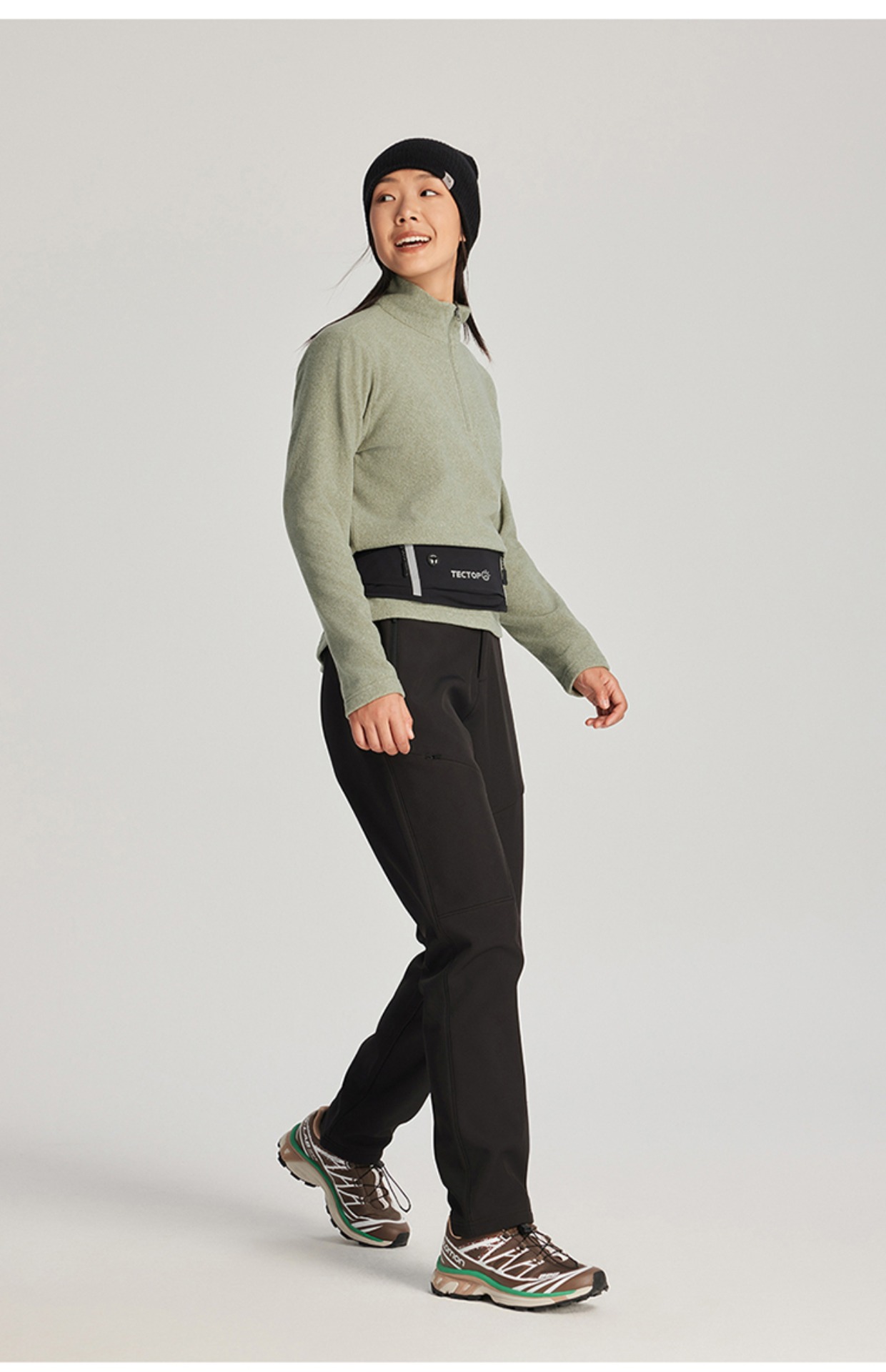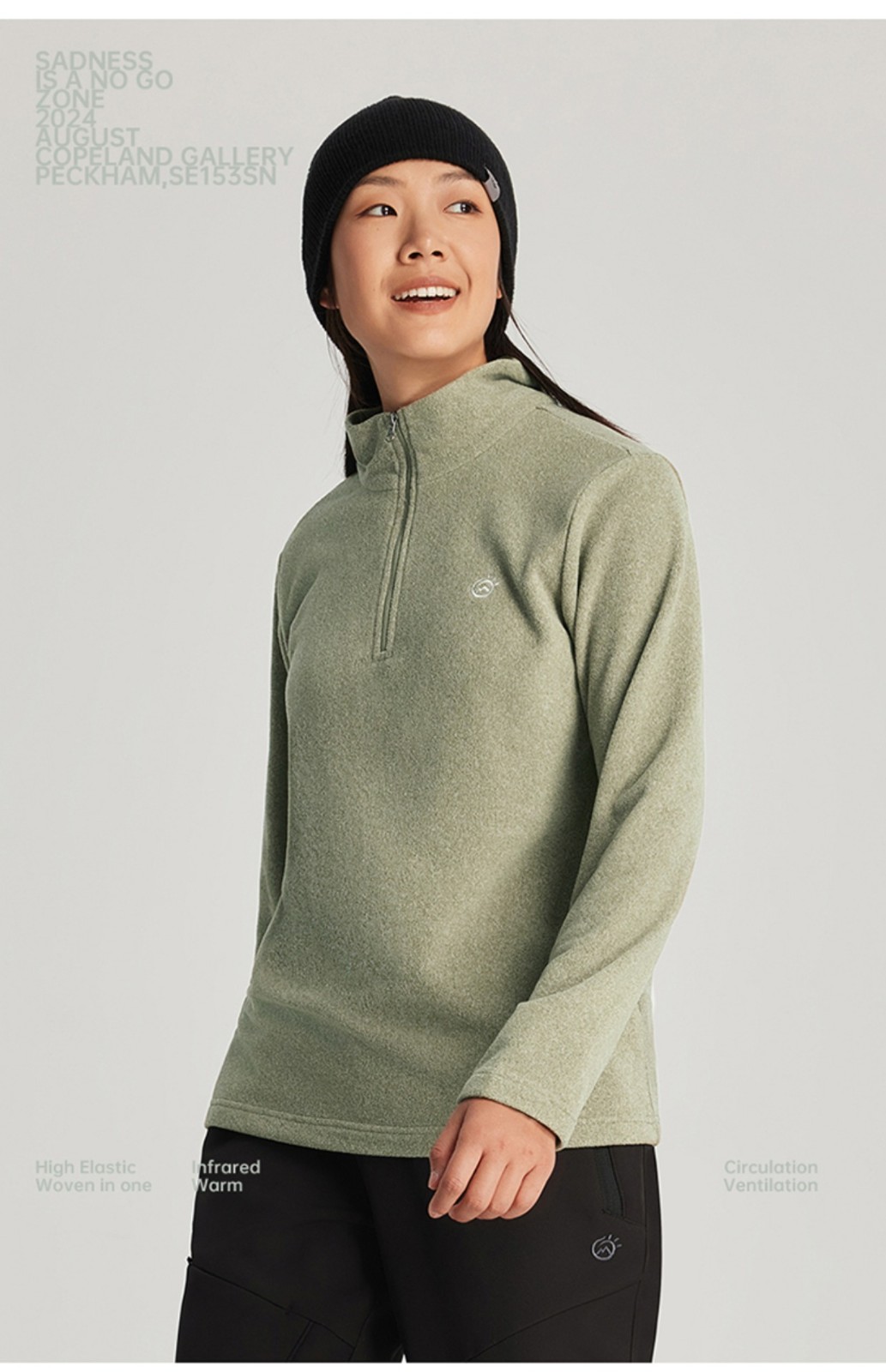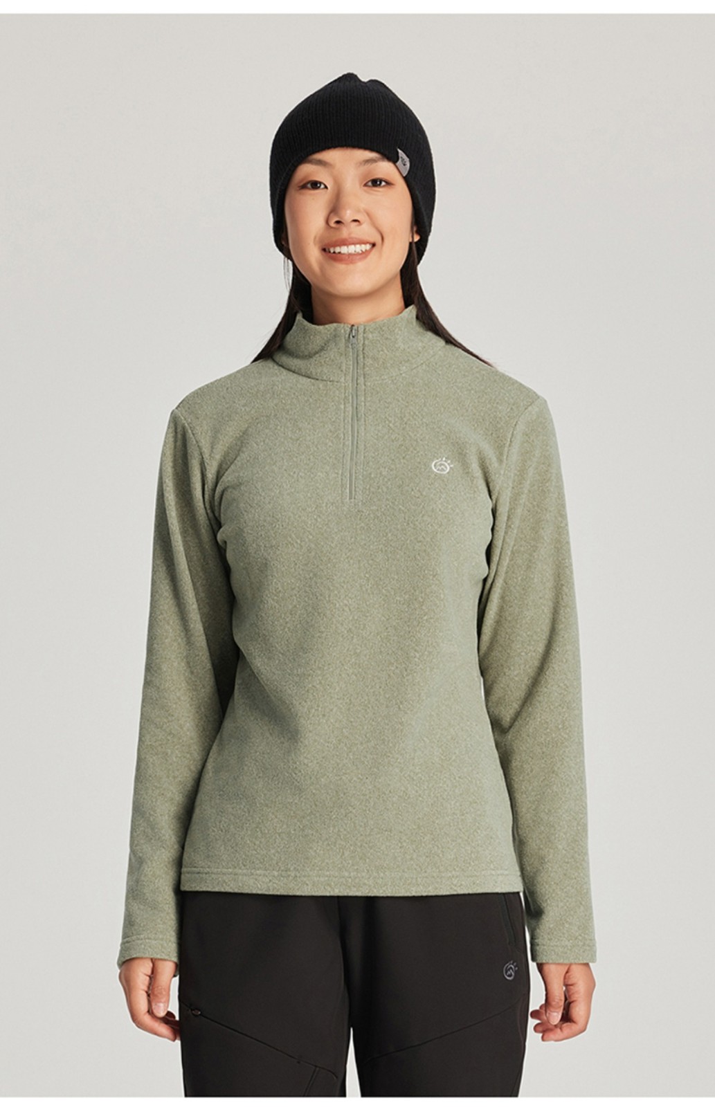 TECTOP探拓 秋冬户外女款抓绒衣 半开衫运动加绒休闲保暖情侣套头抓绒衣 MZRY033-6 艾绿色 绒粒细腻 暖绒御寒 耐磨抗拉扯