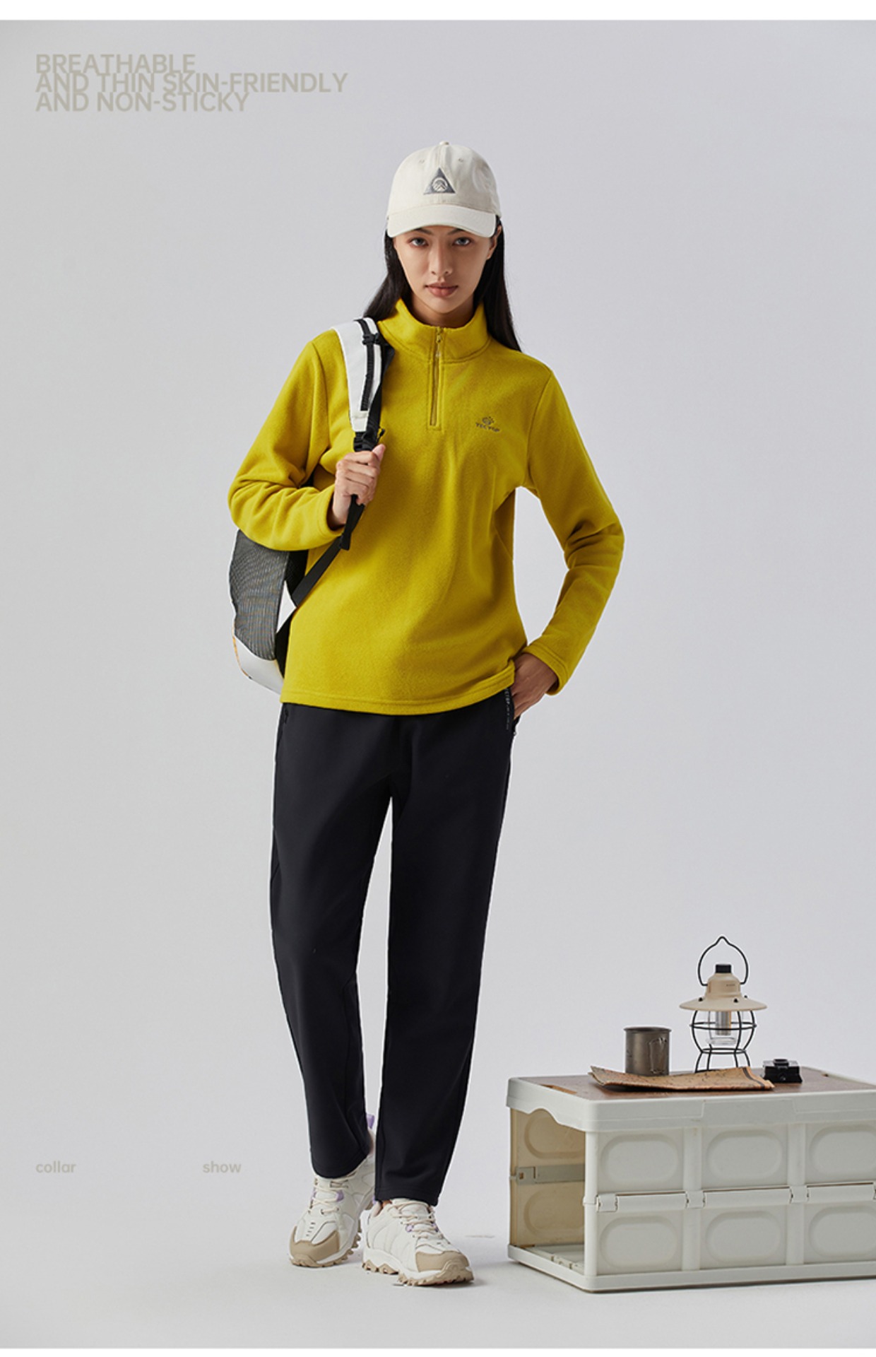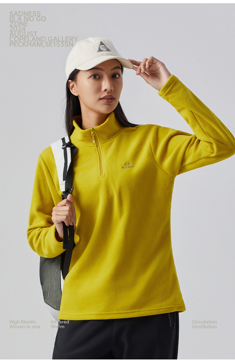 TECTOP探拓 秋冬户外女款抓绒衣 半开衫运动加绒休闲保暖情侣套头抓绒衣 MZRY033-6 姜黄色 绒粒细腻 暖绒御寒 耐磨抗拉扯