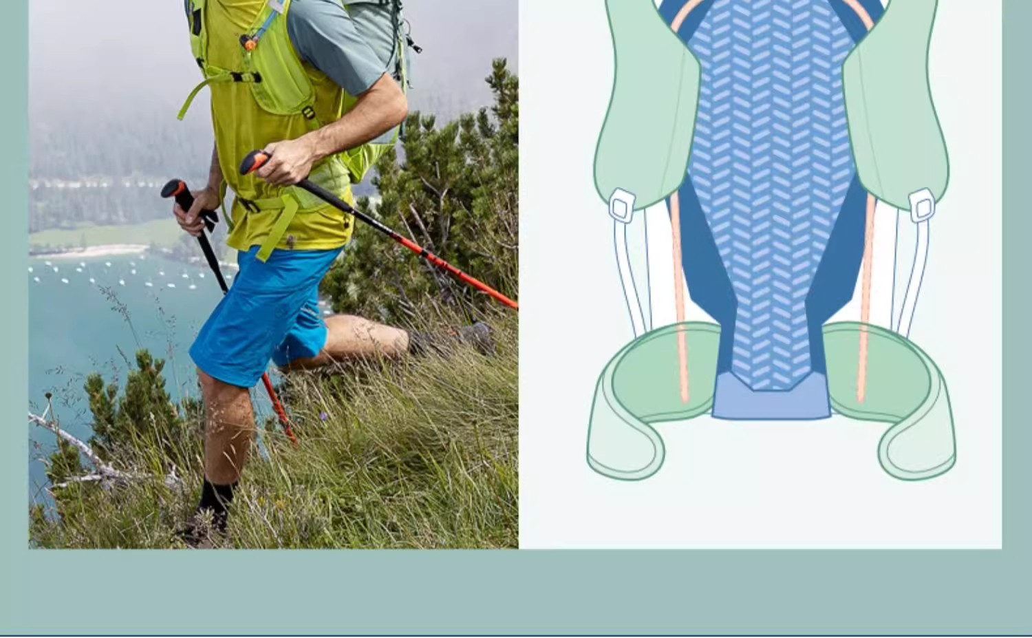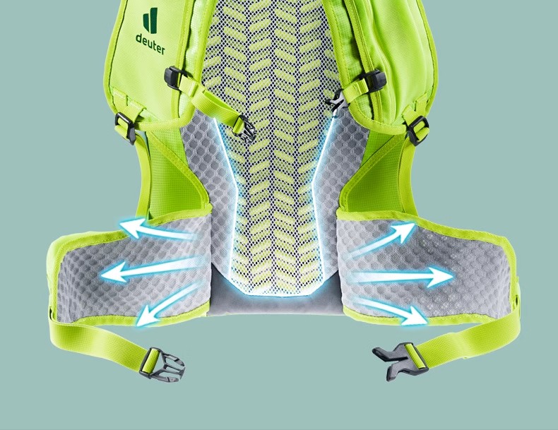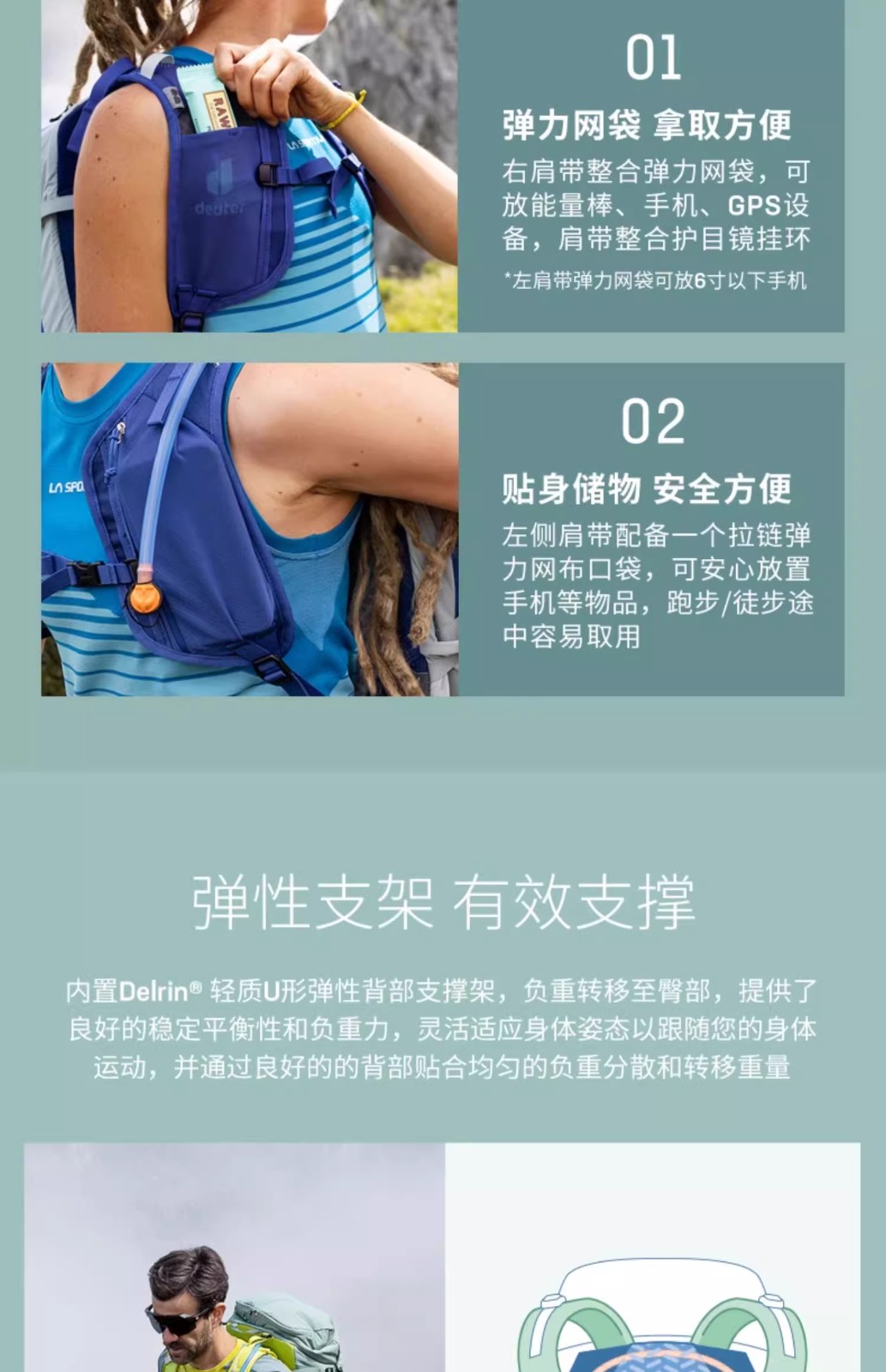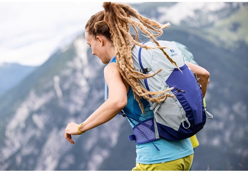 SPEED LITE 为快节奏的远足徒步和越野跑而设计,得益于Lite蜂巢背负系统、背心式网眼肩带、柔软的腰翼、可精准调节的胸带和可回收经 bluesign?认证的面料,侧面压缩带可有效减少负载摆动并实现全方位运动。肩带上的口袋可放置手机、GPS设备或数码相机,较大的物品可以存放在宽敞的盖子口袋中。