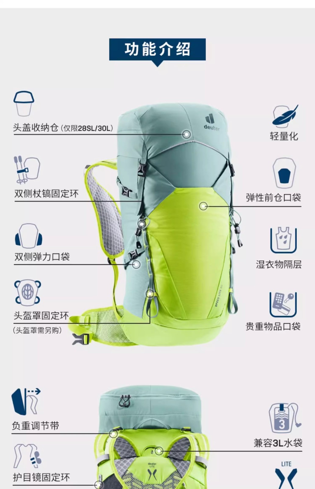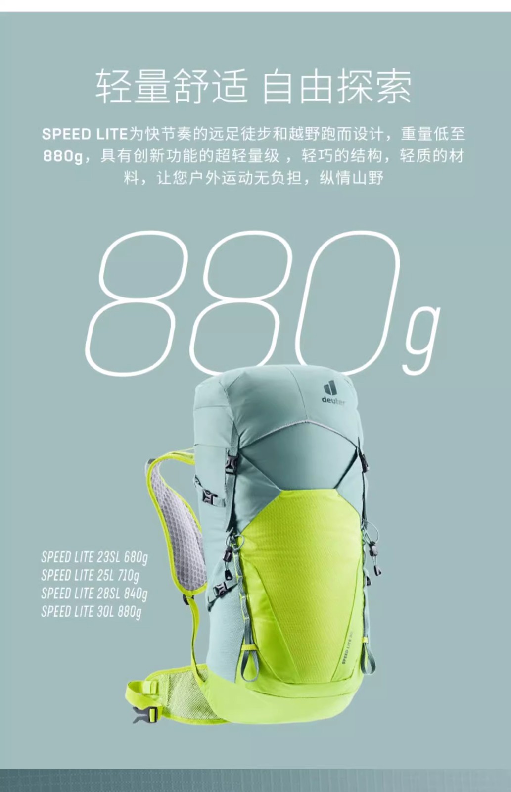 deuter多特 速特徒步双肩包 速特Speed Lite男女徒步轻便大容量户外双肩背包 30L 蜂巢背负 舒适透气 弹性支架 有效支撑
