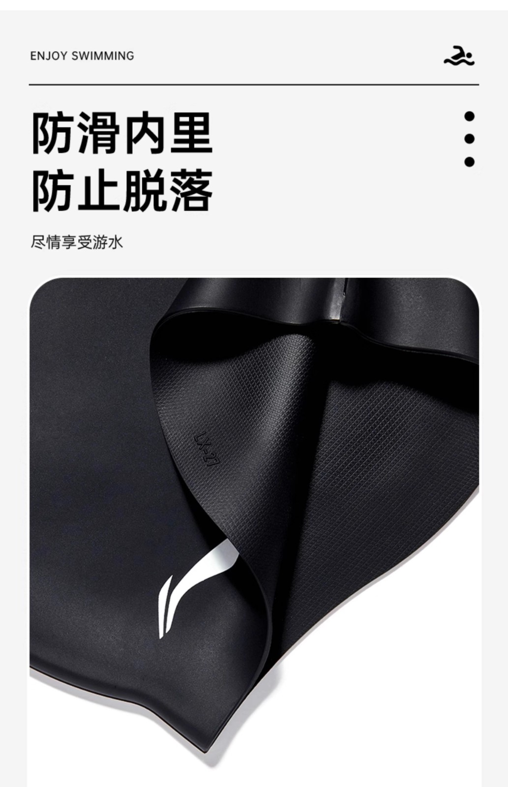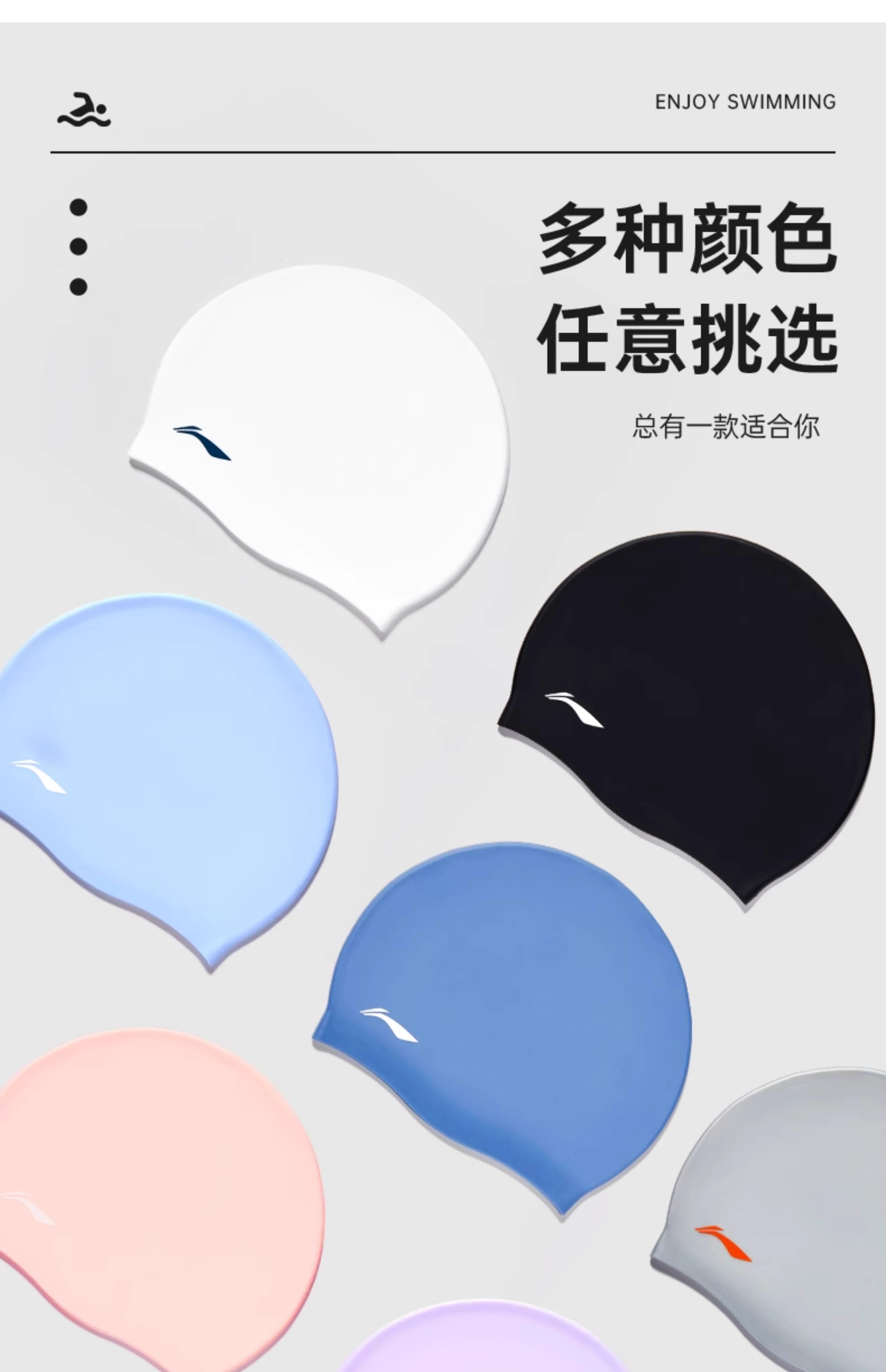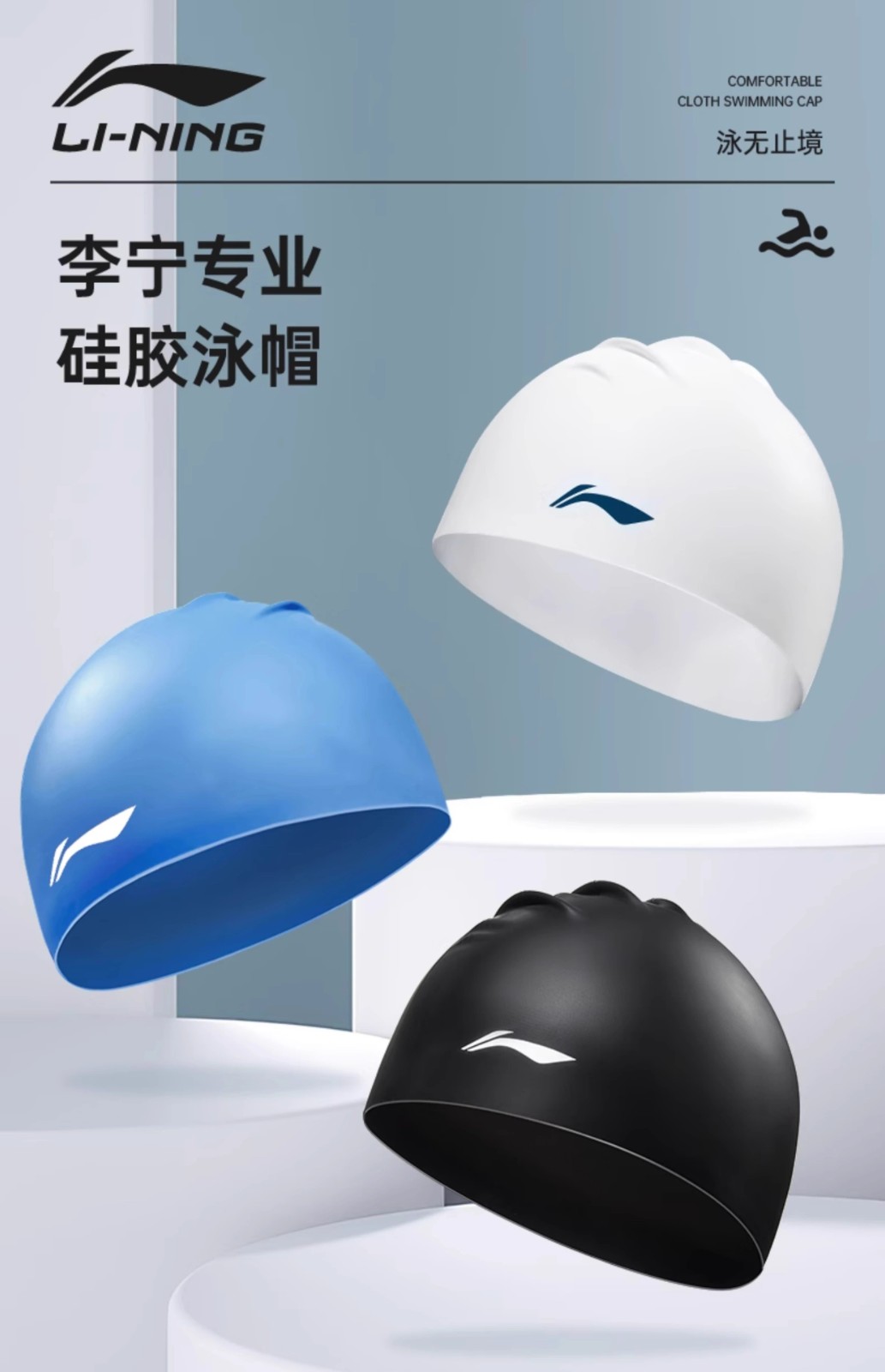 LINING李宁 成人硅胶泳帽 防水防滑泳帽 大号时尚护耳专业游泳帽子 LXMU520 多色可选