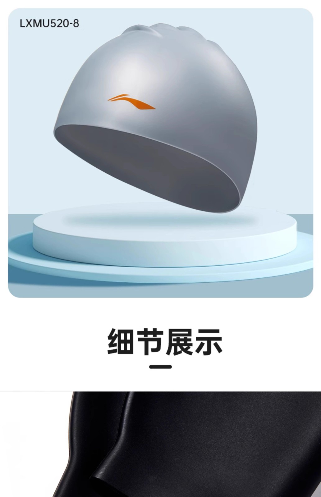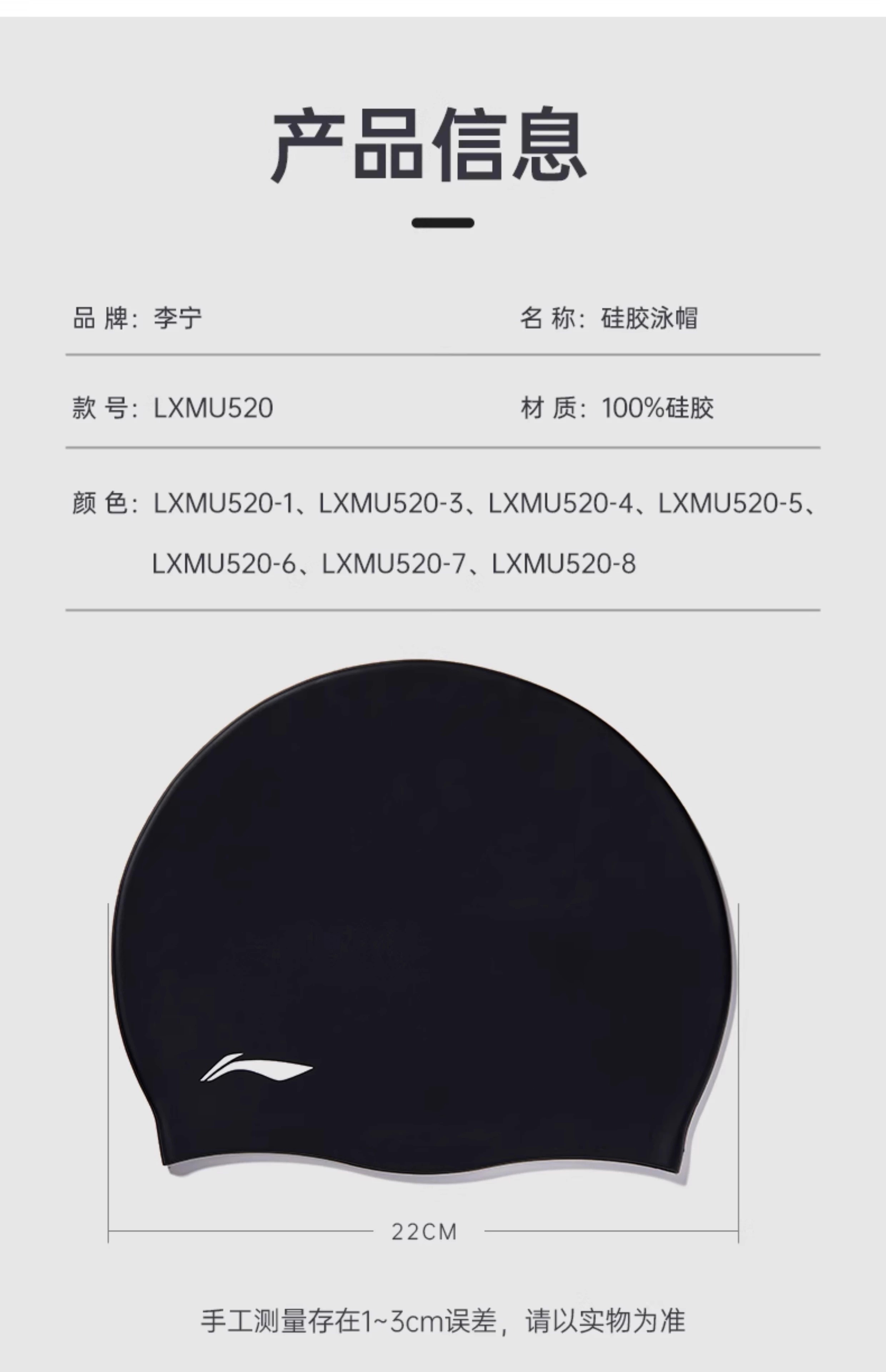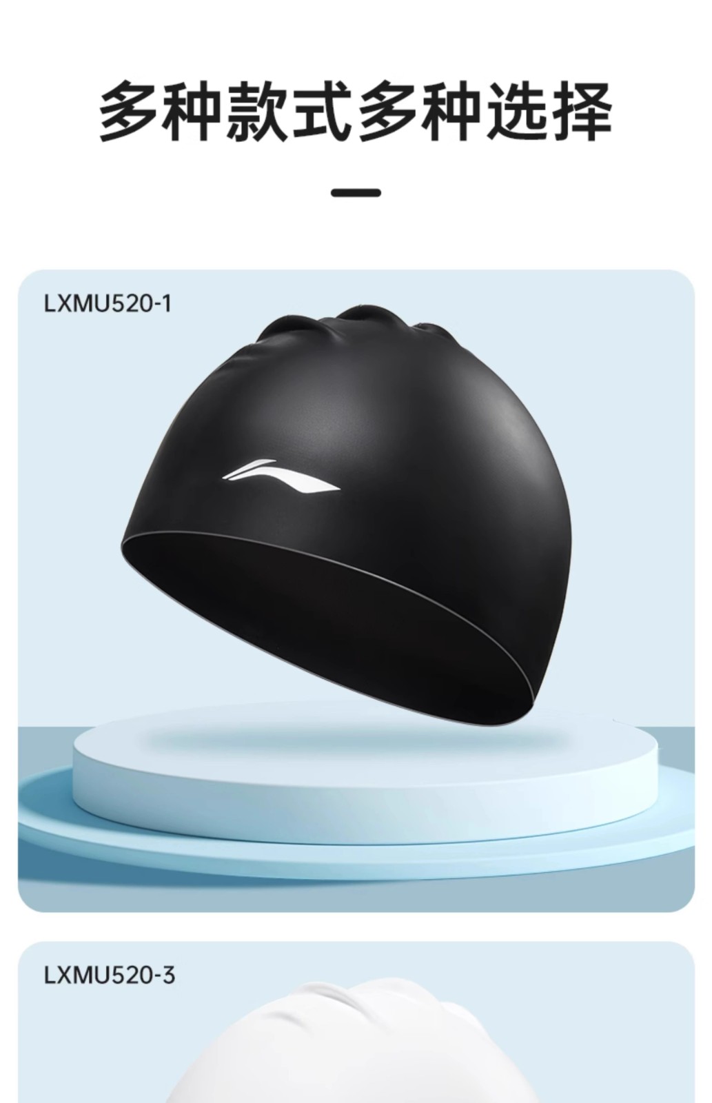 LINING李宁 成人硅胶泳帽 防水防滑泳帽 大号时尚护耳专业游泳帽子 LXMU520 多色可选