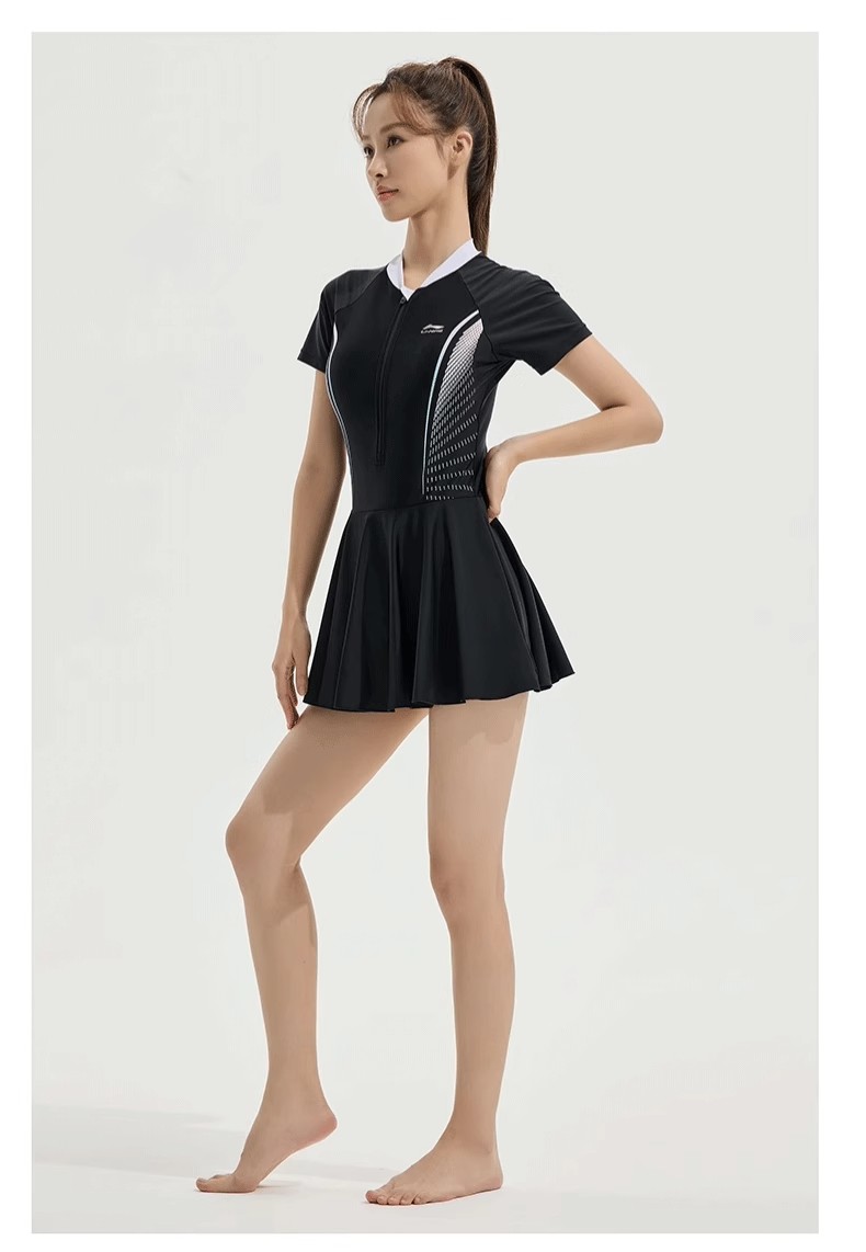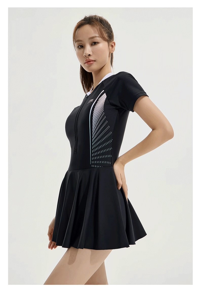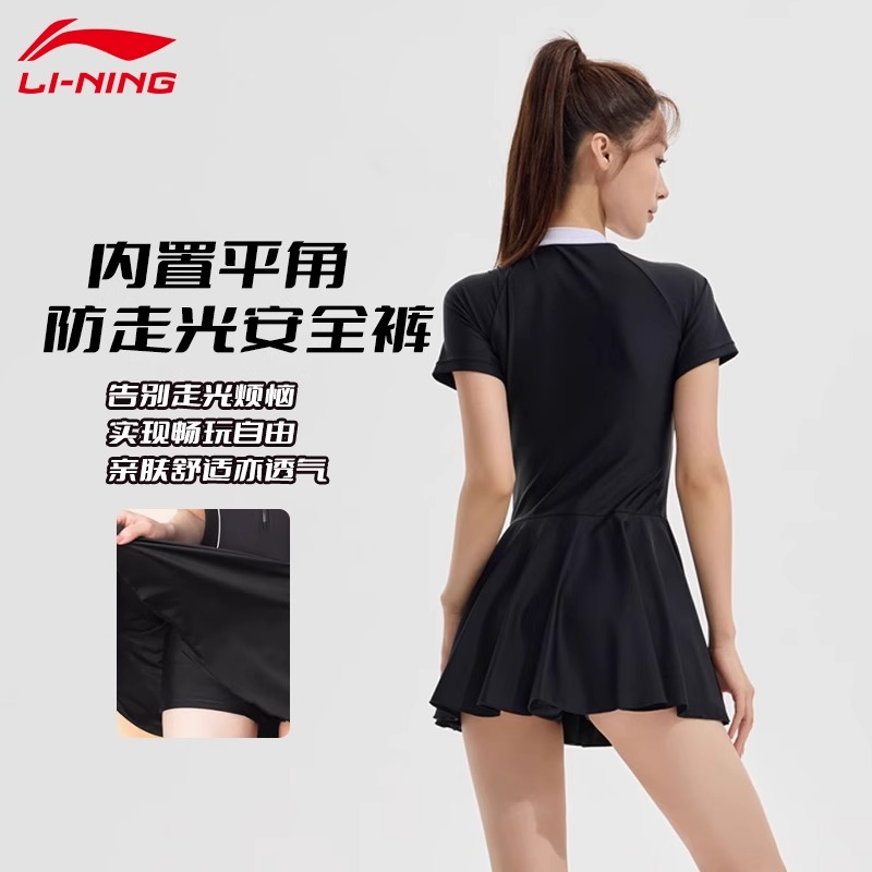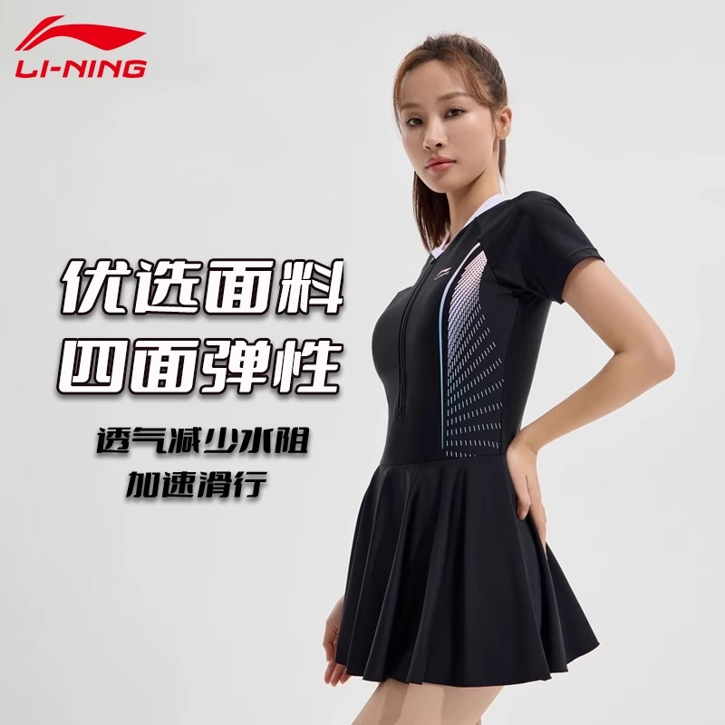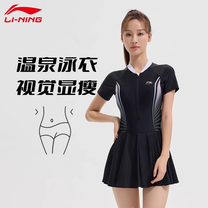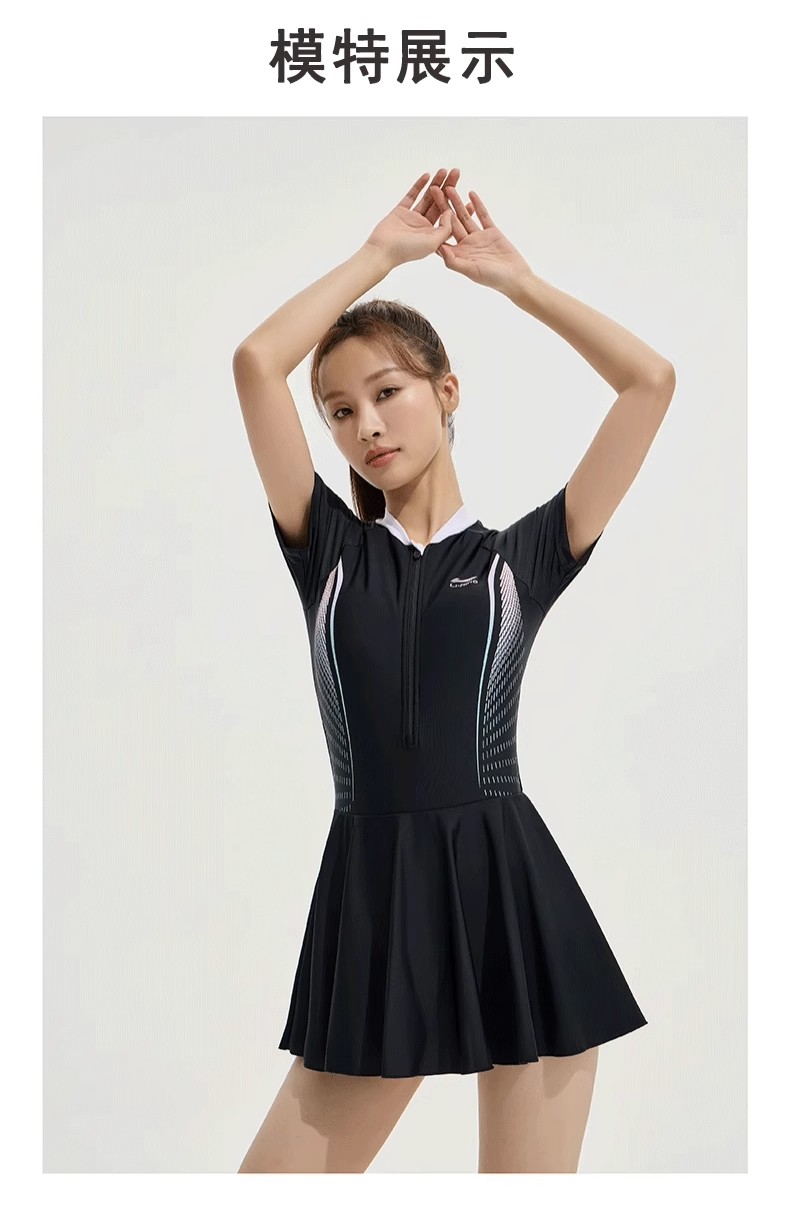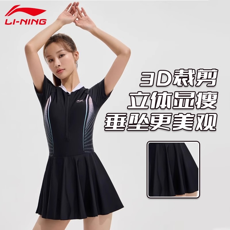 LINING李宁 游泳衣 连体裙式游泳衣 女款遮肚显瘦 温泉裙子泳装 LXYU055-3 3D裁剪,立休显瘦,垂坠更美观