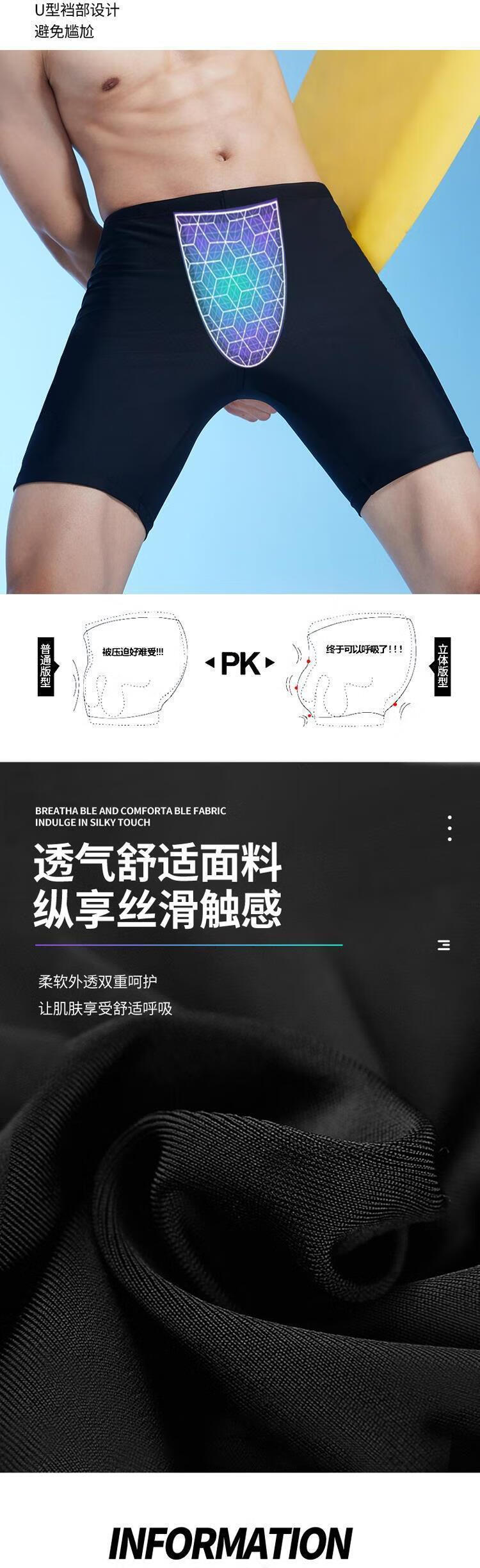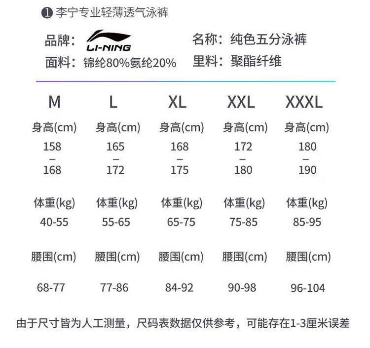 LINING李宁 男士泳裤 五分泳裤 专业游泳裤 速干平角泳裤 LXST117-1 黑色