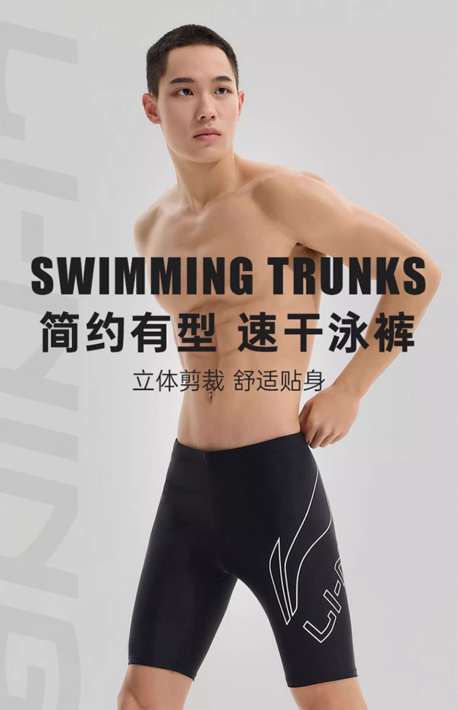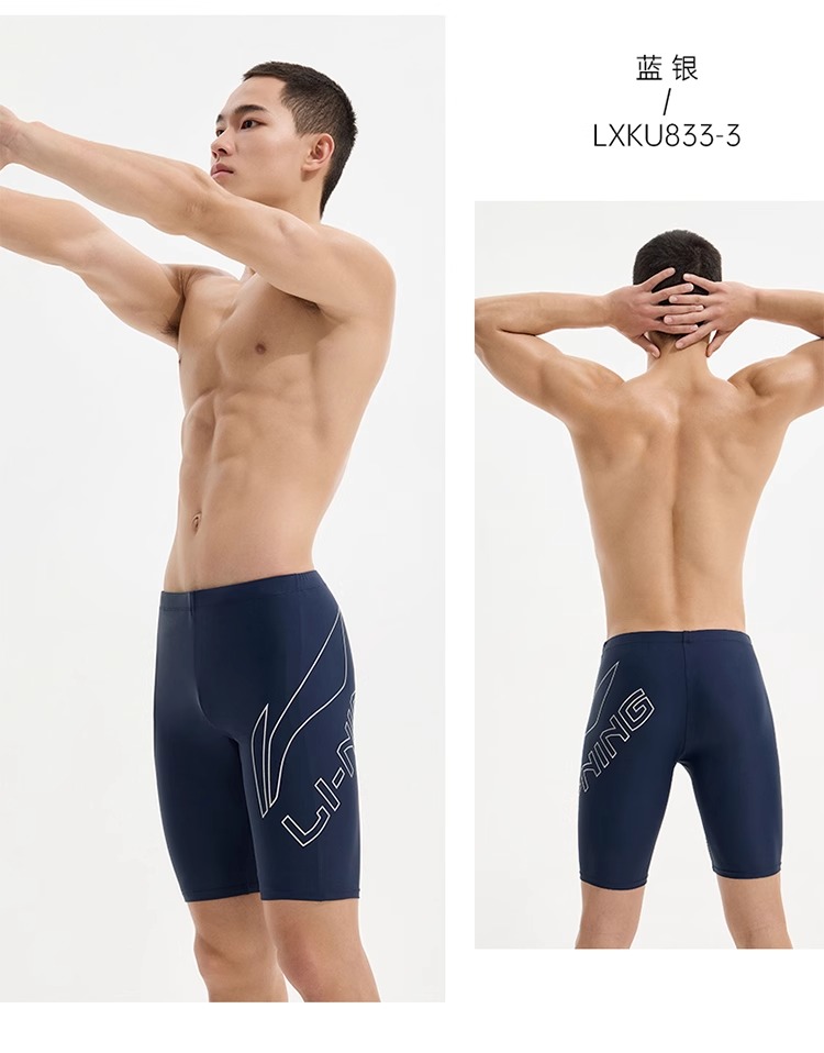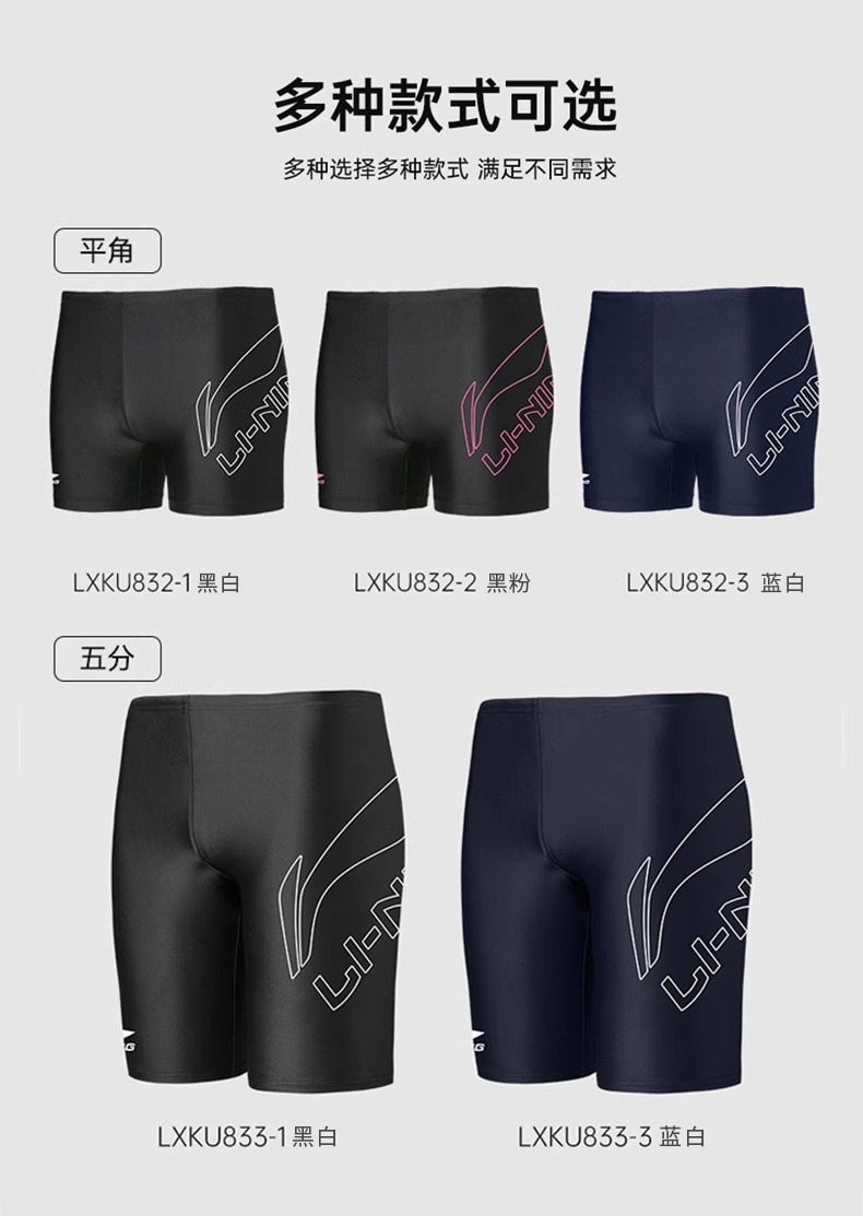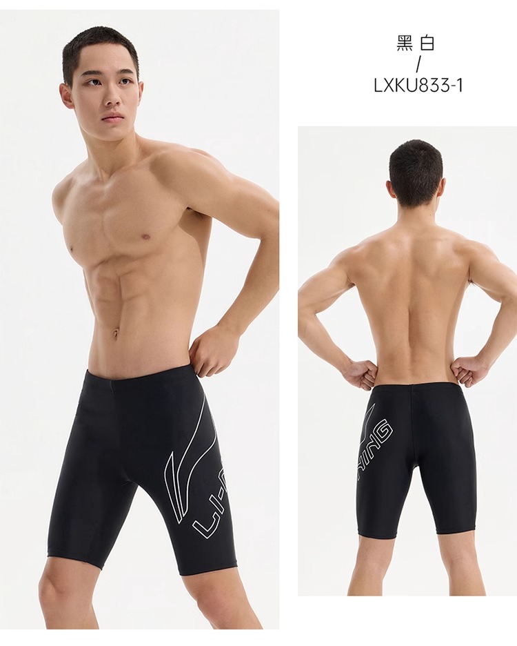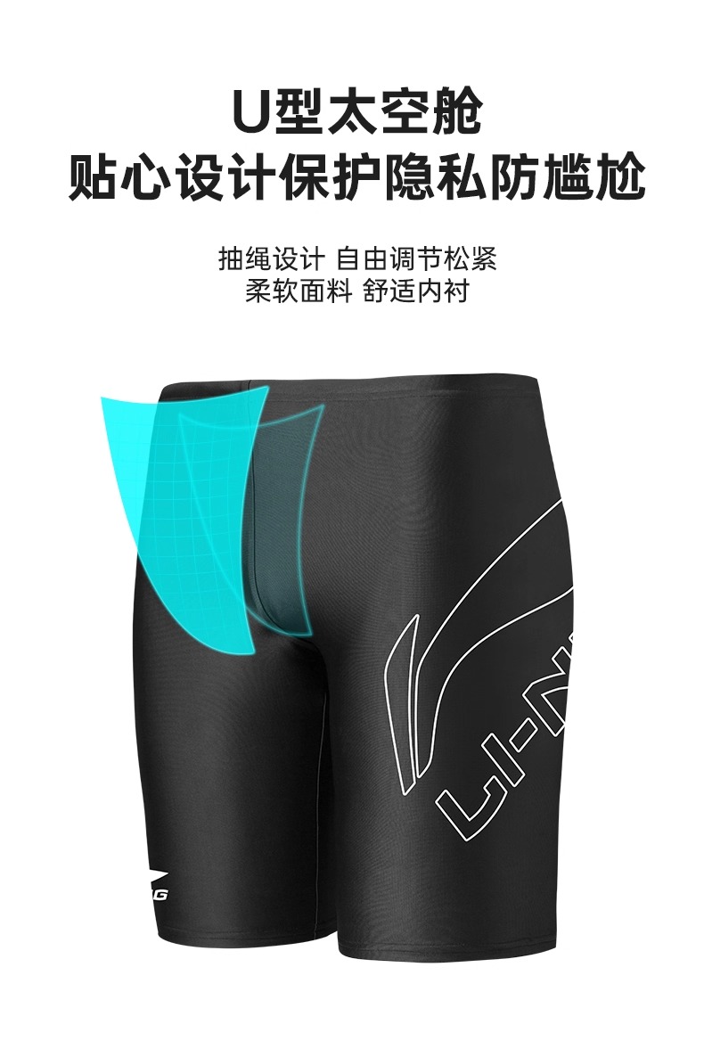 LINING李宁 男士泳裤 五分泳裤 专业游泳裤 速干平角泳裤 LXKU833-1 黑色