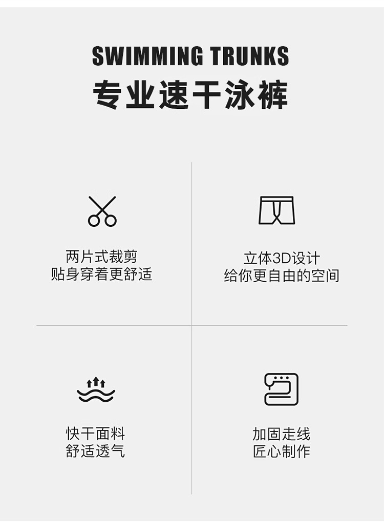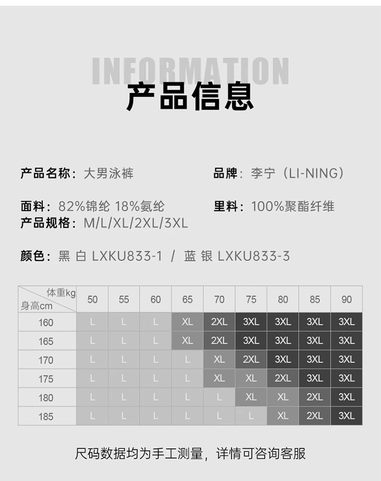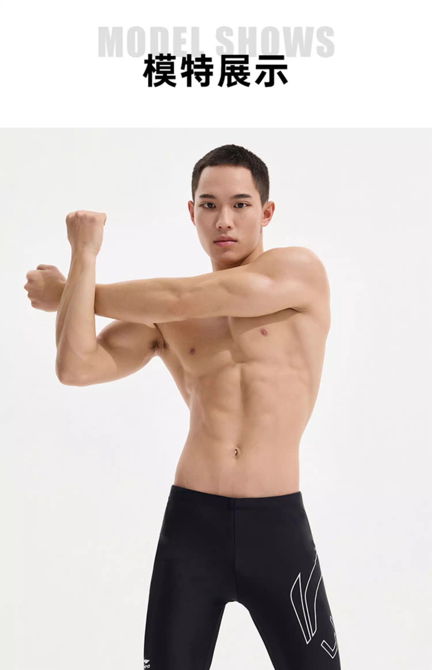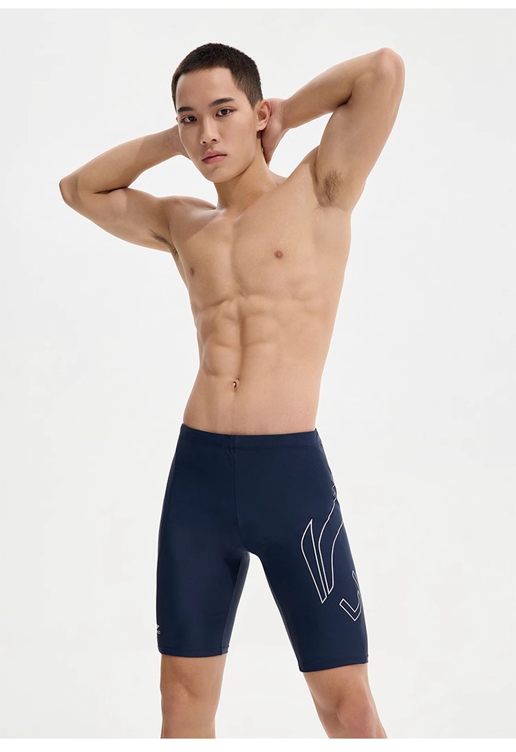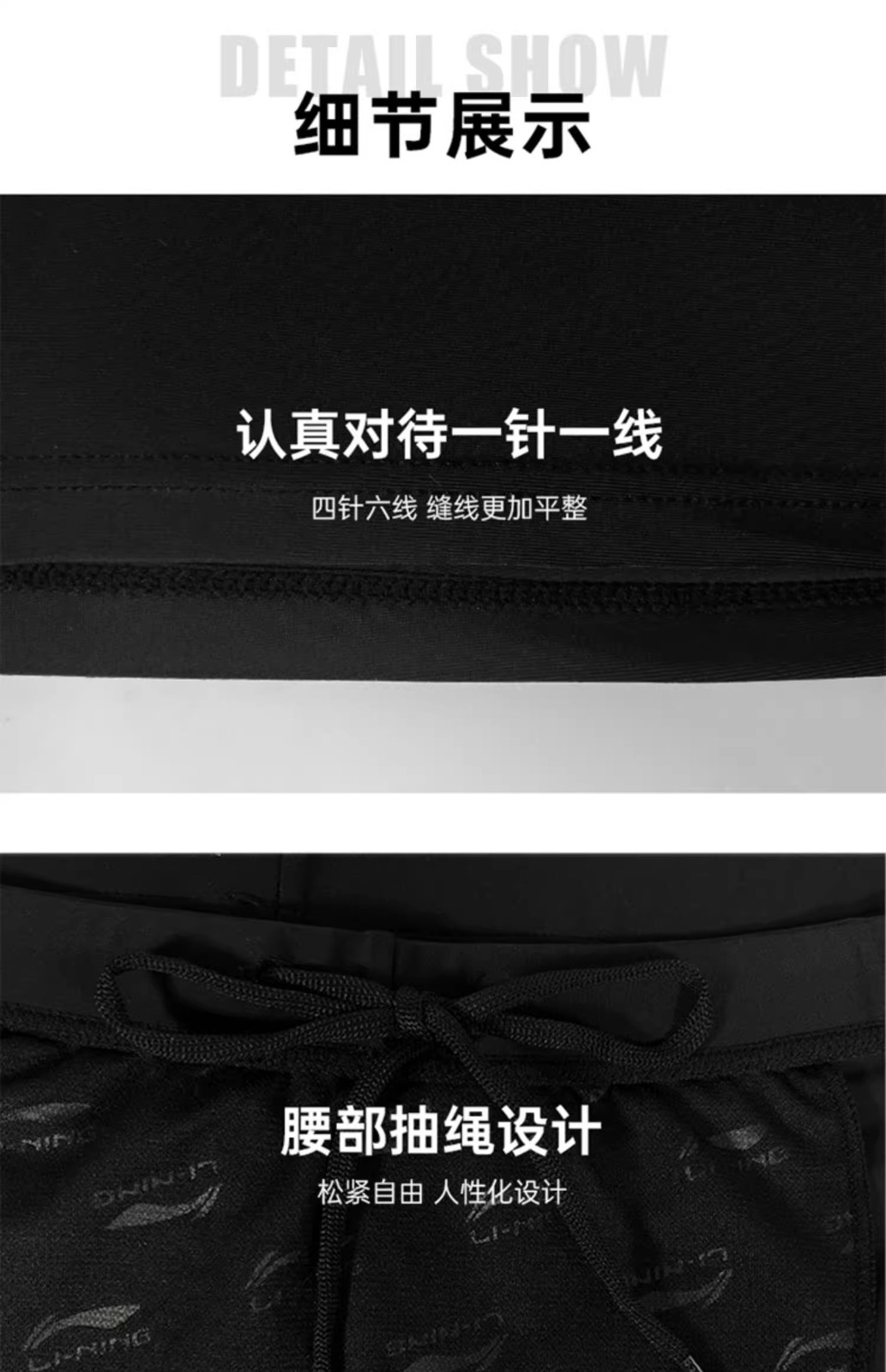 LINING李宁 男士泳裤 五分泳裤 专业游泳裤 速干平角泳裤 LXKU833-1 黑色