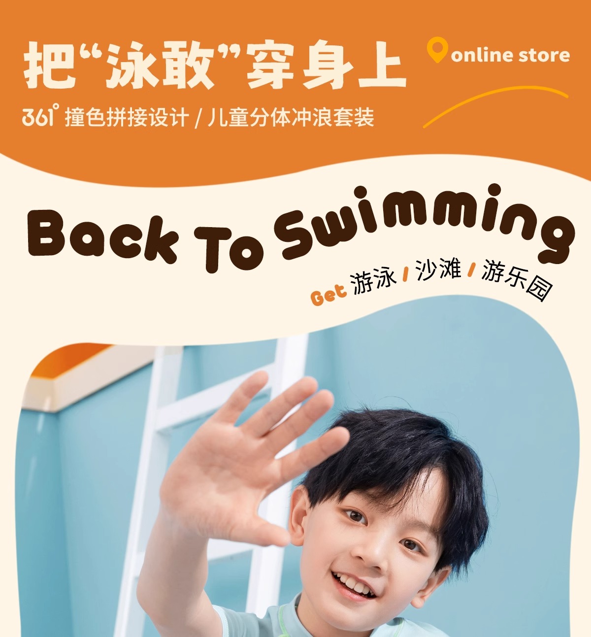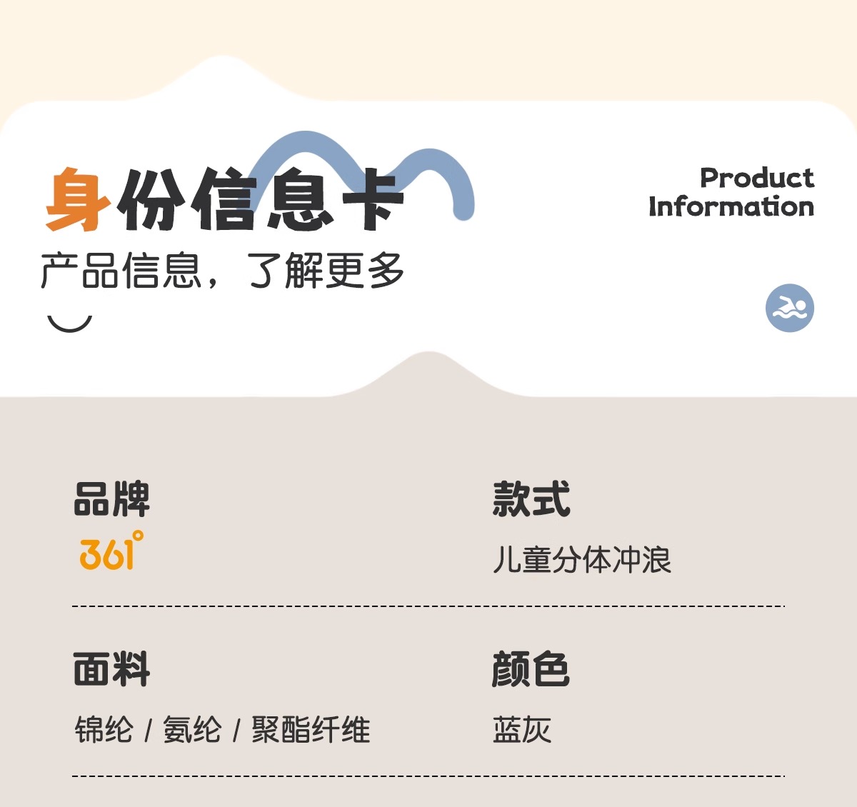361度 SLY24Y5191 蓝灰色男童分体游泳套装