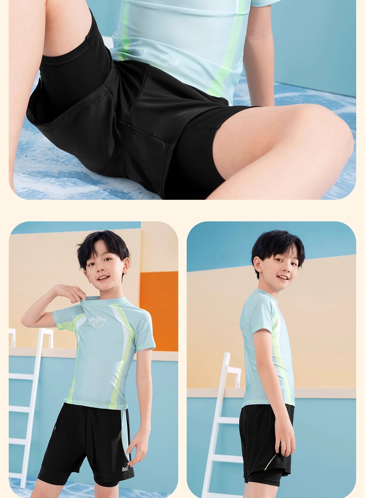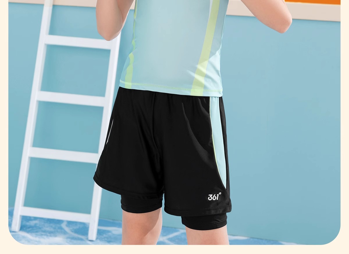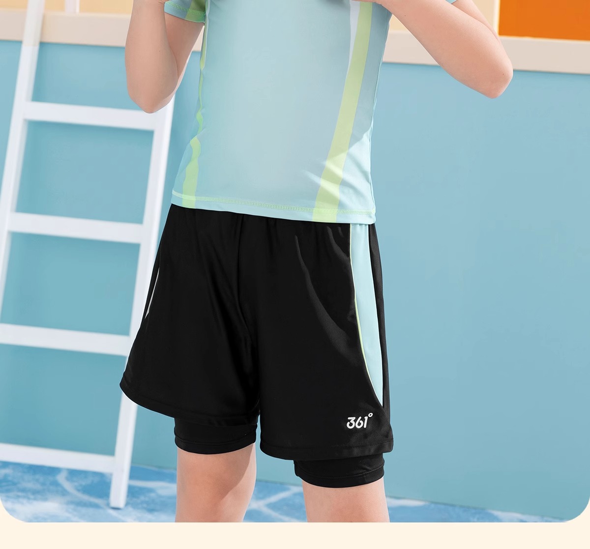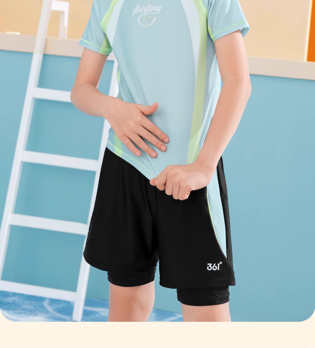 361度 男童分体游泳套装 2025新款泳装 初中生游泳衣 中大童分体泳衣 SLY24Y5191 蓝灰色