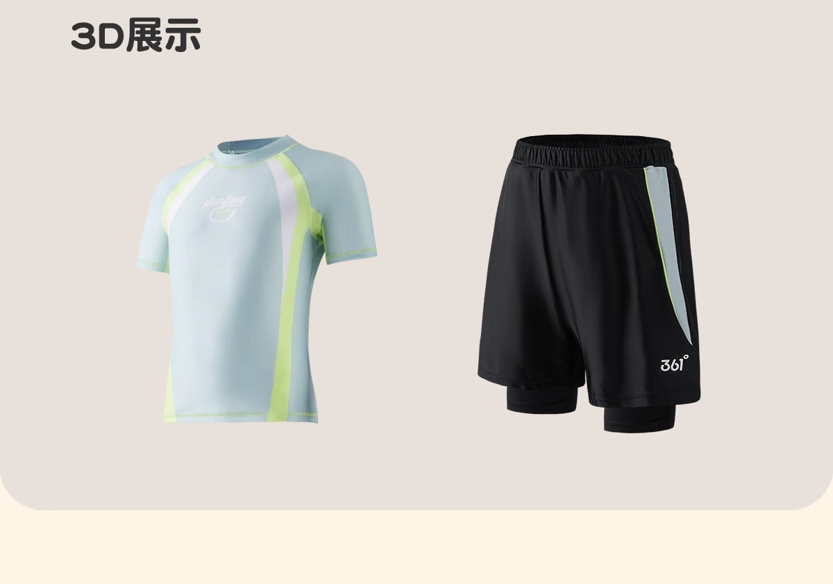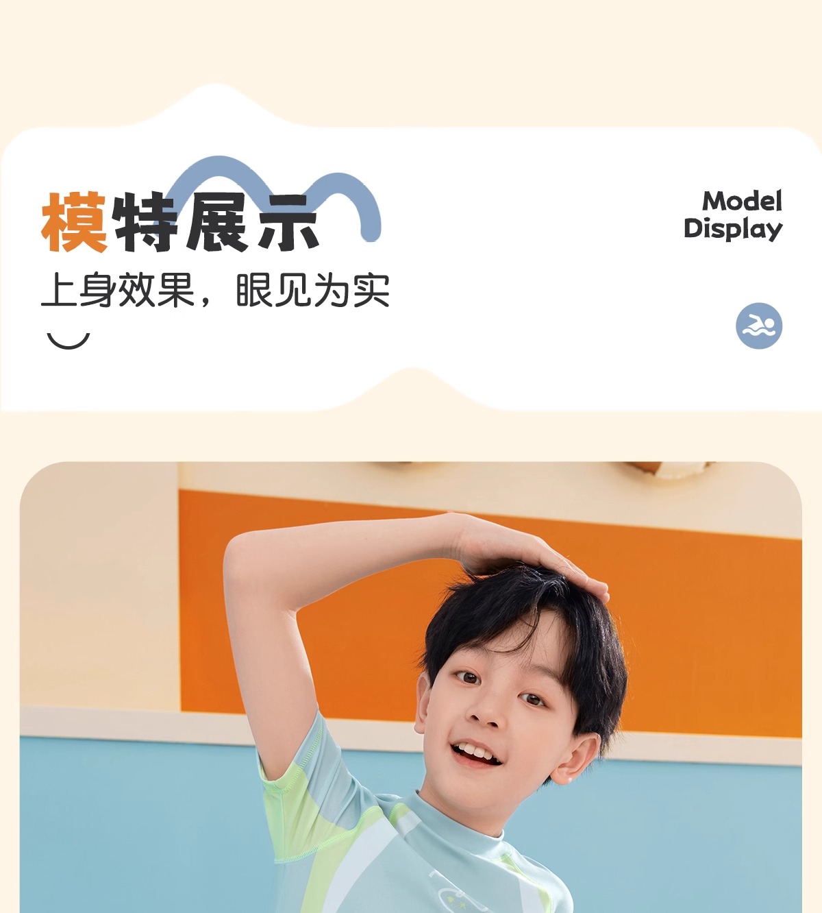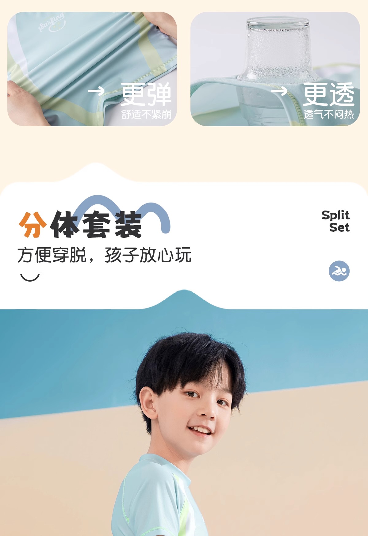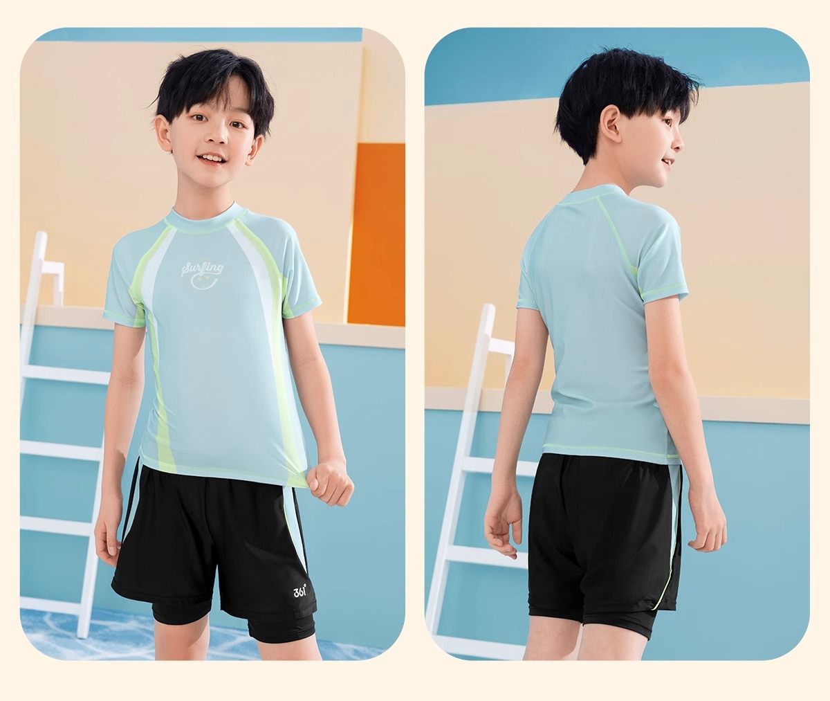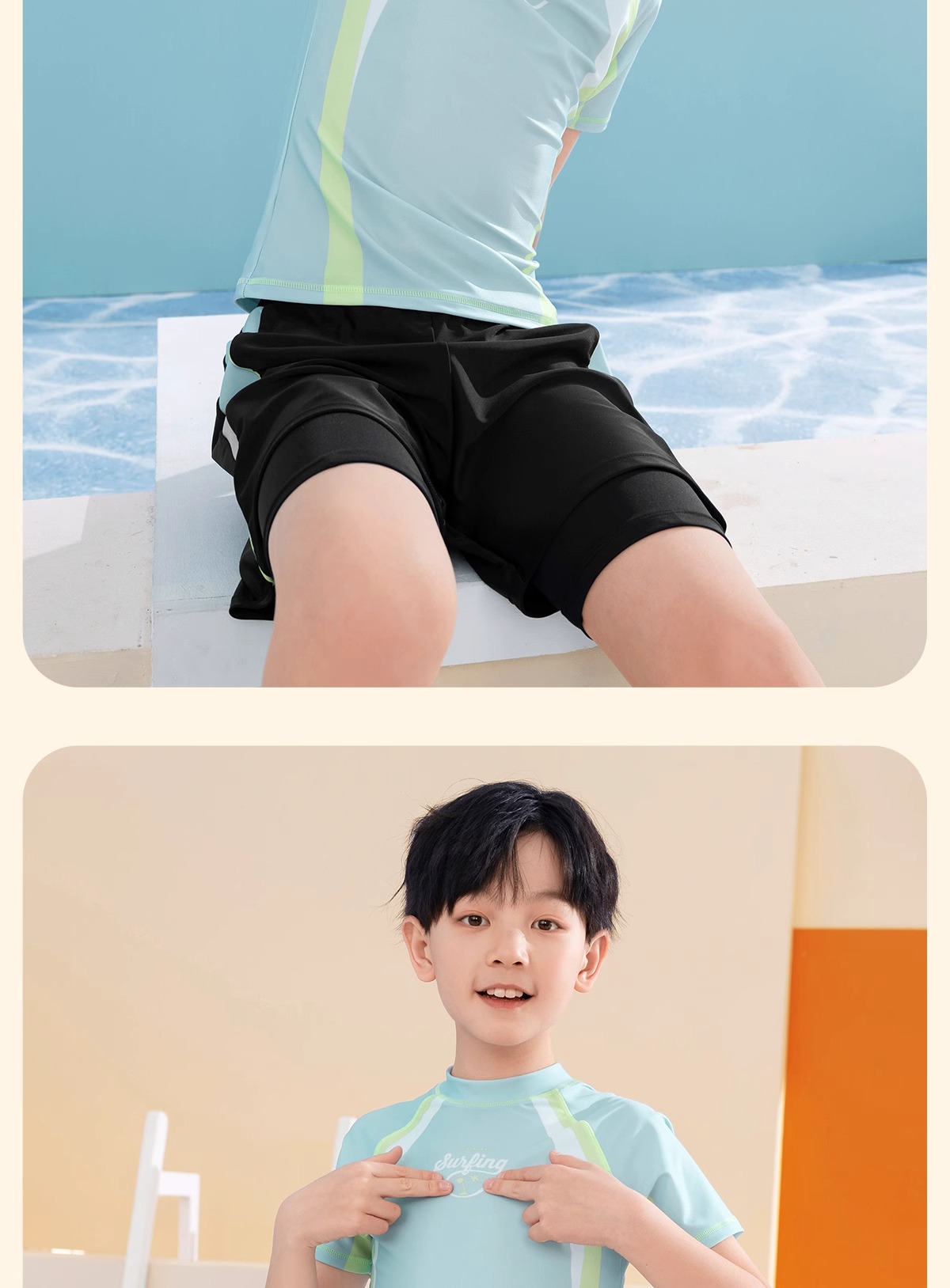361度 男童分体游泳套装 2025新款泳装 初中生游泳衣 中大童分体泳衣 SLY24Y5191 蓝灰色