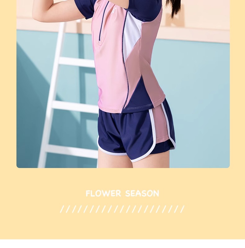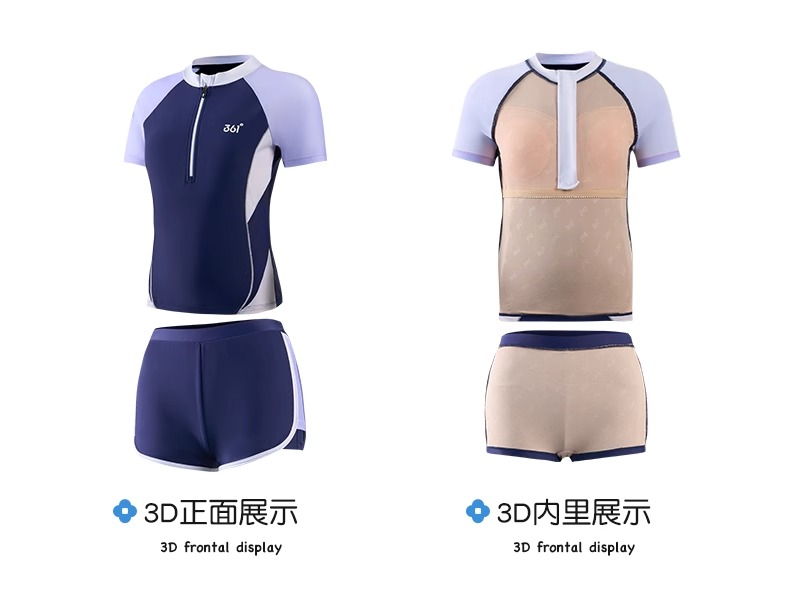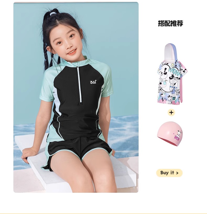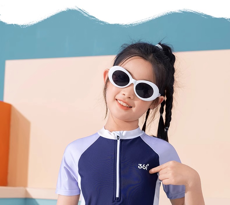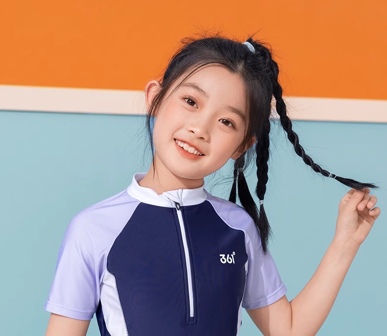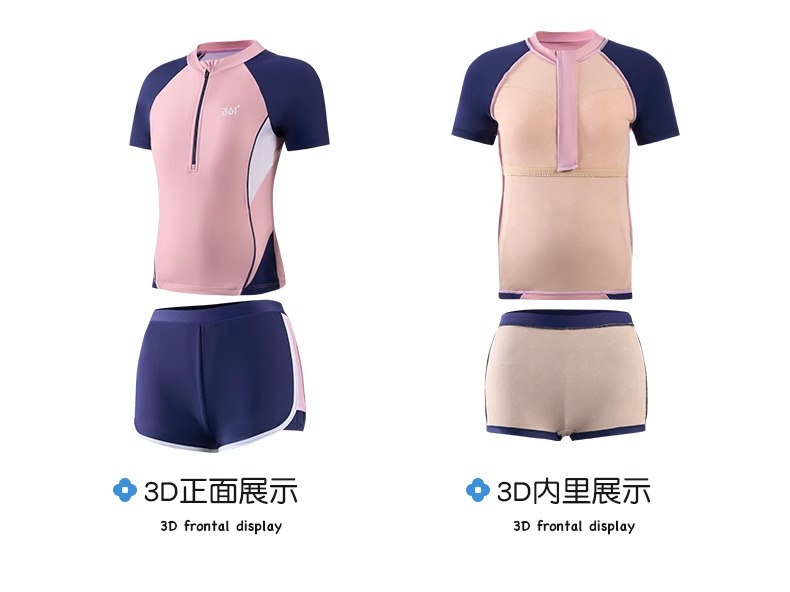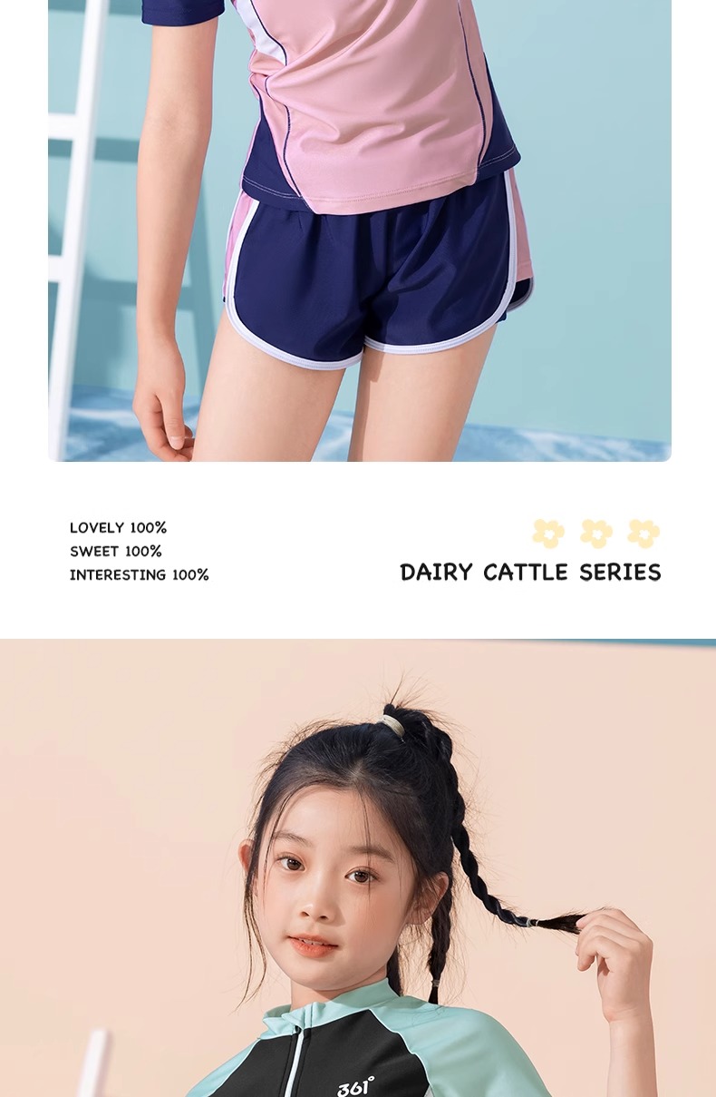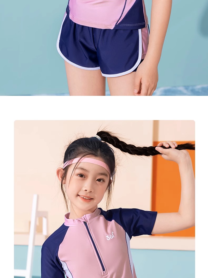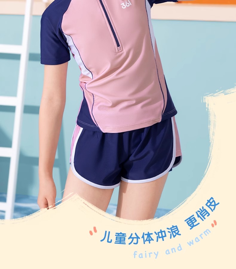 361度 女童分体游泳套装 2025新款泳装 初中生游泳衣 中大童分体泳衣 SLY24Y5477 藏青粉
