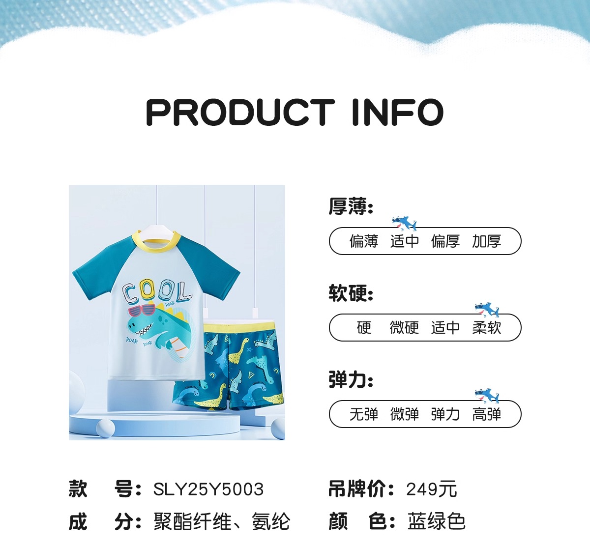 361度SLY25Y5003 蓝绿色儿童分体泳衣套装