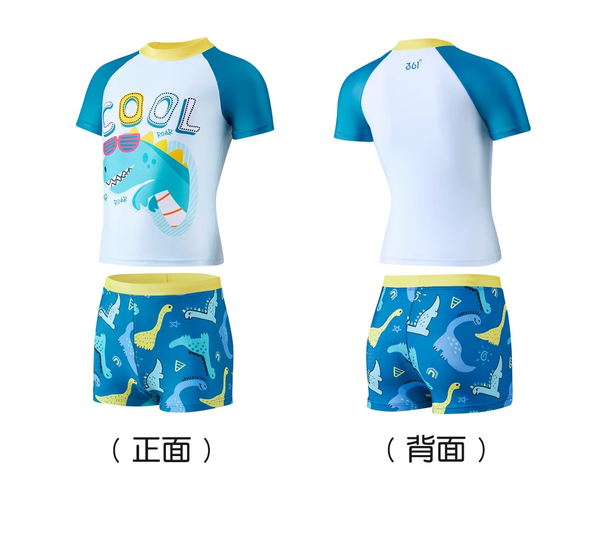361度 儿童游泳套装 2025新款分体泳衣 中童男孩青少年泳衣泳裤套装 SLY25Y5003 蓝绿色