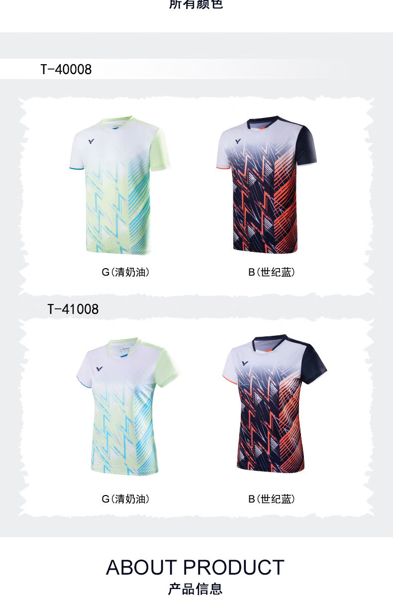 威克多VICTOR胜利 羽毛球服 T-41008 女款训练运动短袖T恤速干 省队比赛服 B世纪蓝 吸湿速干 清爽舒适