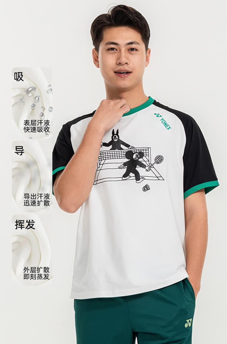 尤尼克斯YONEX羽毛球服 男款 运动T恤短袖速干上衣115424BCR_200 米白色 吸汗透气 干爽舒适