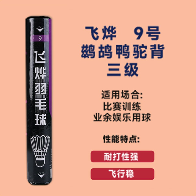 飞烨 羽毛球 飞烨9号 鹚鸪鸭毛球 稳定耐打 专业比赛训练球 9号 12只/1筒装 飞行稳定 落点精准