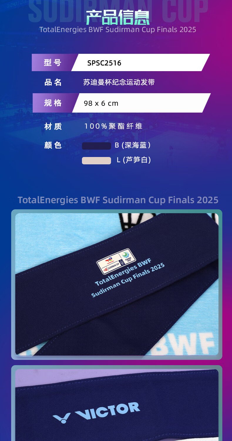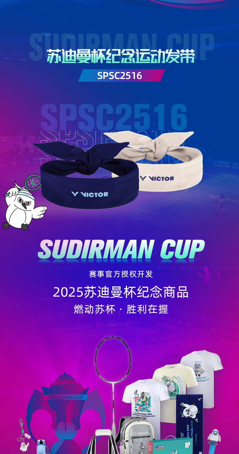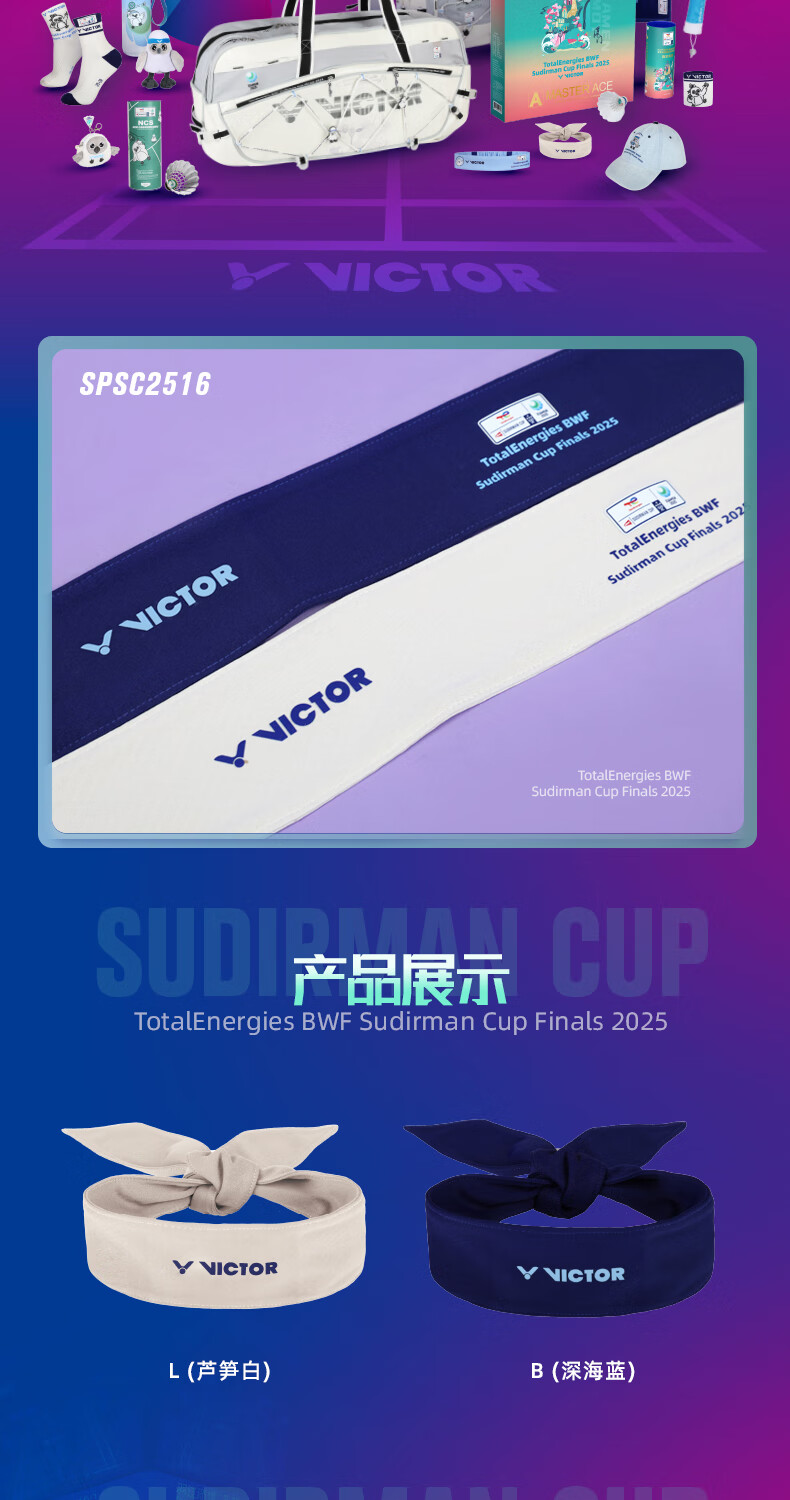 VICTOR 威克多 苏迪曼杯纪念商品 运动装备 运动头带 胜利吸汗带束发带 SPSC2516 苏迪曼杯纪念运动头带