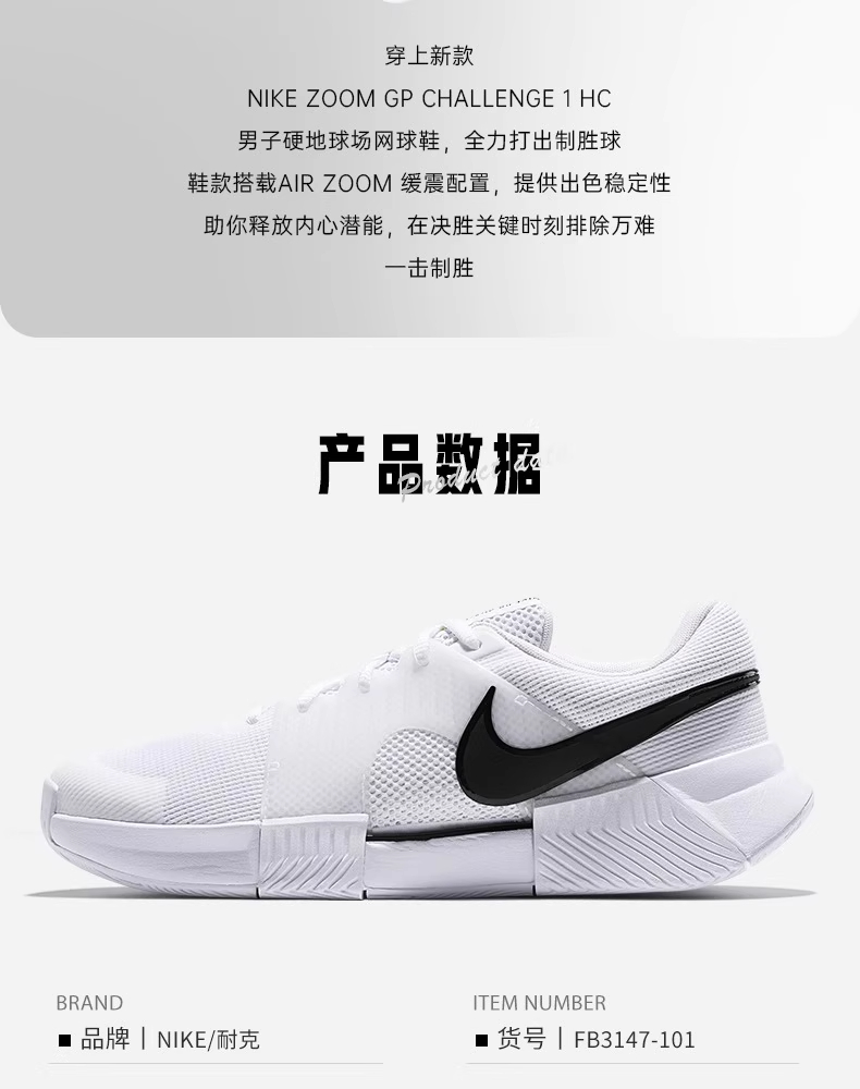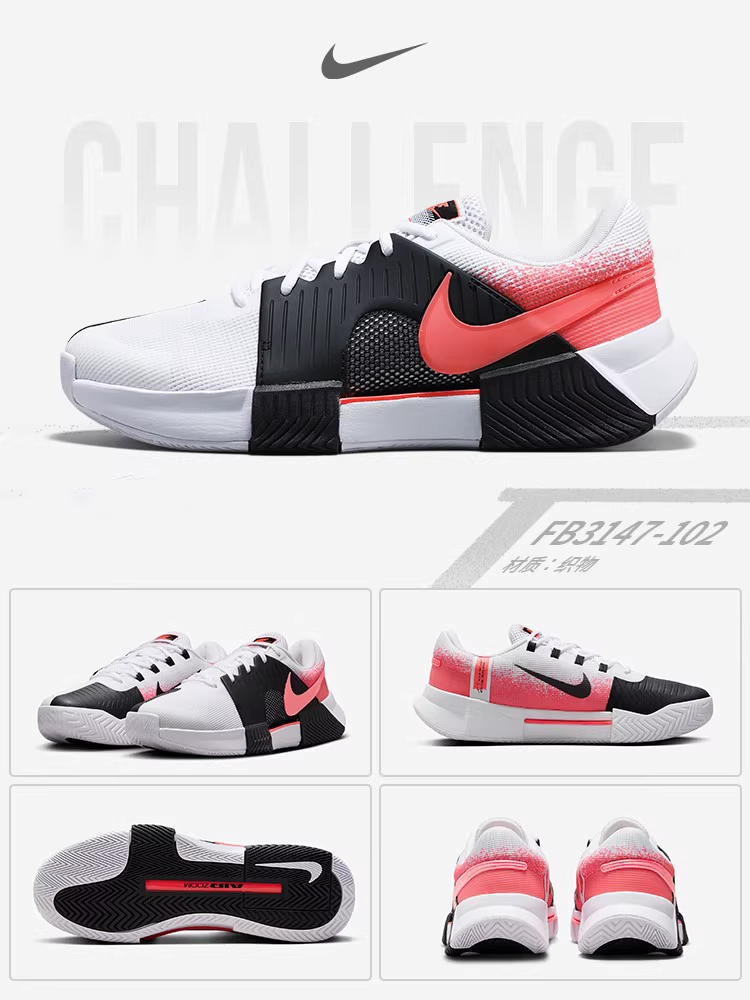 Nike耐克网球鞋 男款网球鞋辛纳同款Air Zoom Challenge挑战者网球运动鞋 FB3147-102 白黑/橙 辛纳同款、缓震回弹、舒适耐磨