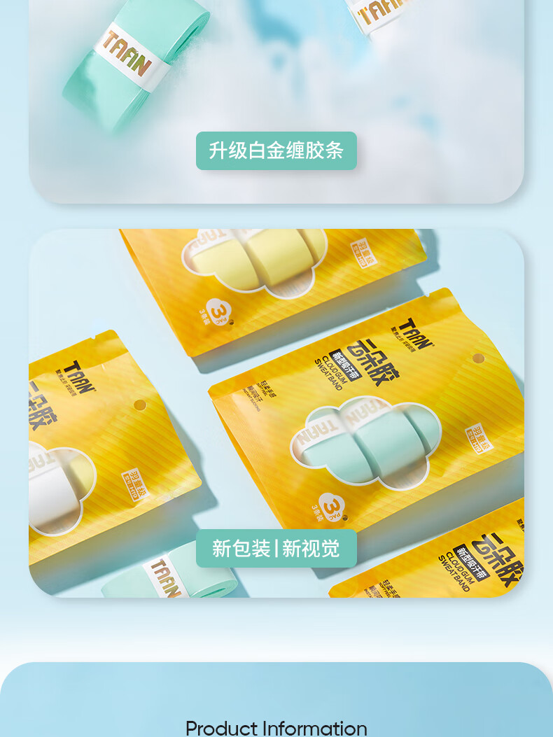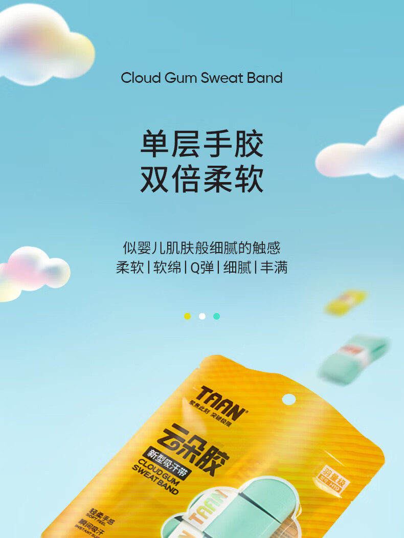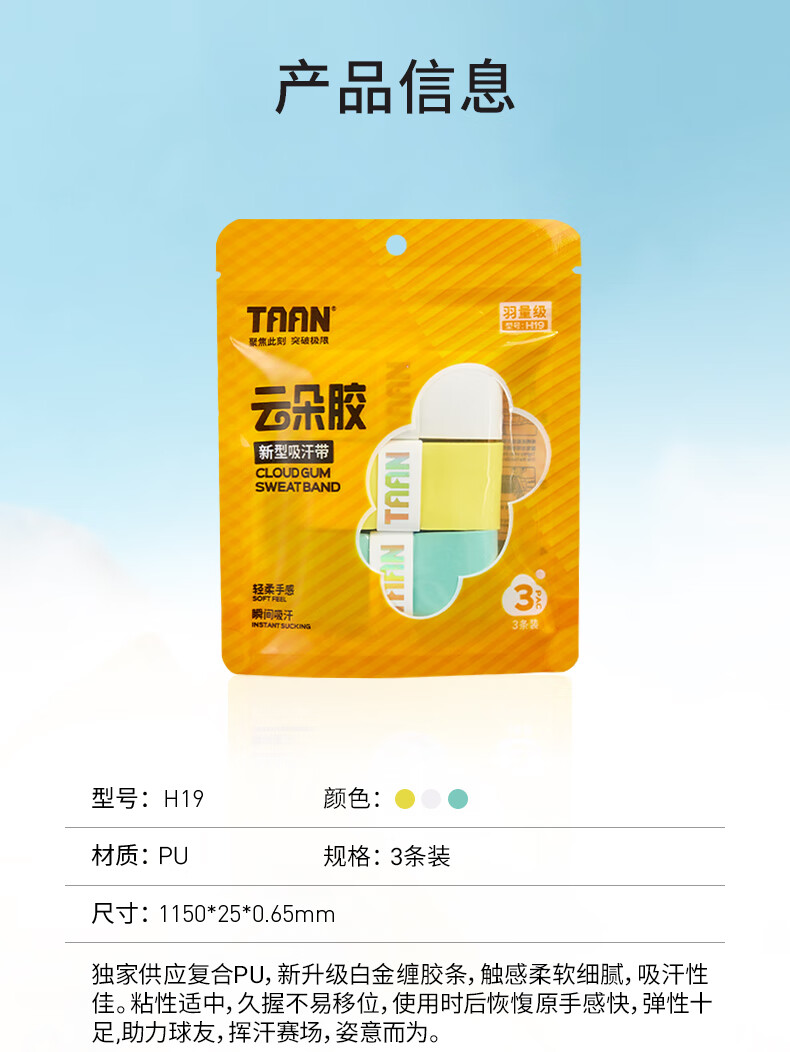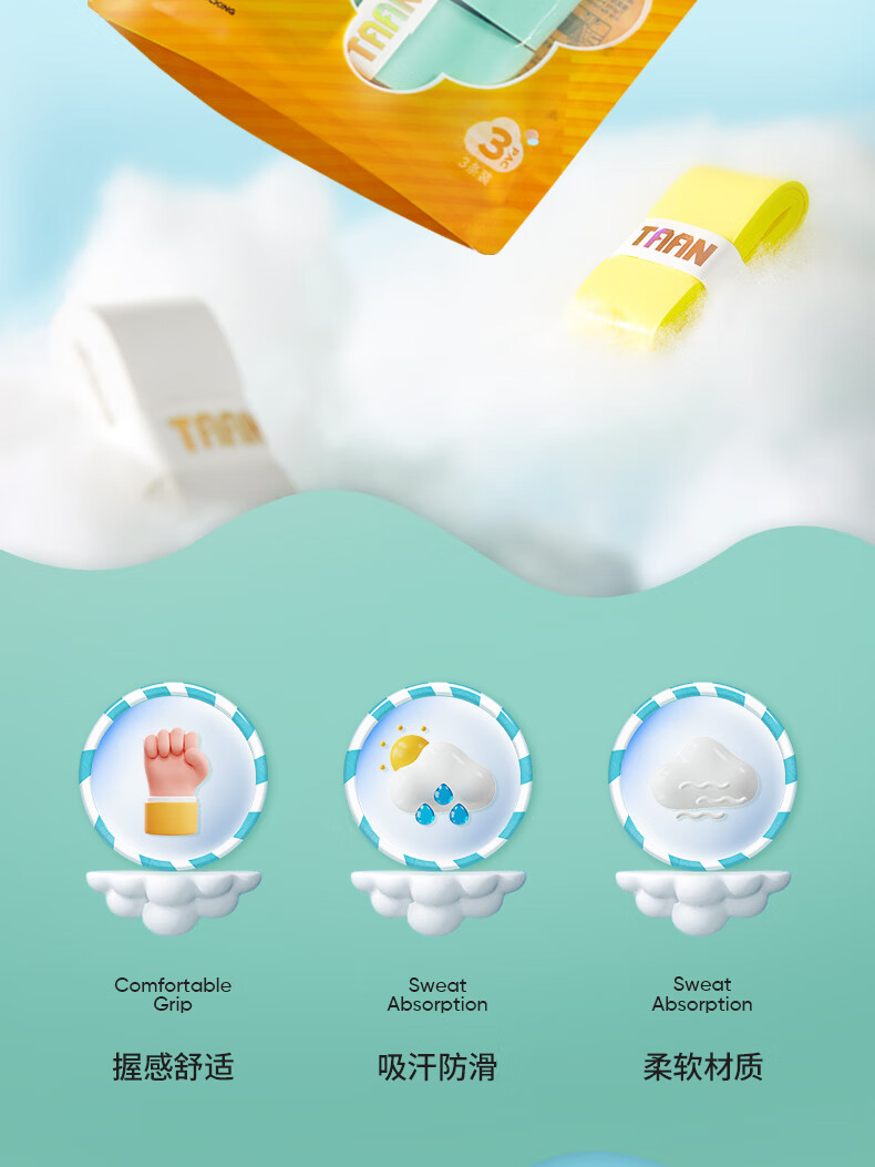 TAAN 泰昂 羽毛球手胶 平面微粘性 吸汗透气 云朵手胶 H19 三条装 柔软细腻 吸汗性佳