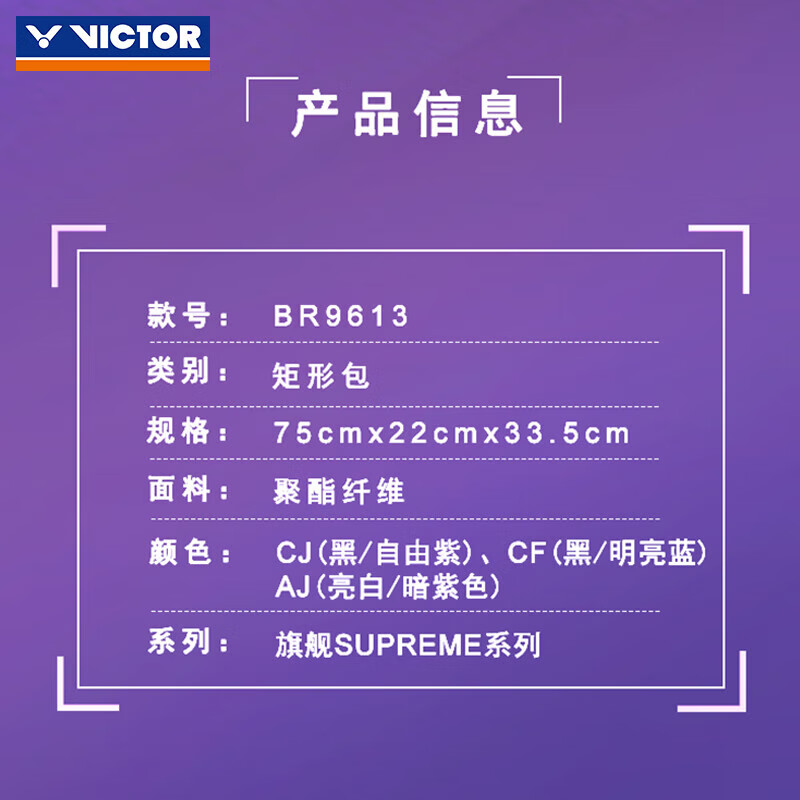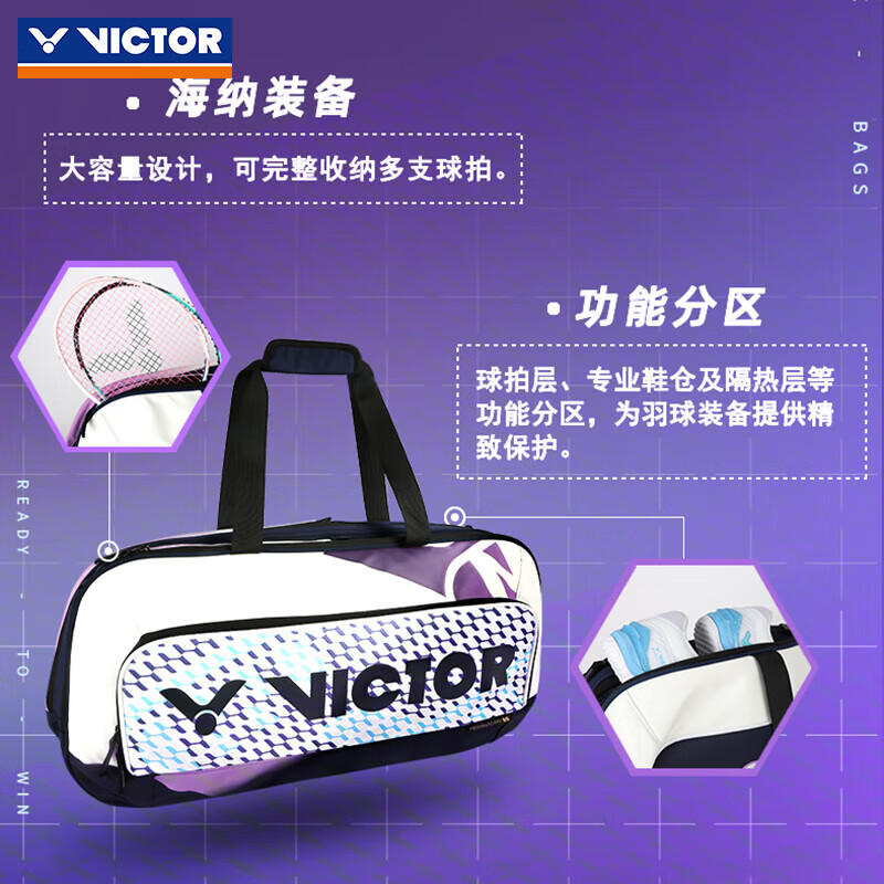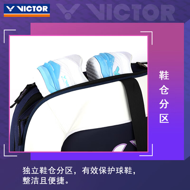 威克多VICTOR胜利羽毛球包 BR9613矩形包手提包 旗舰SUPEME系列运动包 BR9613AJ 亮白/暗紫色 大容量 独立鞋仓 功能分区 特惠商品 售完无补!