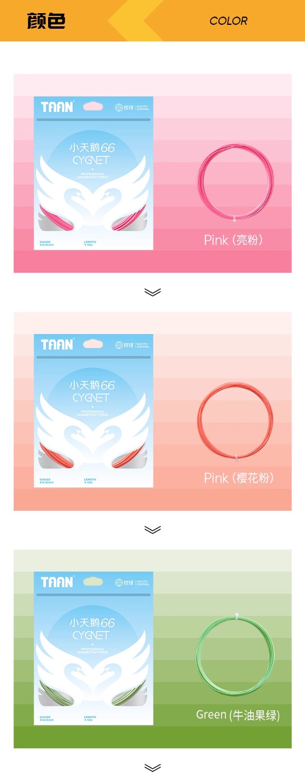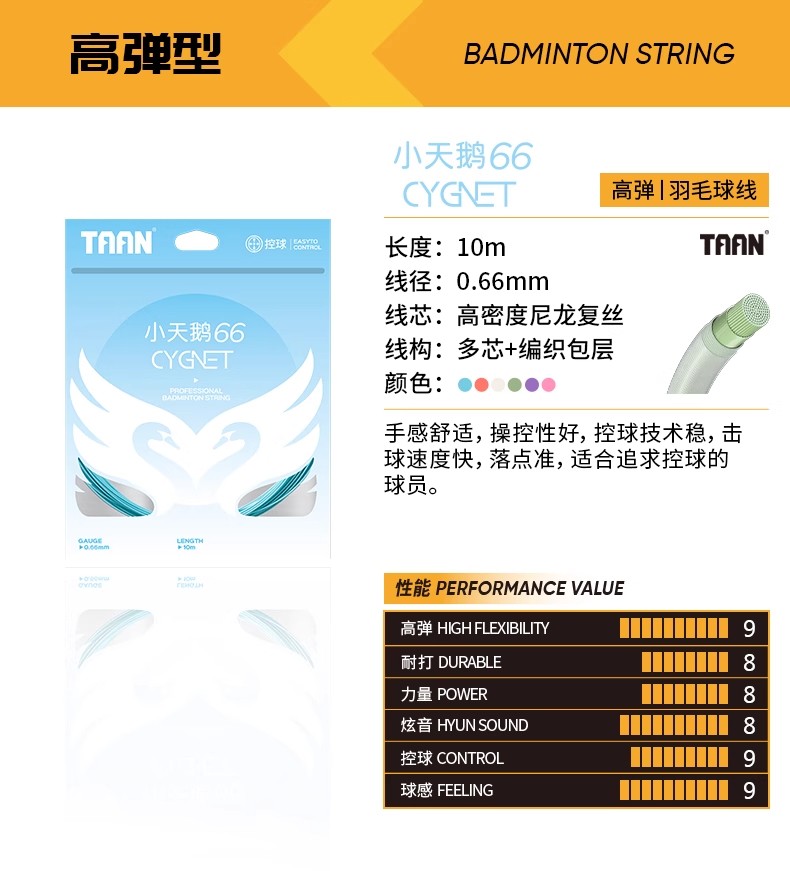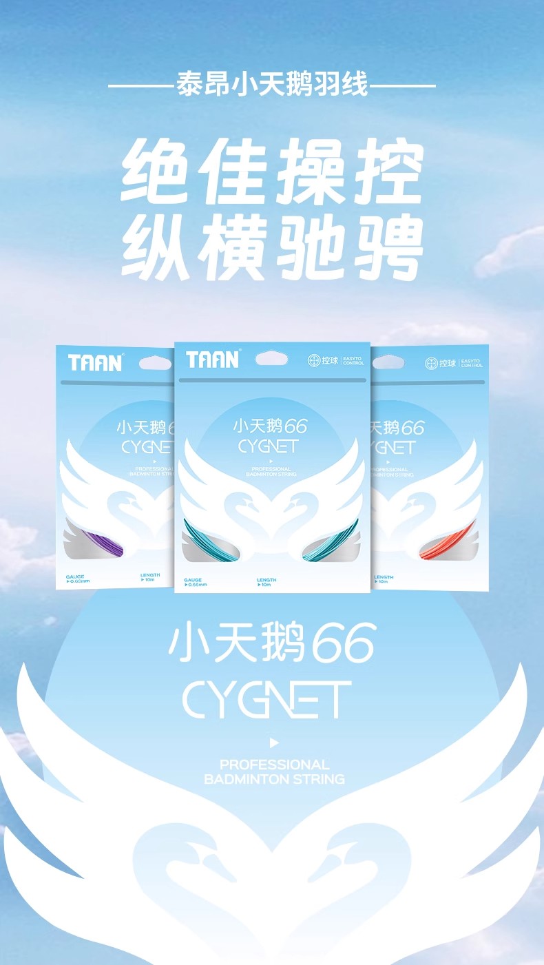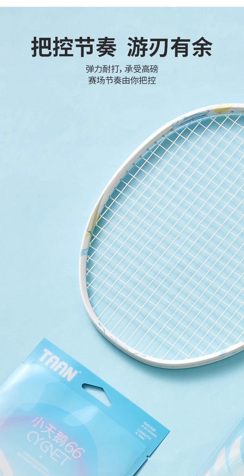 TAAN 泰昂 羽毛球线 小天鹅66 高强度复丝 控球稳击球速度快 多色可选 单条装 手感舒适,操控性好,控球技术稳击球速度快,落点准,适合追求控球的球员。