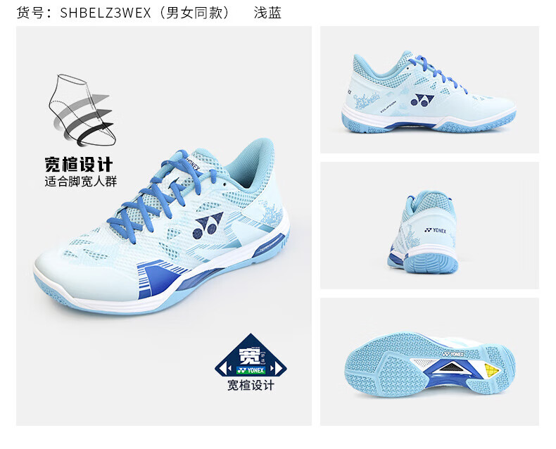 尤尼克斯专业比赛运动鞋动力垫 SHBELZ3WEX -33宽楦男女款 浅蓝
