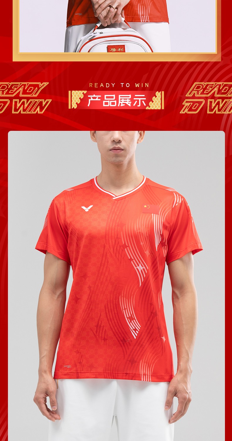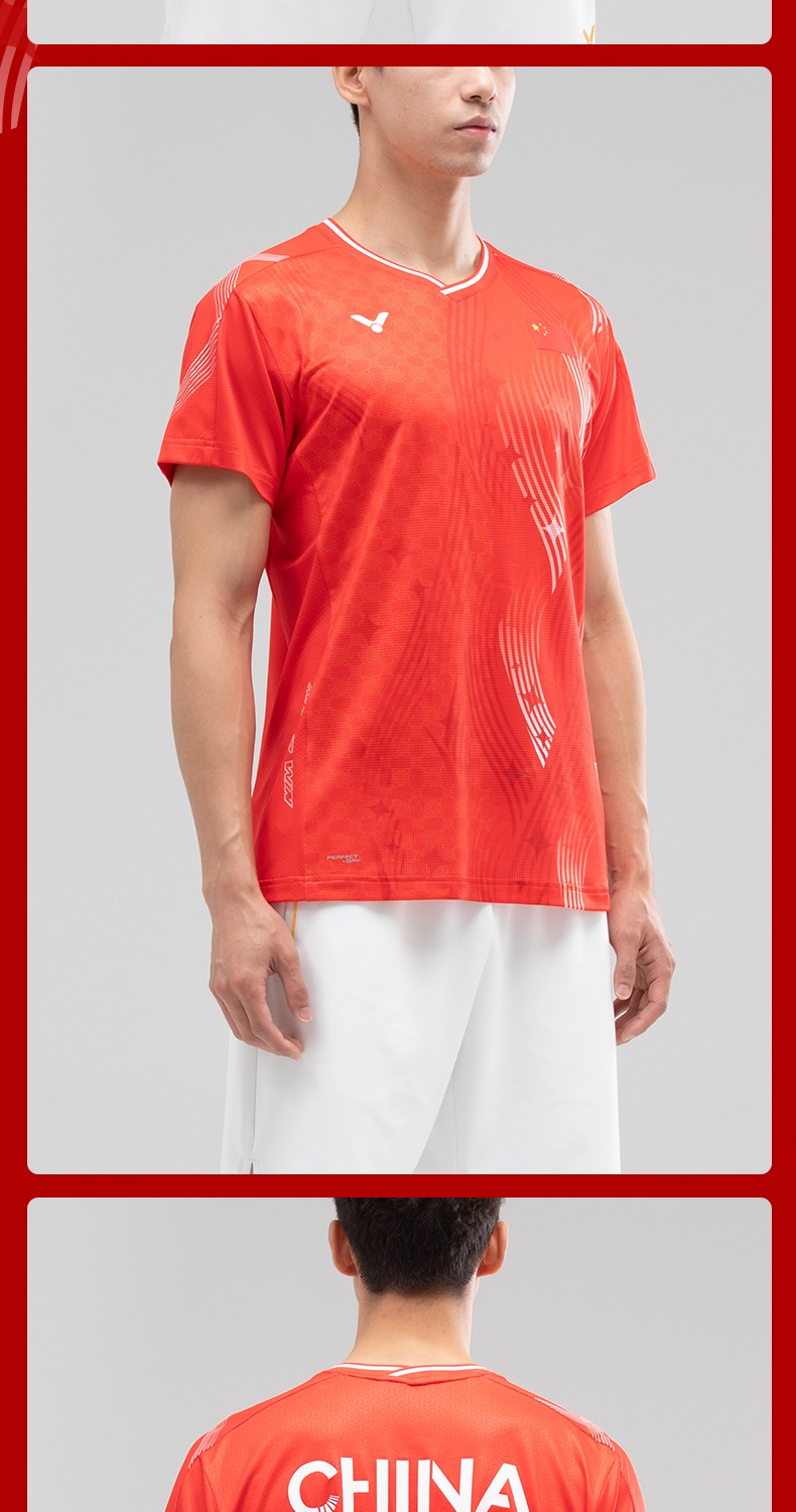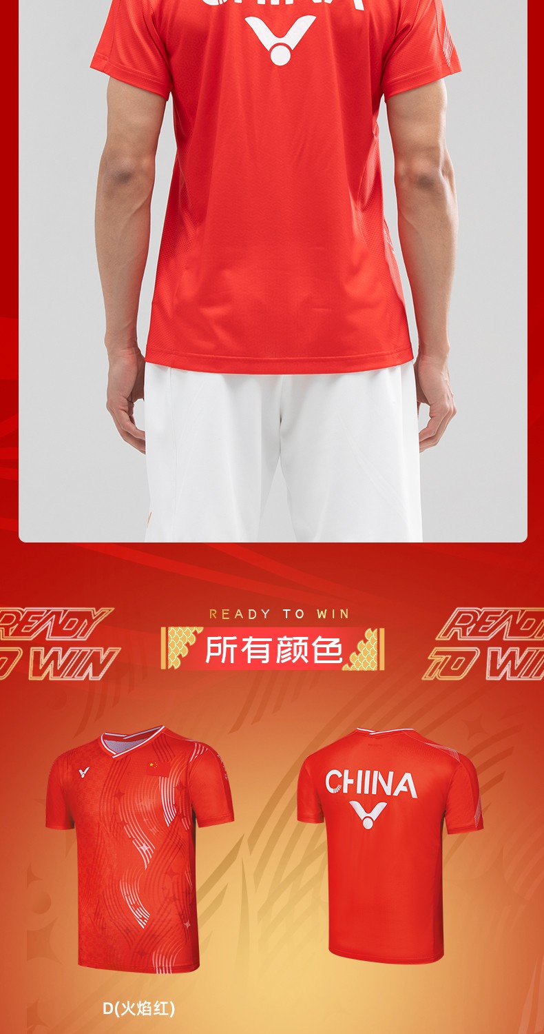 VICTOR 威克多 羽毛球服 男女款 中国大学生羽毛球队 大赛服 短袖T恤 T-55081 D 红色 柔软舒适 吸湿排汗 透气快干 特惠商品 售完无补!!!