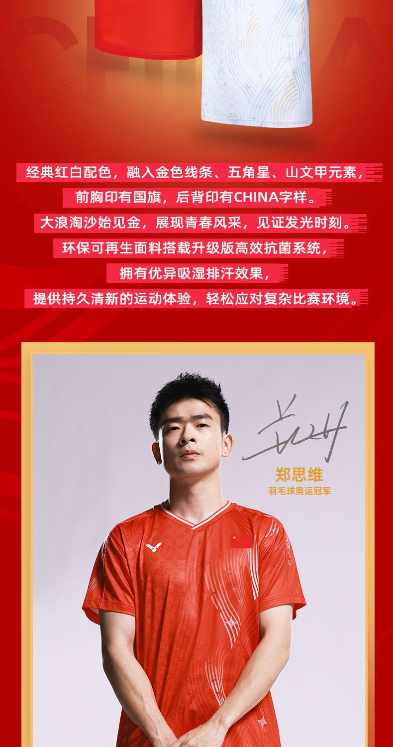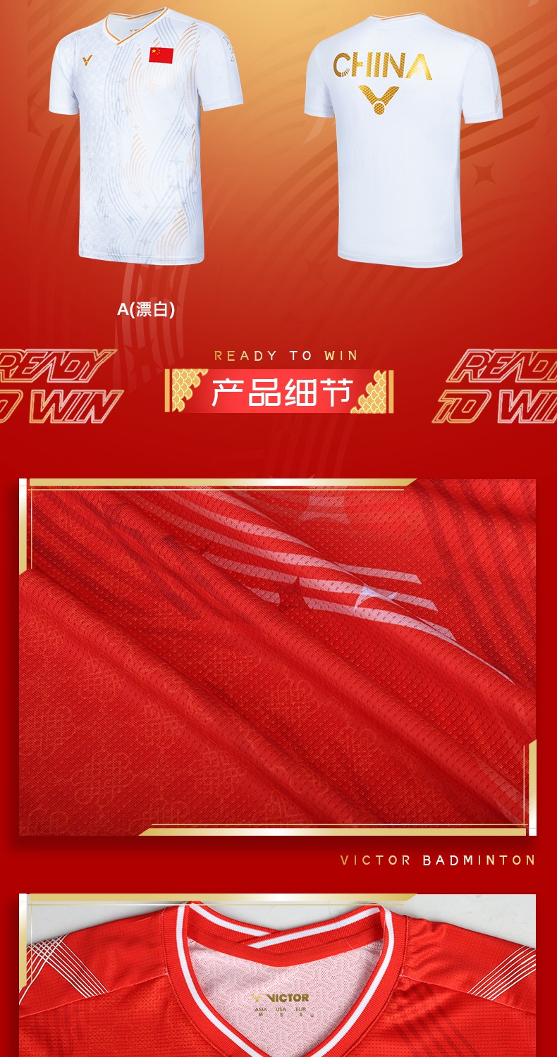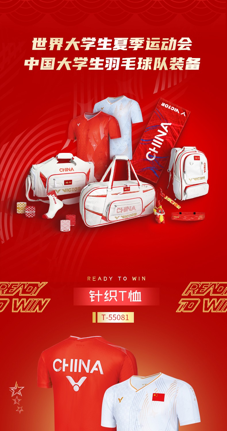 VICTOR 威克多 羽毛球服 男女款 中国大学生羽毛球队 大赛服 短袖T恤 T-55081 D 红色 柔软舒适 吸湿排汗 透气快干 特惠商品 售完无补!!!