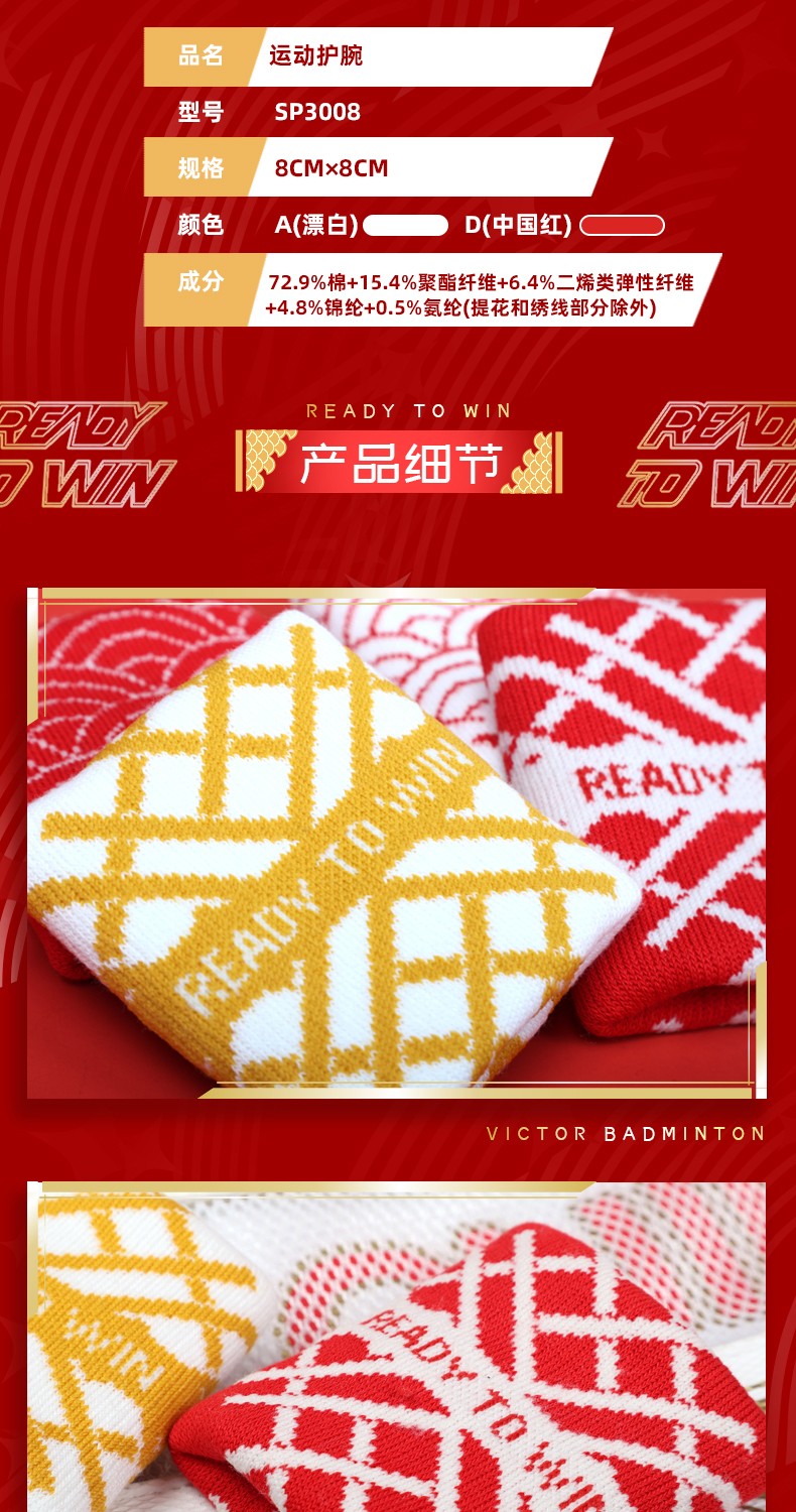 VICTOR 威克多 运动护腕 中国大学生羽毛球队运动装备 护手腕 SP3008 红色/白色 8x8cm 单只装 本品参加11.11同价抢先购满129减20 299减50 499减80 999减150 1299减200元大促!