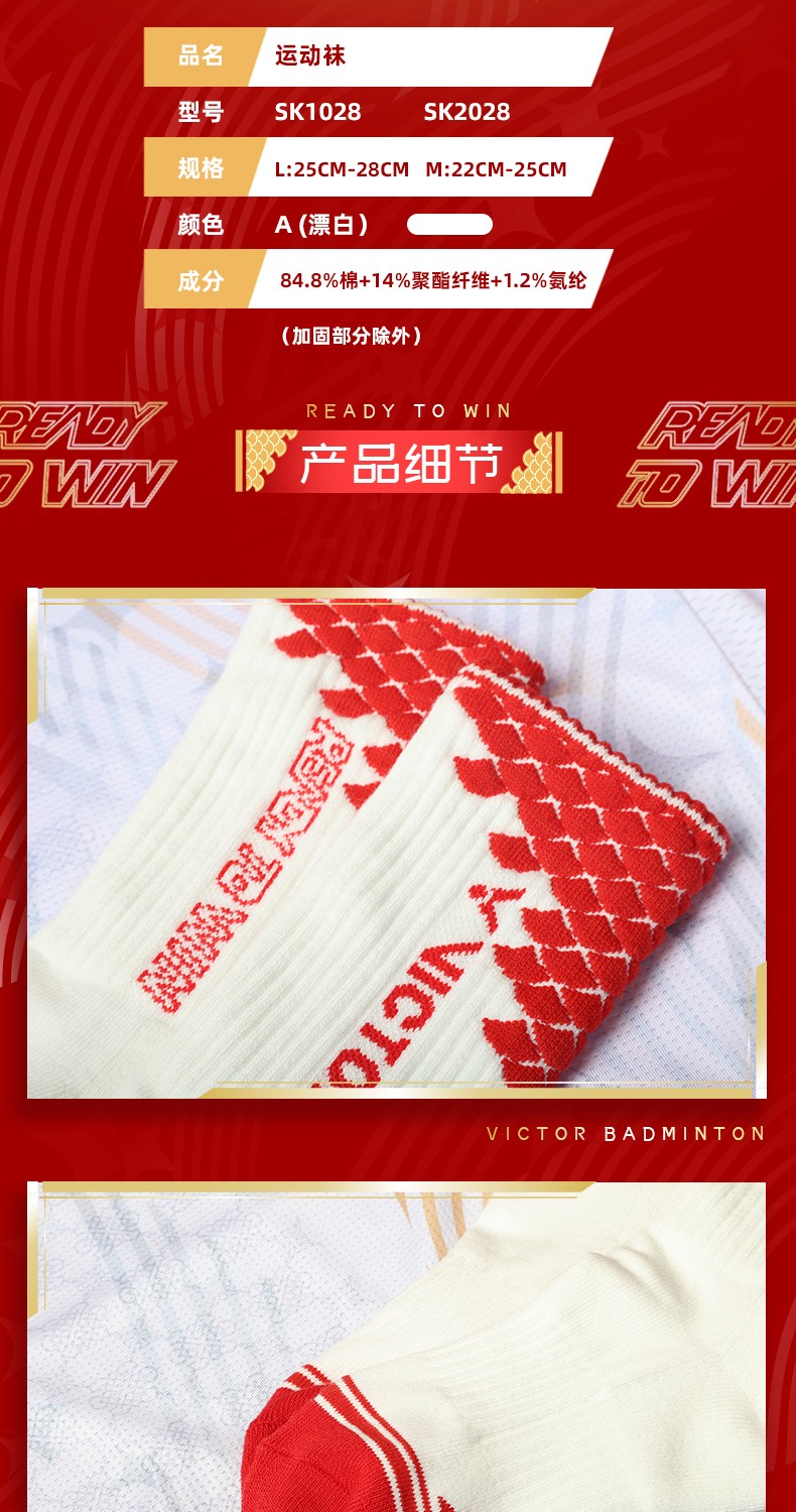VICTOR 威克多 羽毛球袜 中国大学生羽毛球队装备 胜利运动袜 SK1028 SK2028 白色 吸汗透气 防滑耐磨 特惠商品