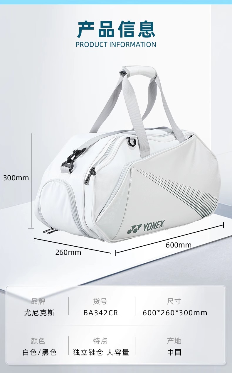 YONEX 尤尼克斯 羽毛球包 YY单肩包 大容量方包手提包 网羽两用 BA342CR 网羽通用 独立鞋仓拍仓 大容量设计
